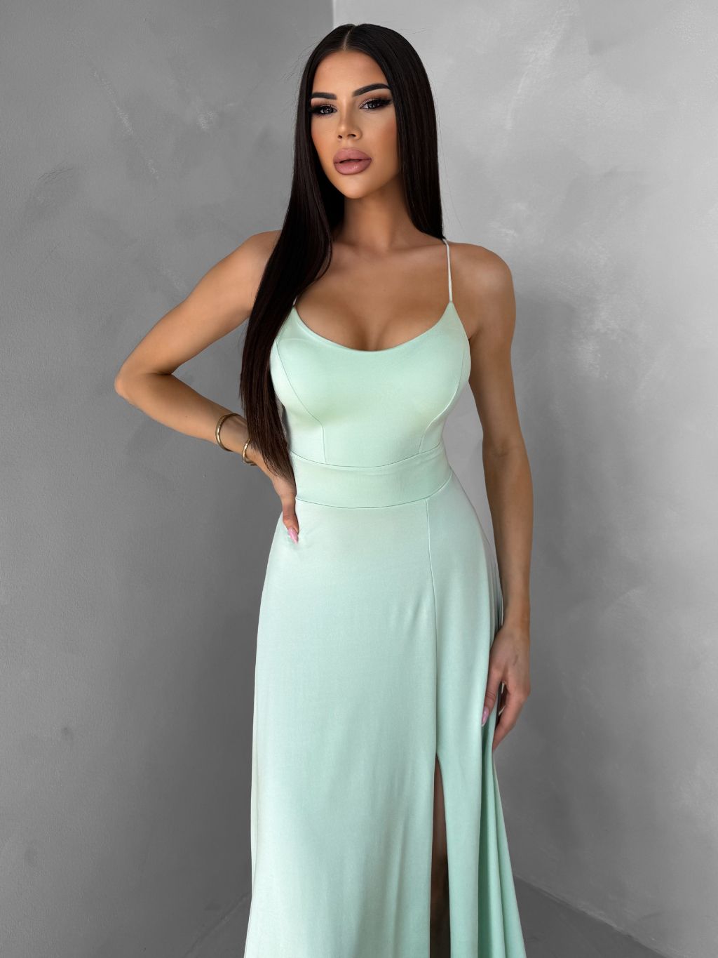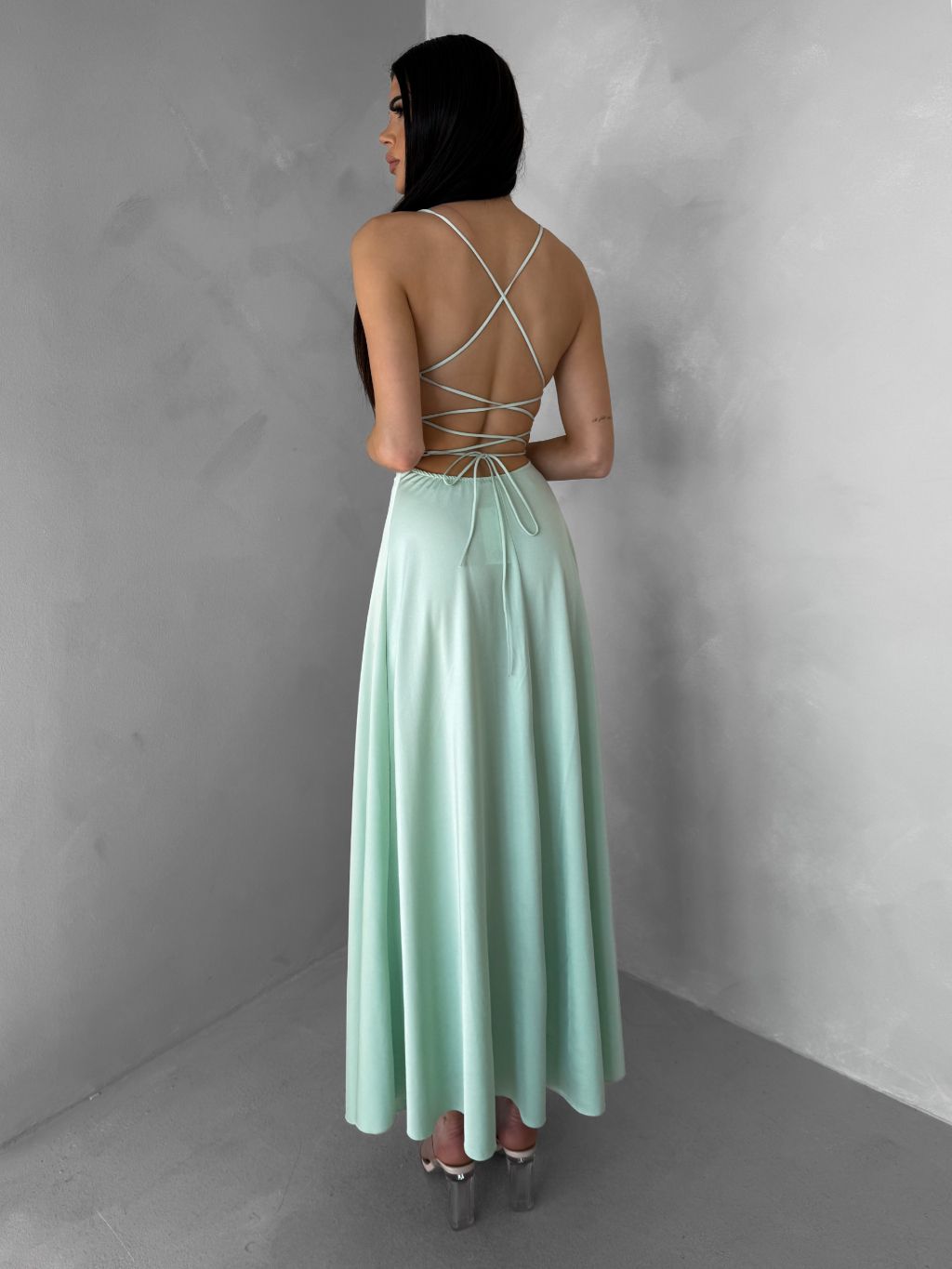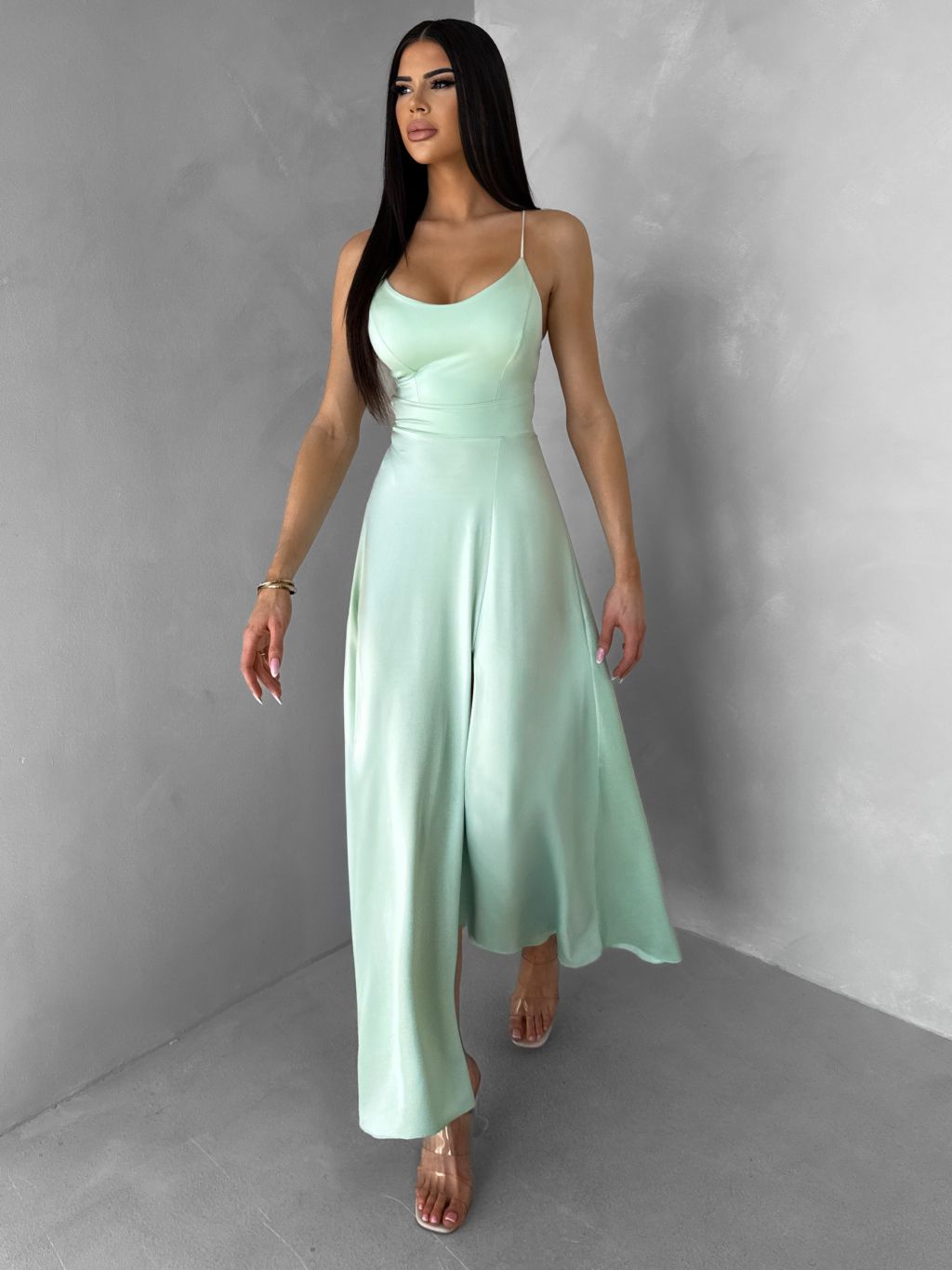 Světle zelené saténové šaty SIMUEL se šněrováním
