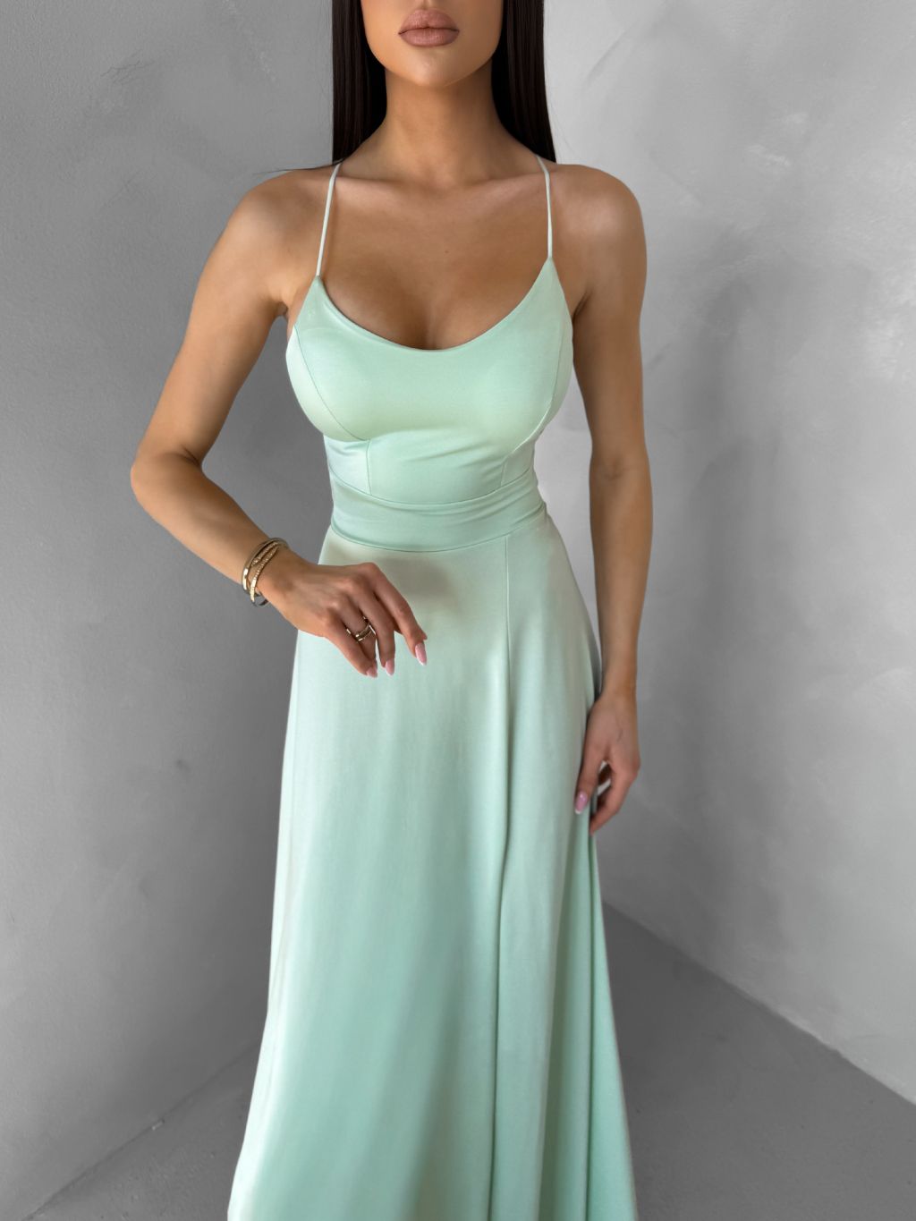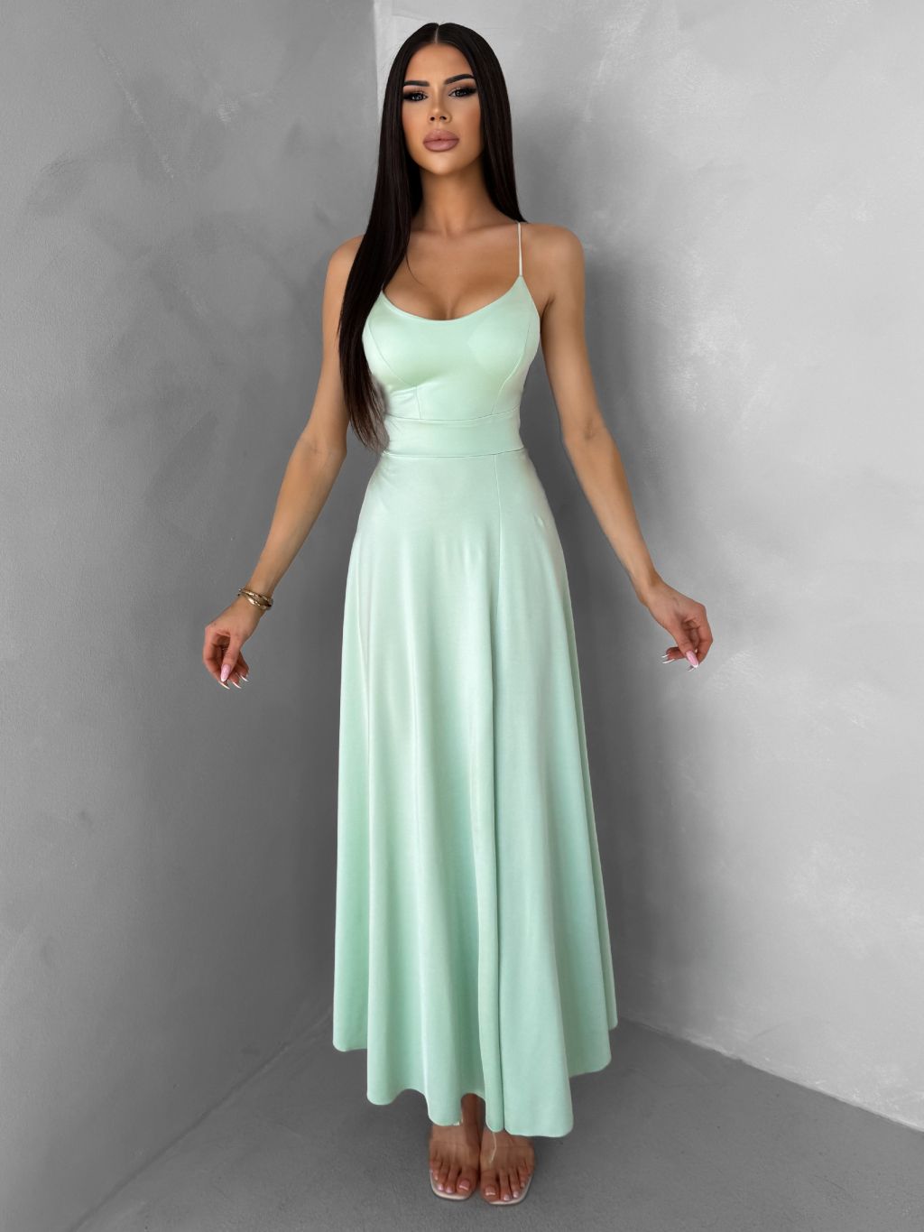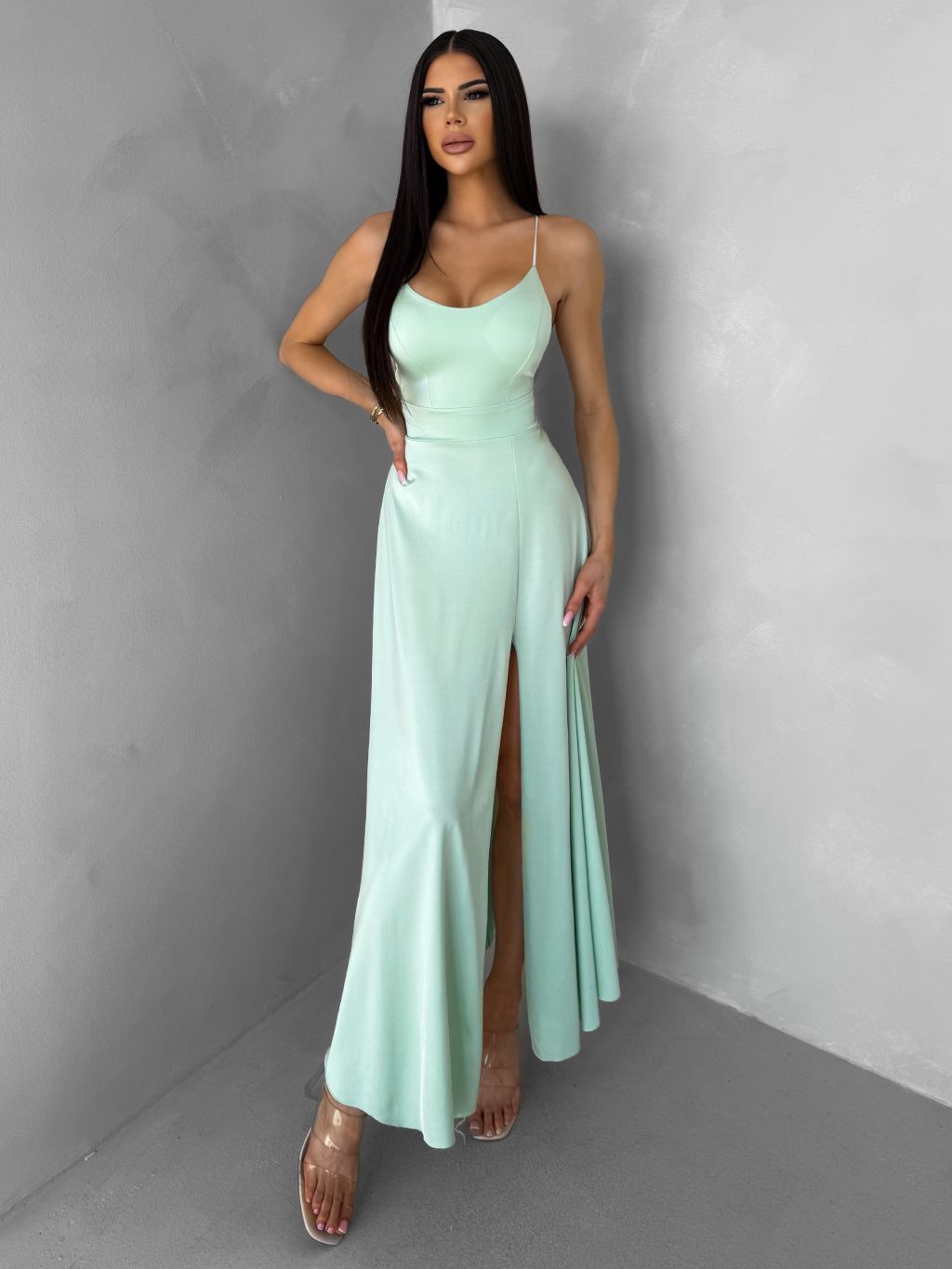 Světle zelené saténové šaty SIMUEL se šněrováním
