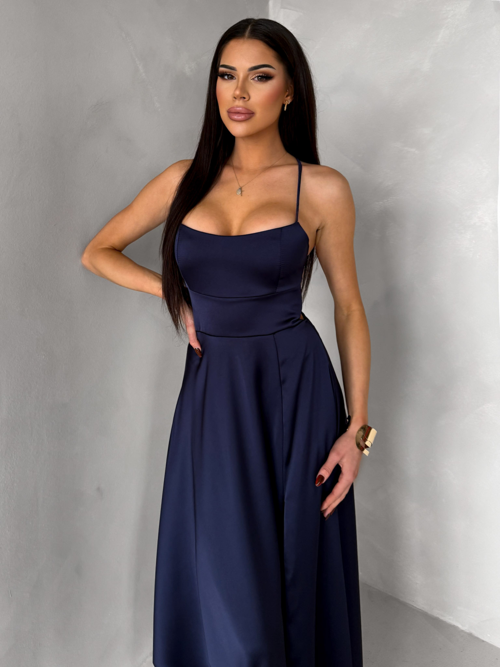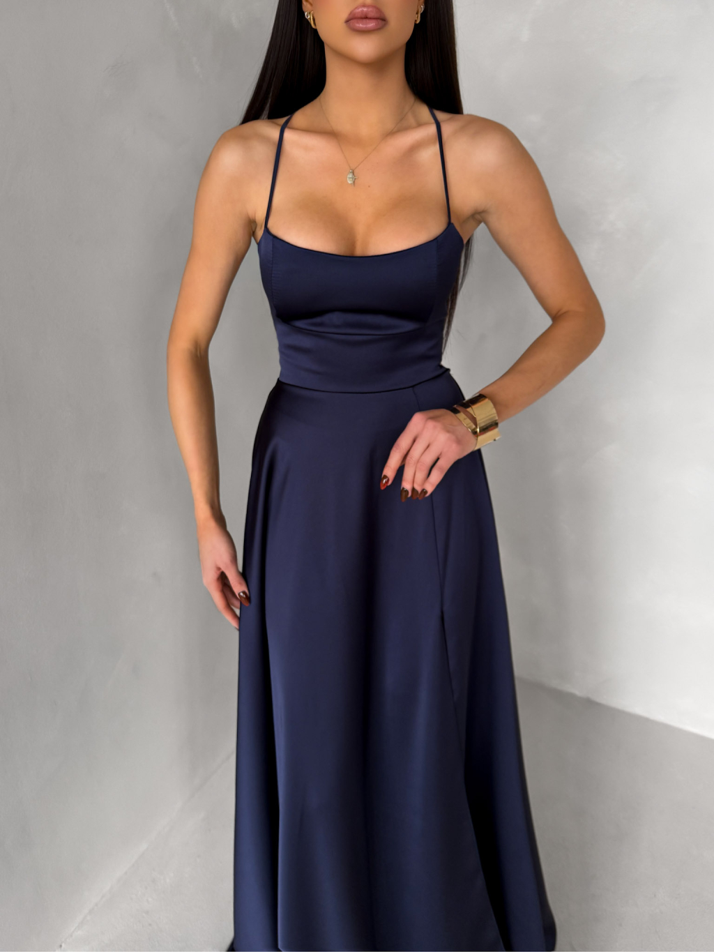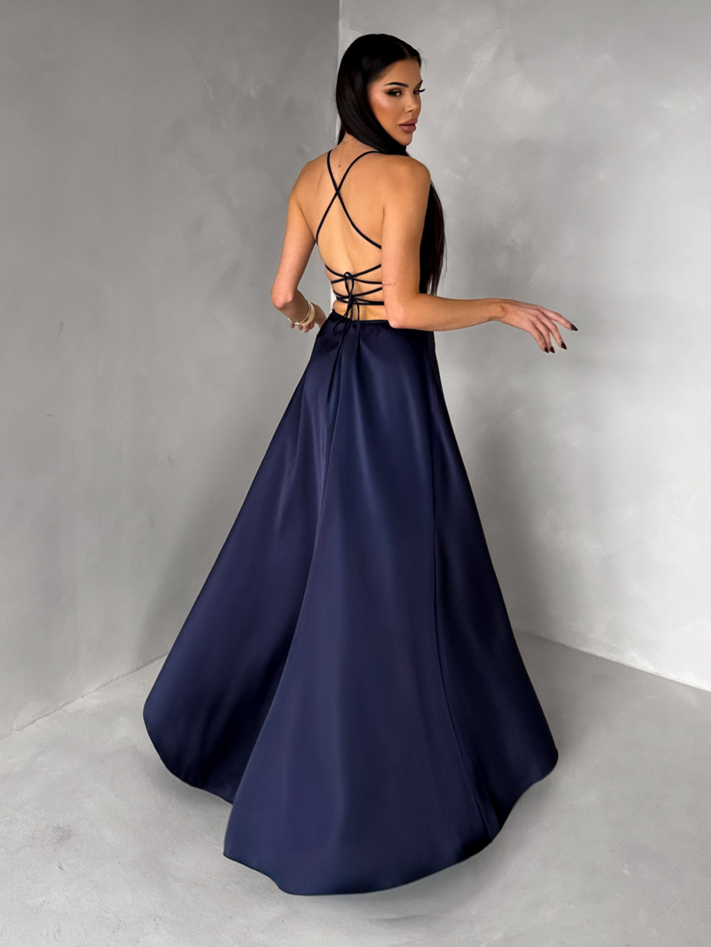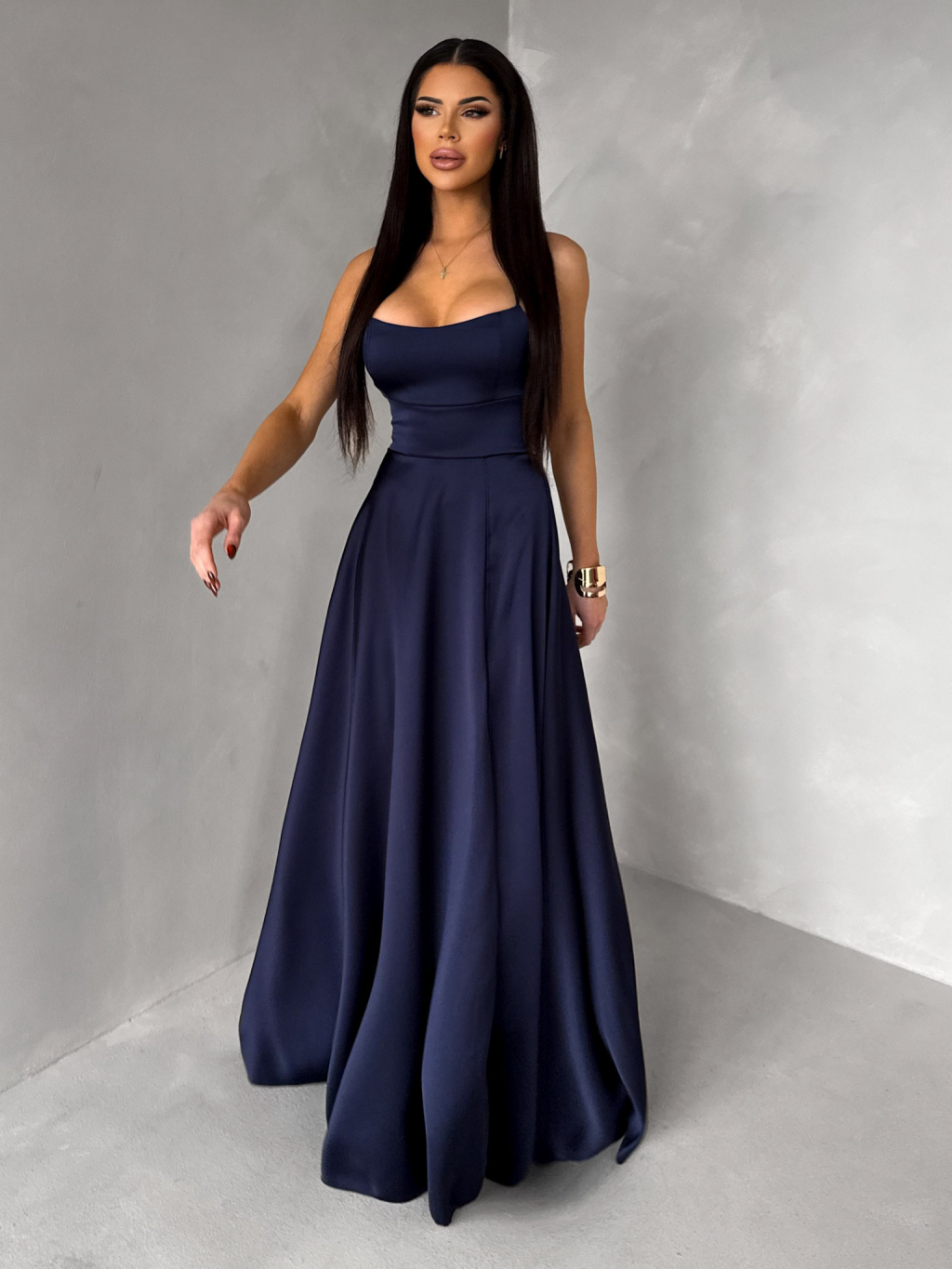 Tmavě modré dlouhé plesové šaty CELLINES se šněrováním