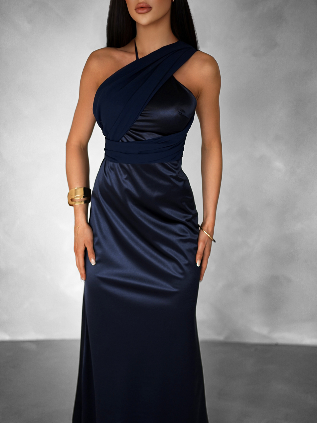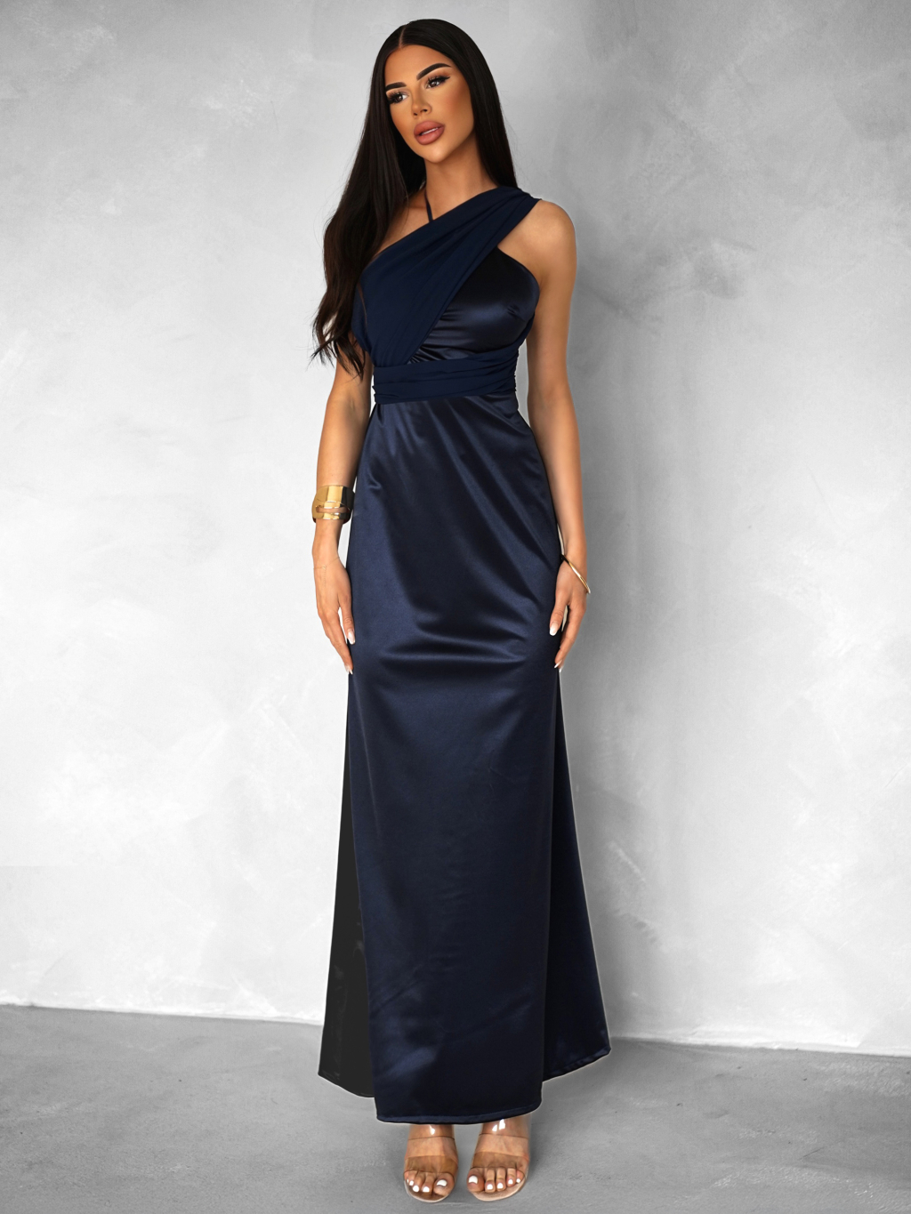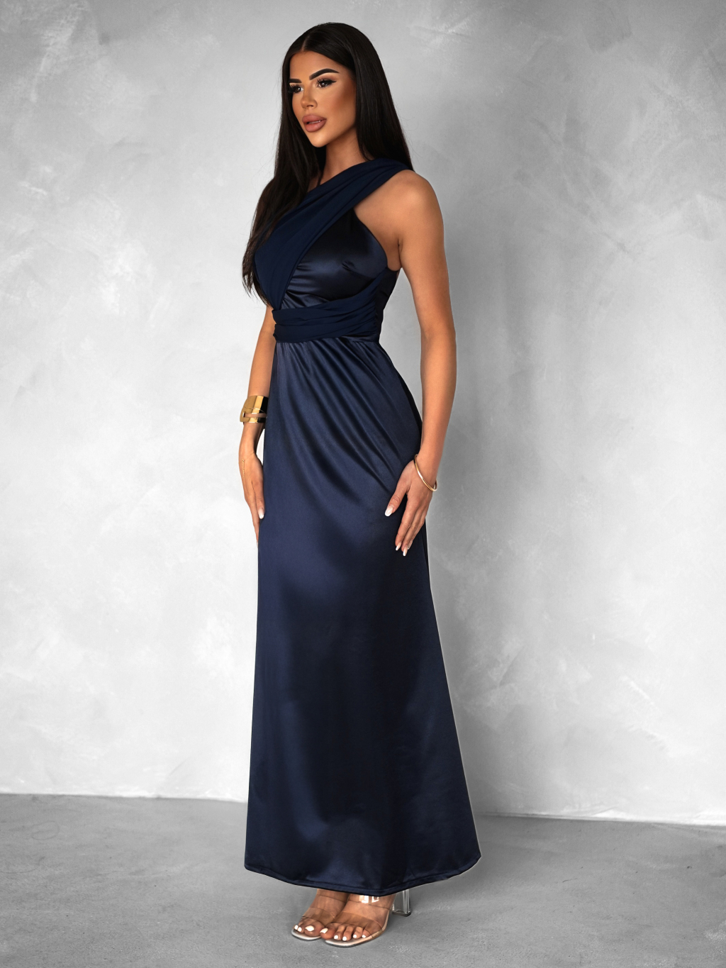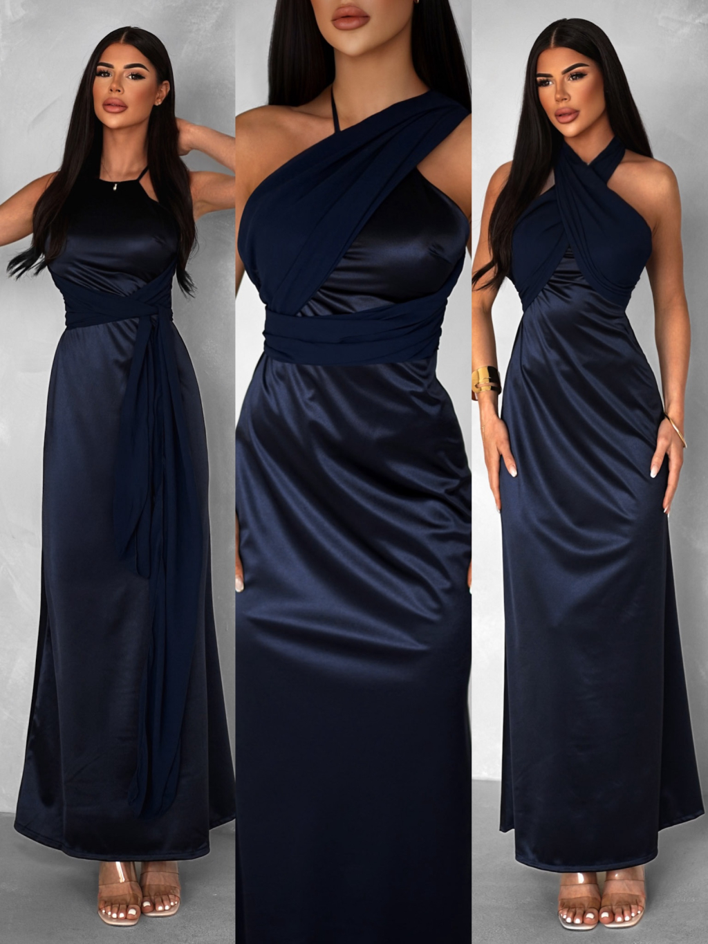Tmavě modré variabilní dlouhé saténové šaty BOLZANO