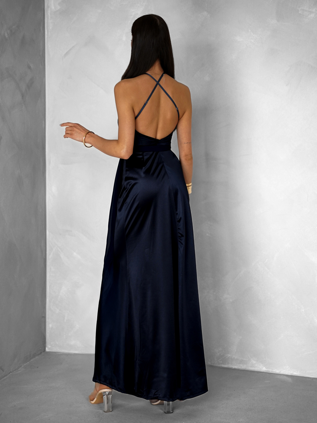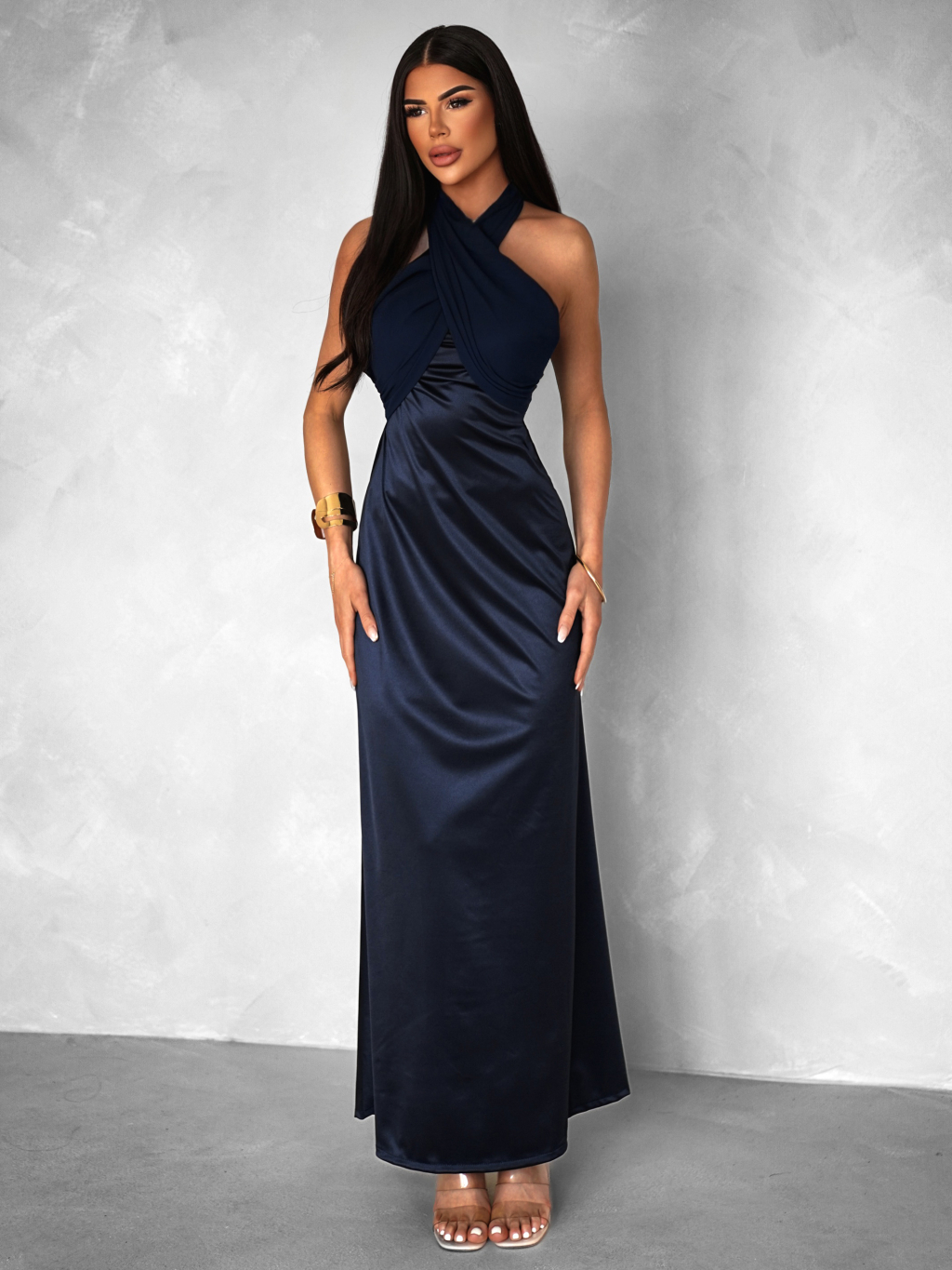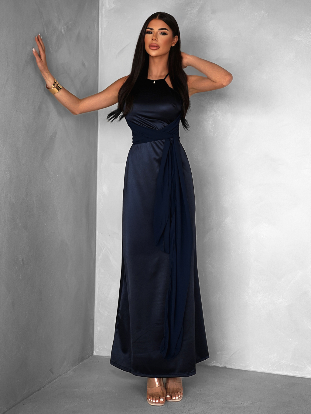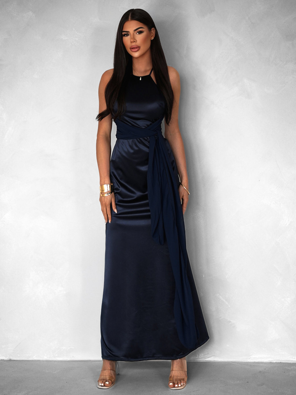 Tmavě modré variabilní dlouhé saténové šaty BOLZANO