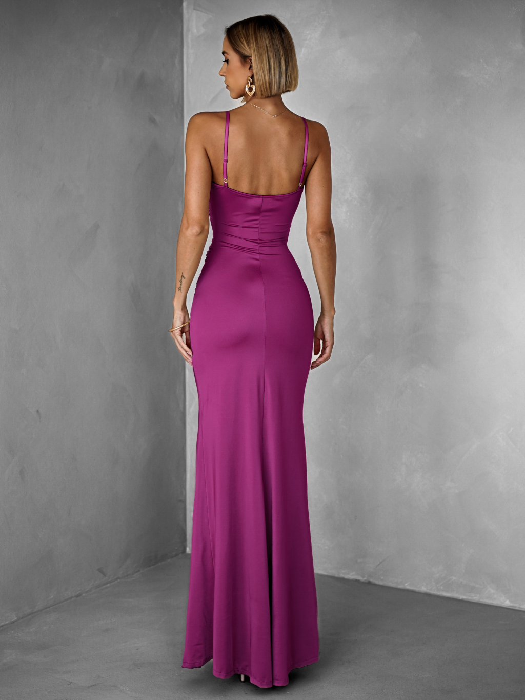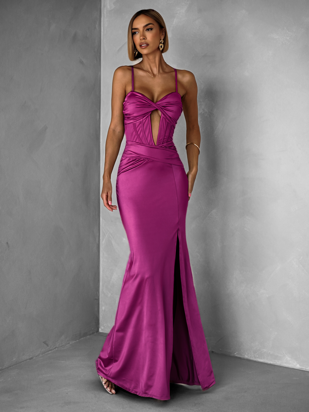 Tmavě růžové dlouhé společenské šaty LIMONA s průstřihy