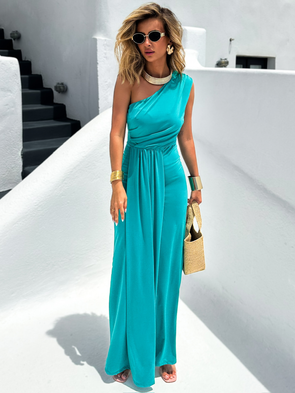 Tyrkysové elegantní asymetrické šaty DIETER