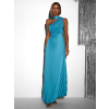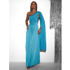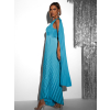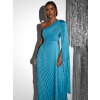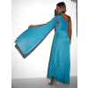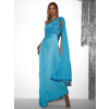 Tyrkysové společenské plisované šaty JERSAY s vlečkou