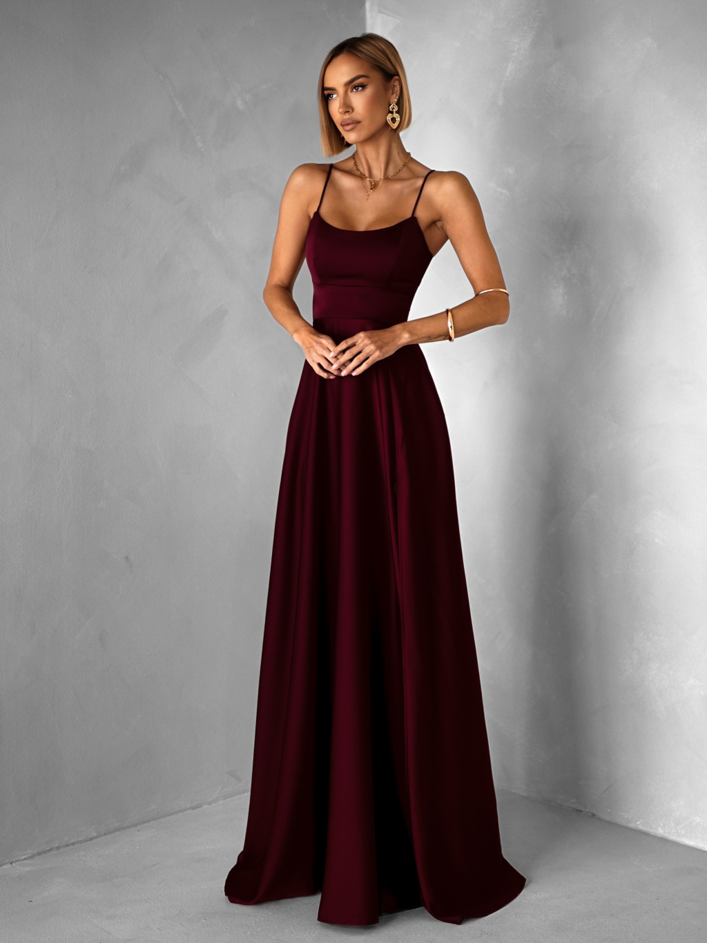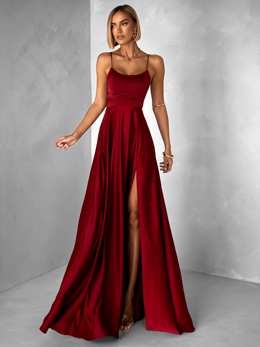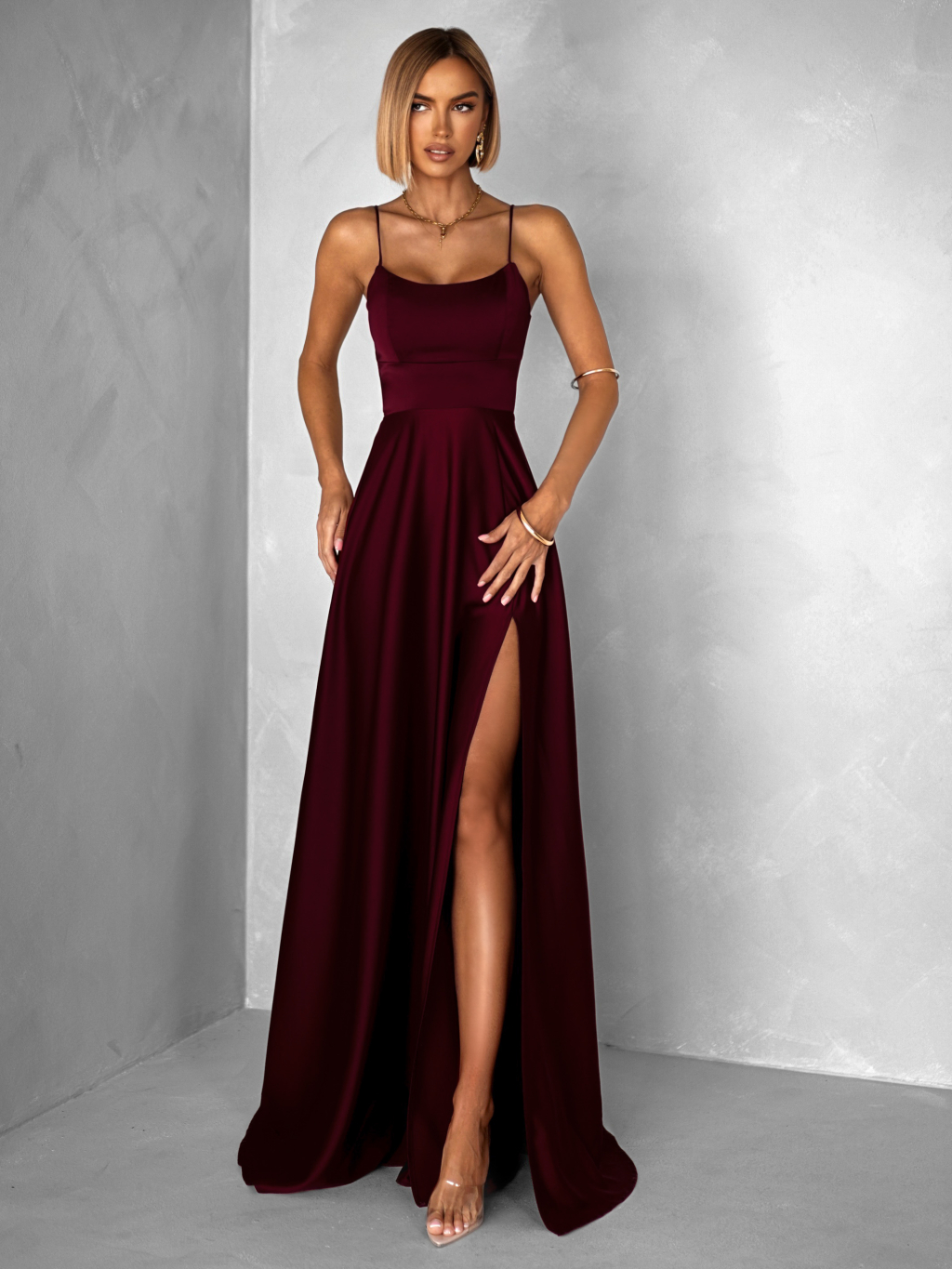 Vínové dlouhé plesové šaty CELLINES se šněrováním a rozparkem