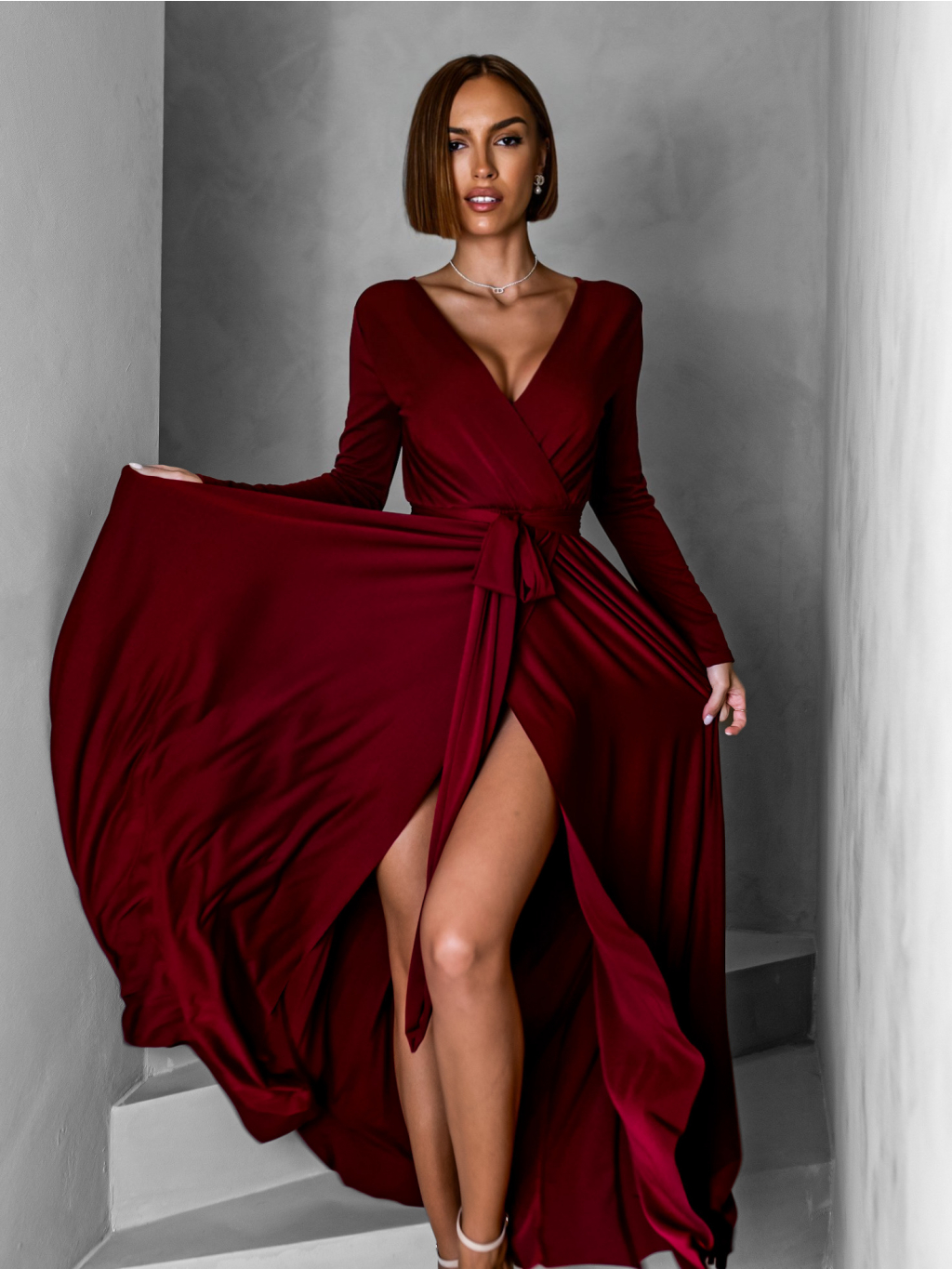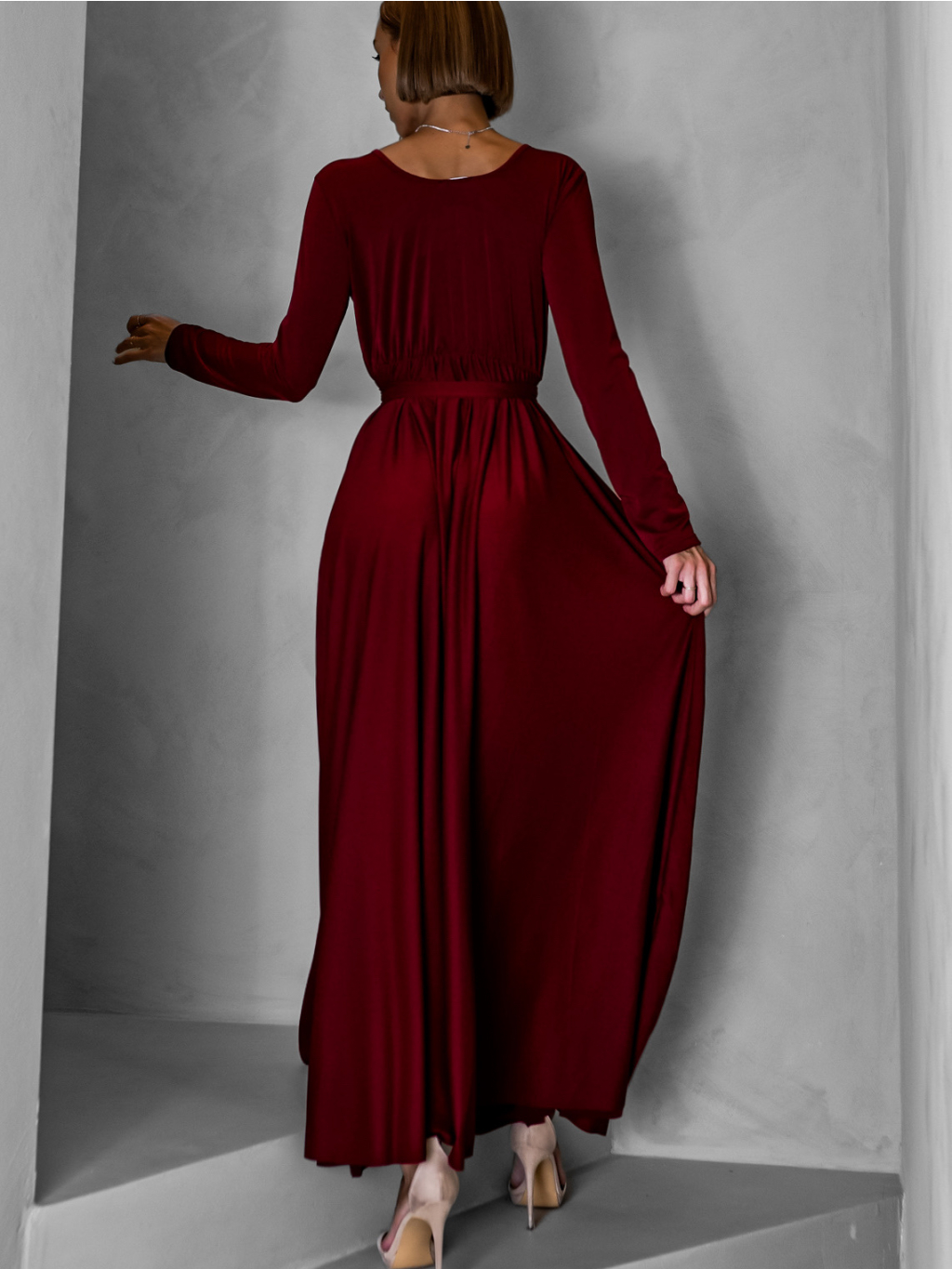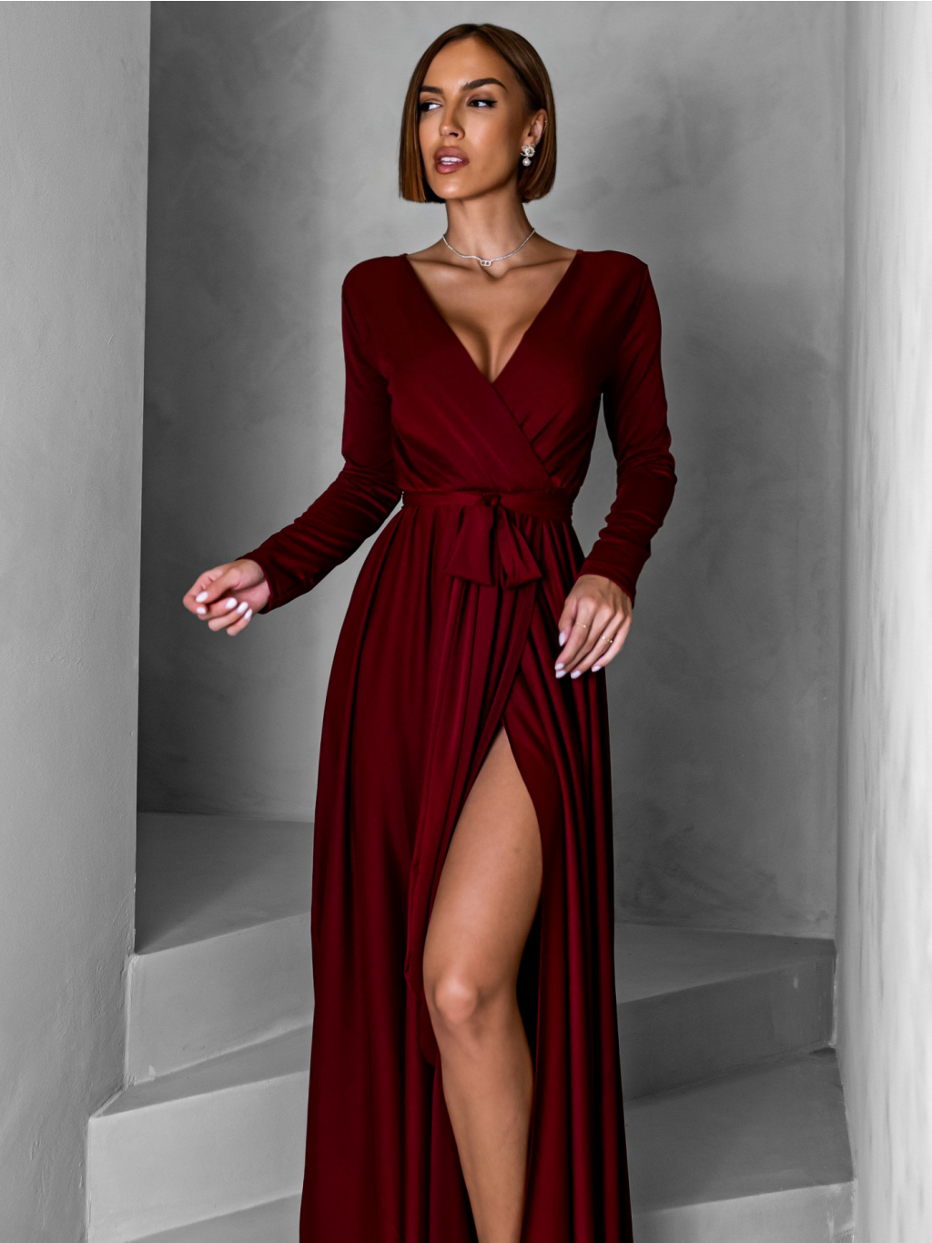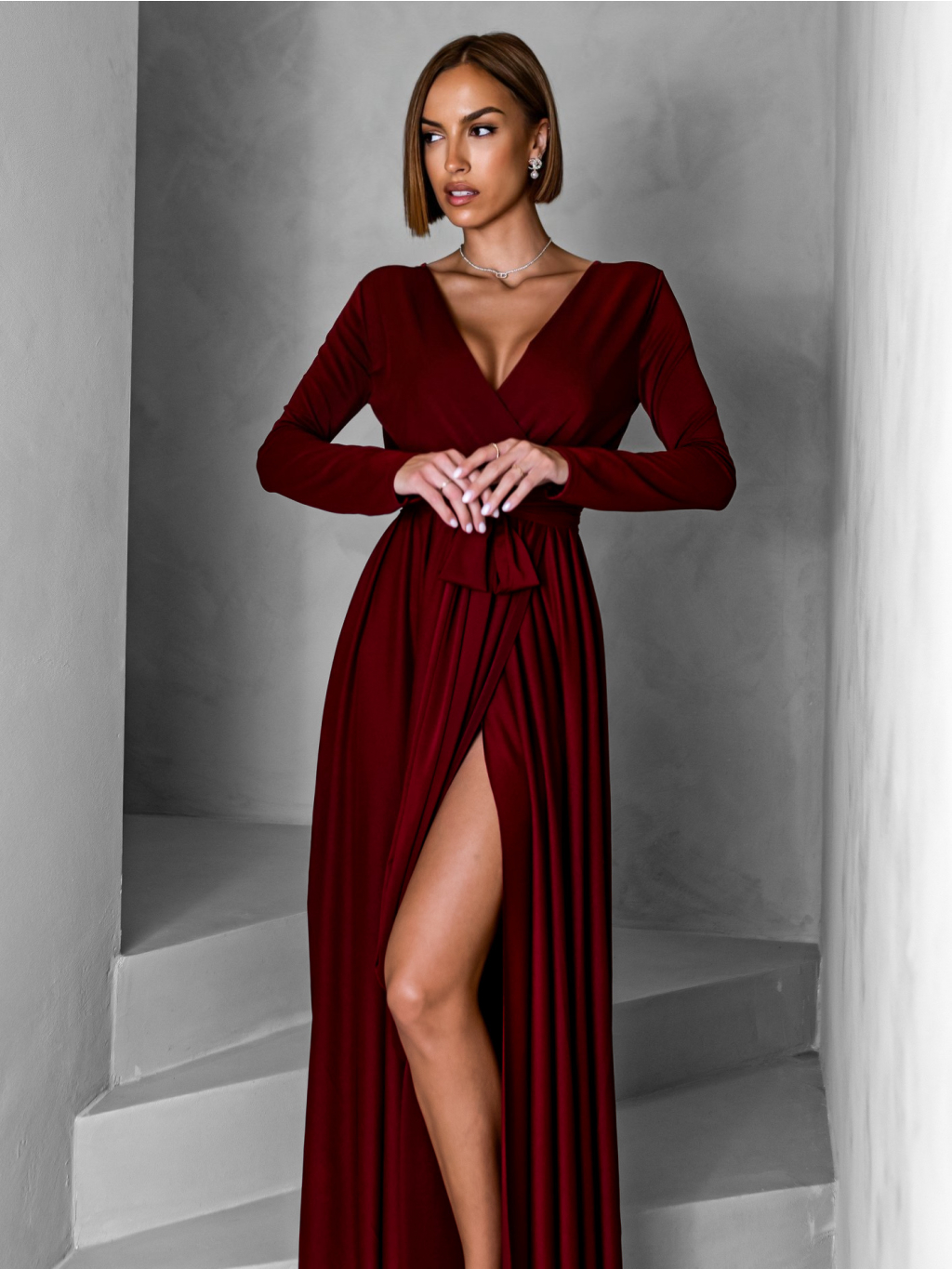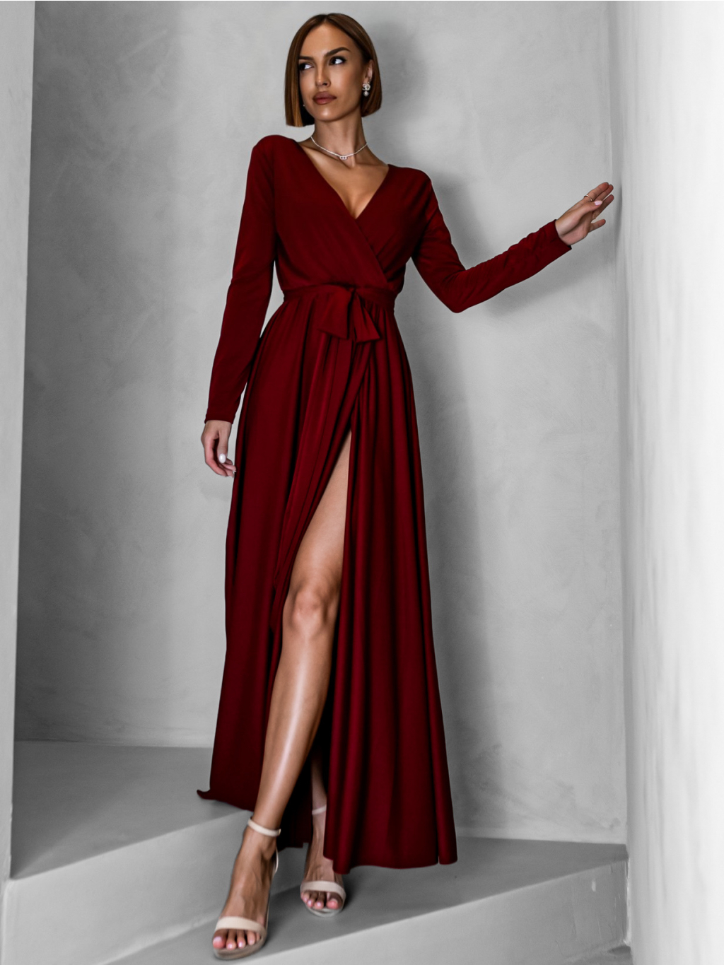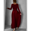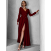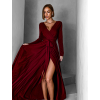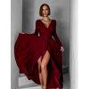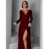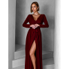 Vínové dlouhé společenské šaty JOELLIAN s dlouhým rukávem
