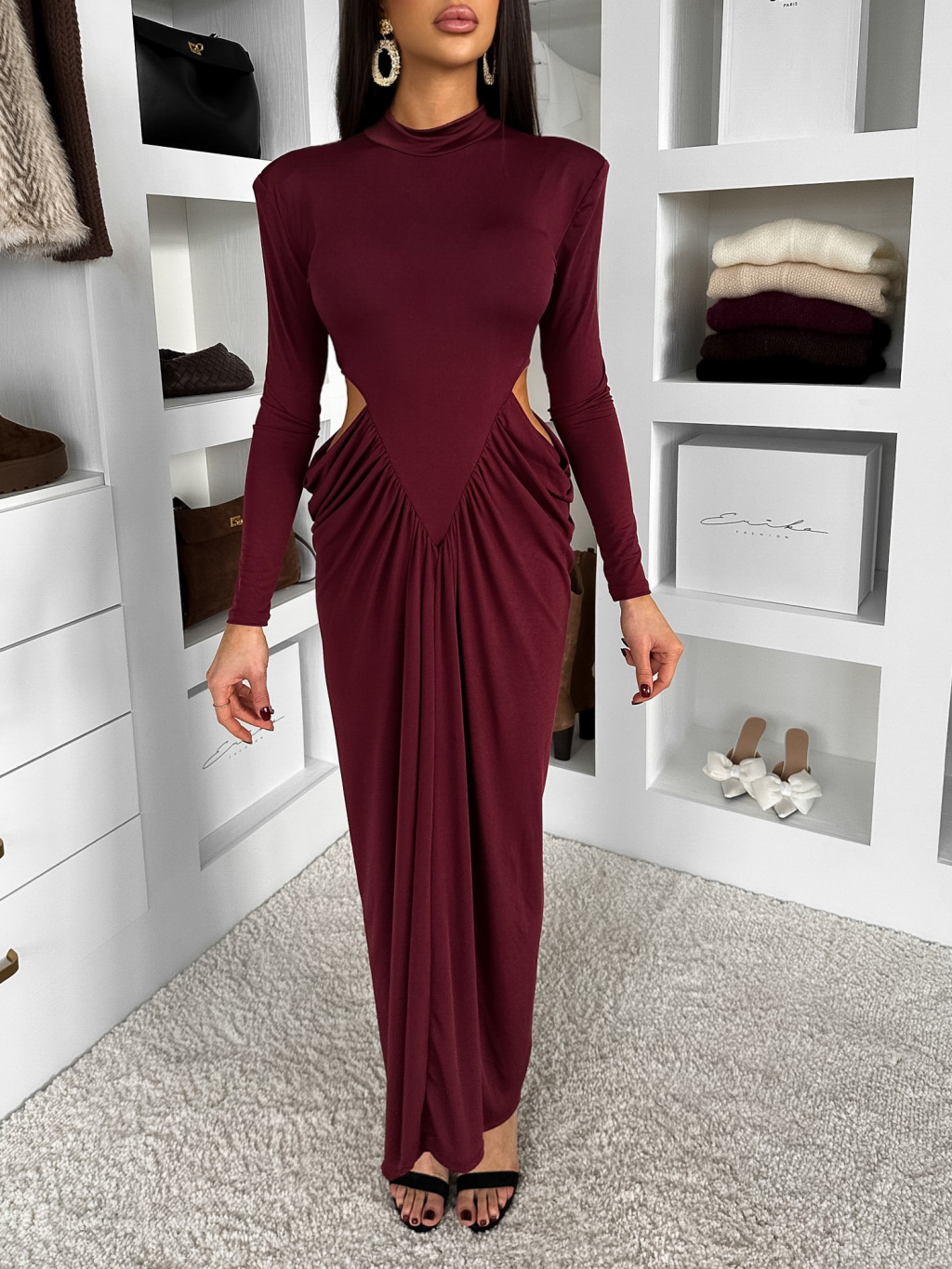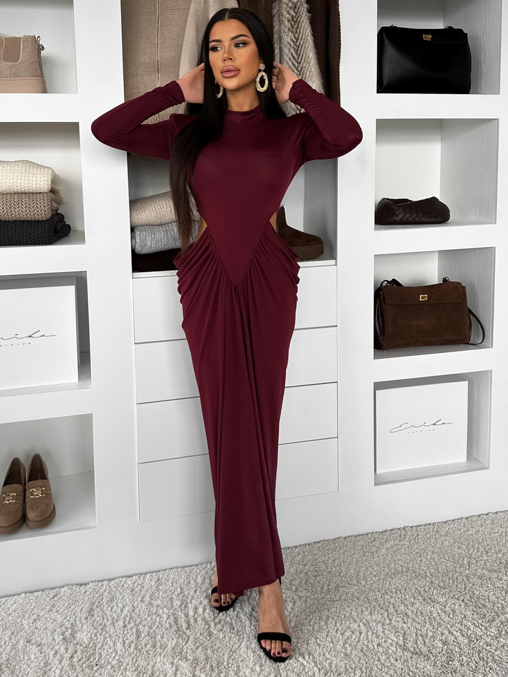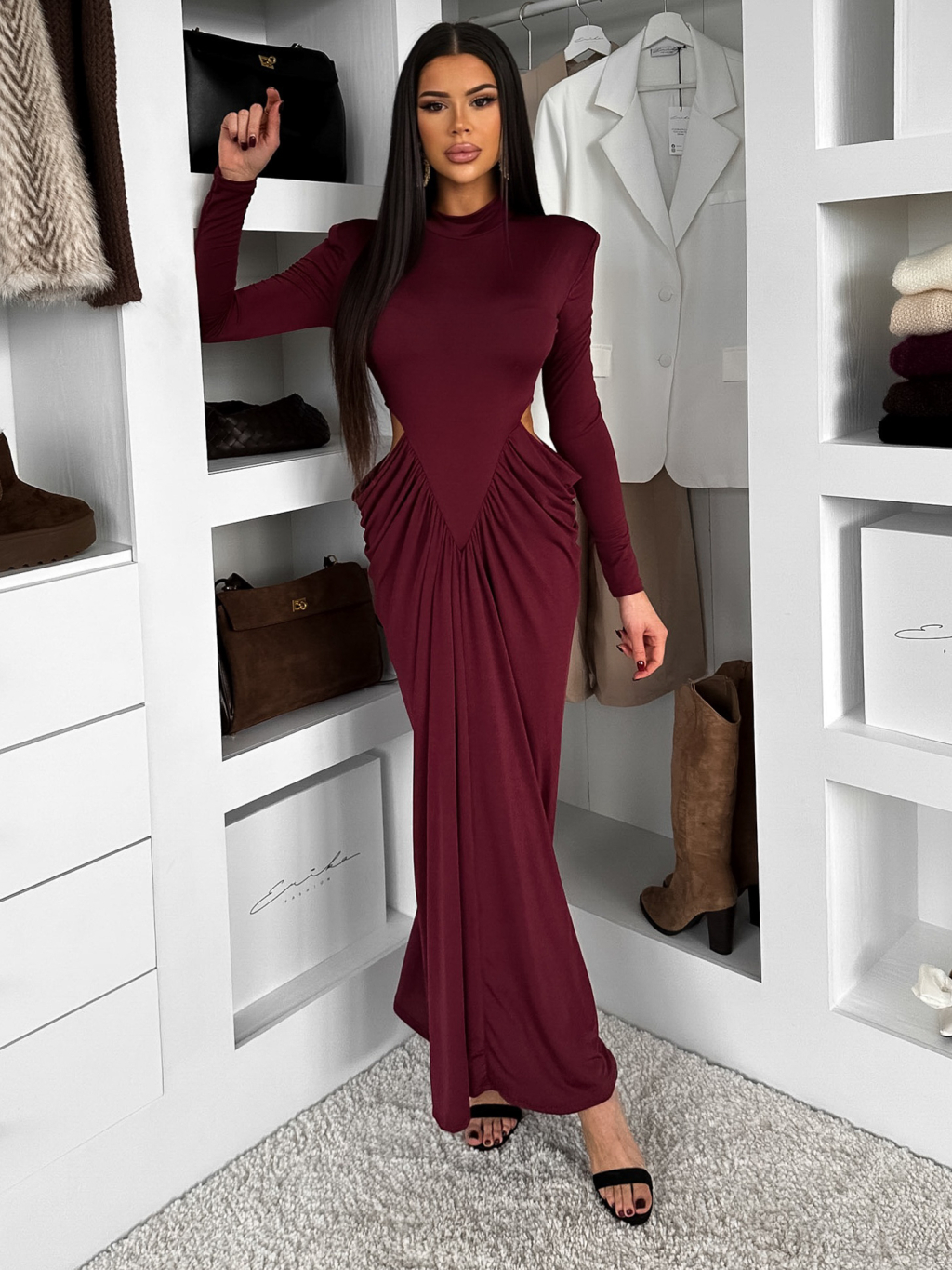 Vínové společenské dlouhé šaty ESTAVION s průstřihy
