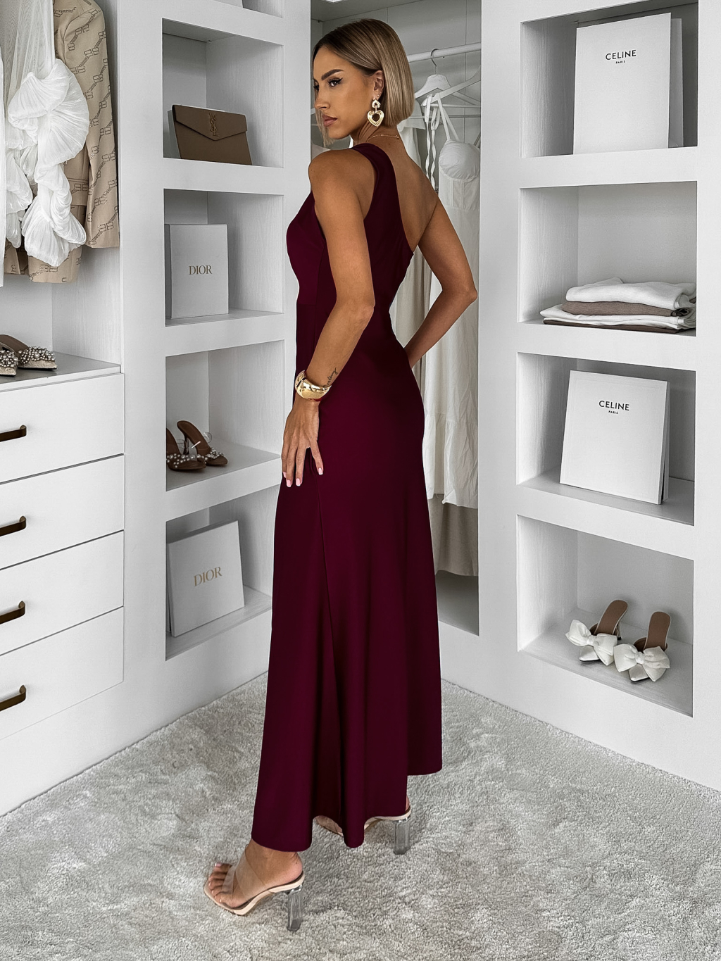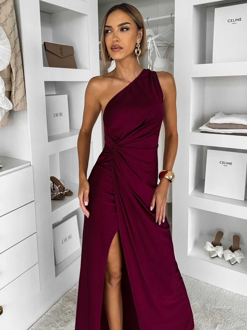Vínové společenské dlouhé šaty FIAMMAR s rozparkem