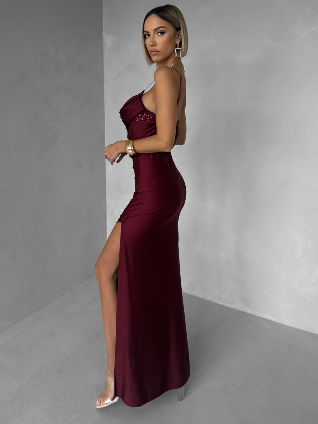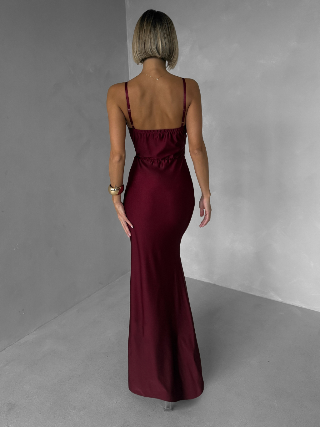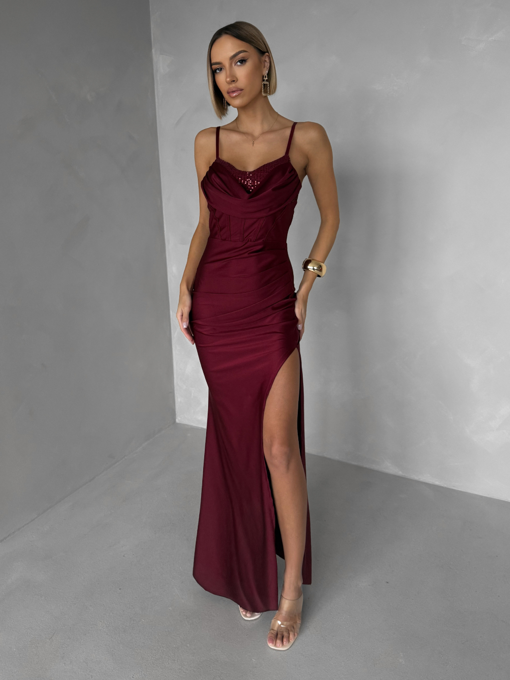 Vínové společenské korzetové dlouhé šaty FAYELA