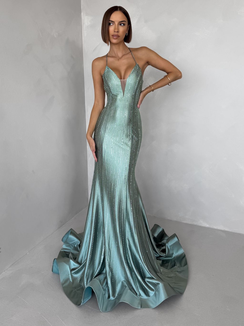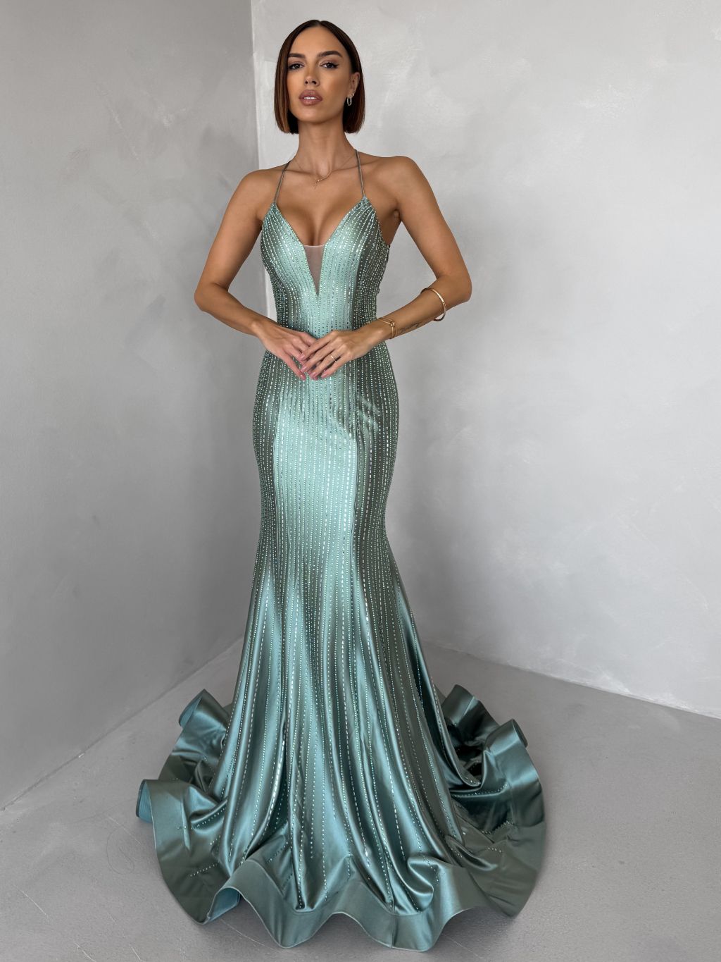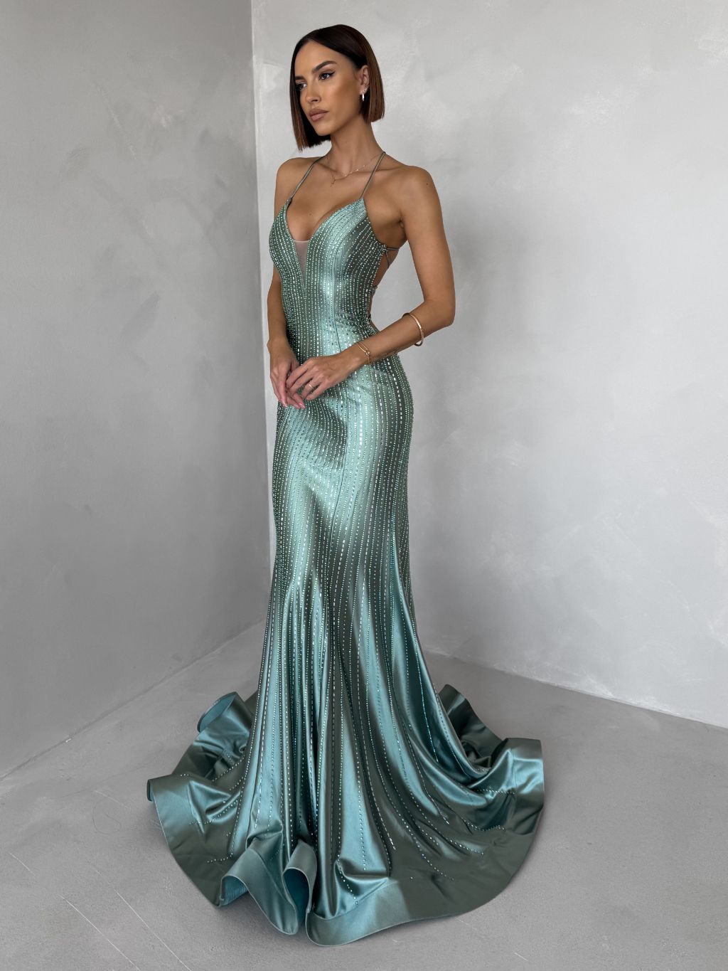 Zelené plesové dlouhé třpytivé šaty GALDYNE