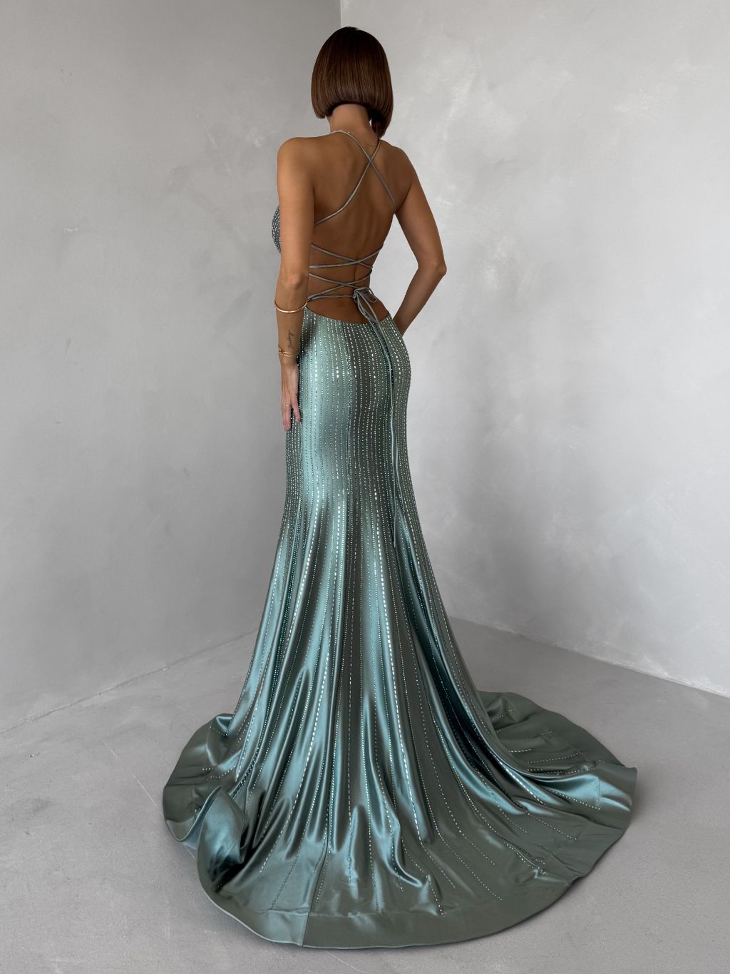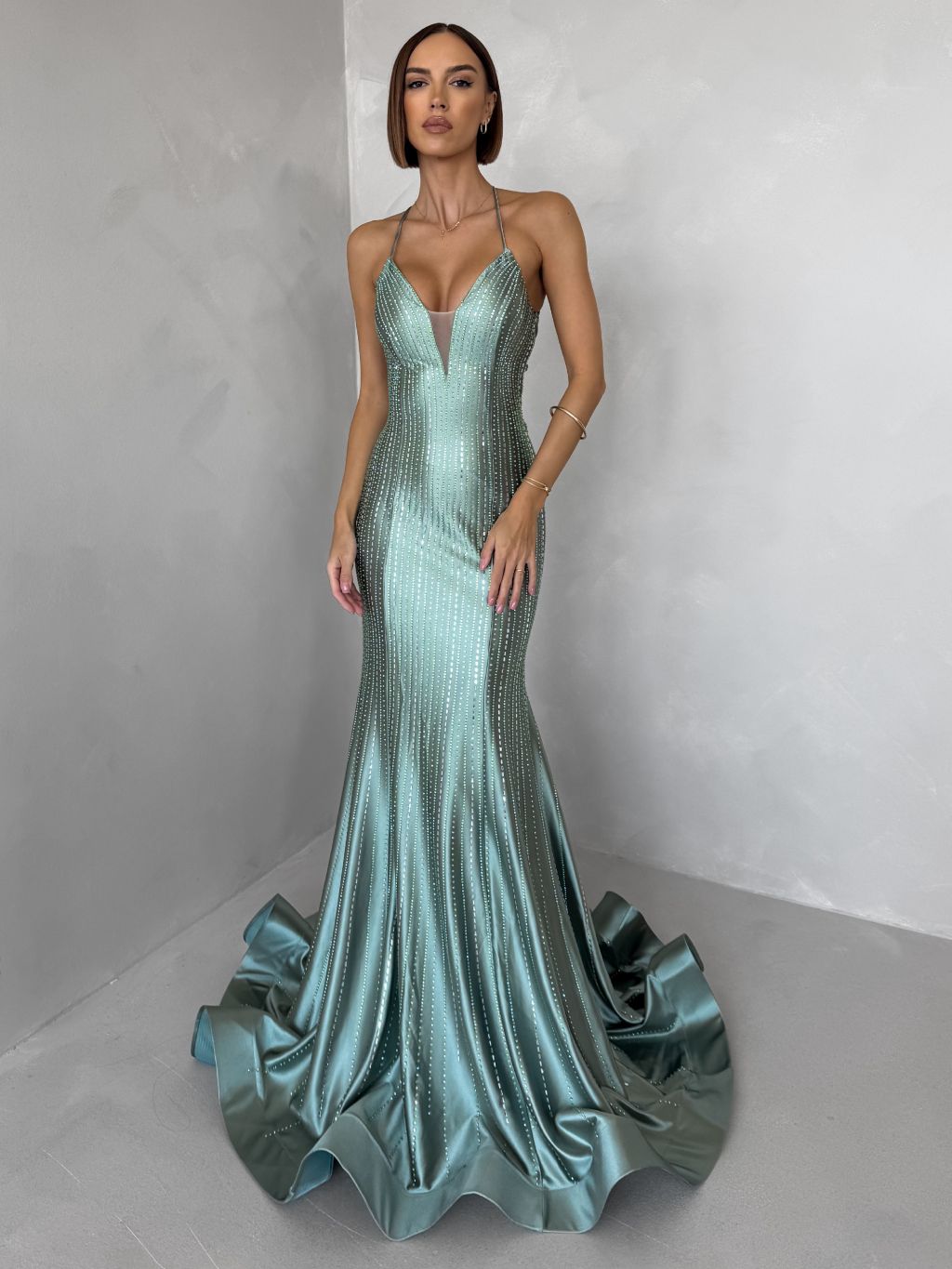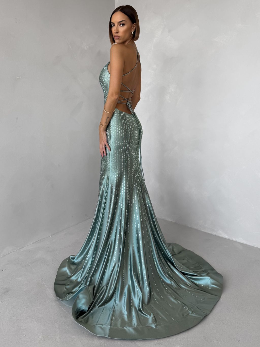 Zelené plesové dlouhé třpytivé šaty GALDYNE
