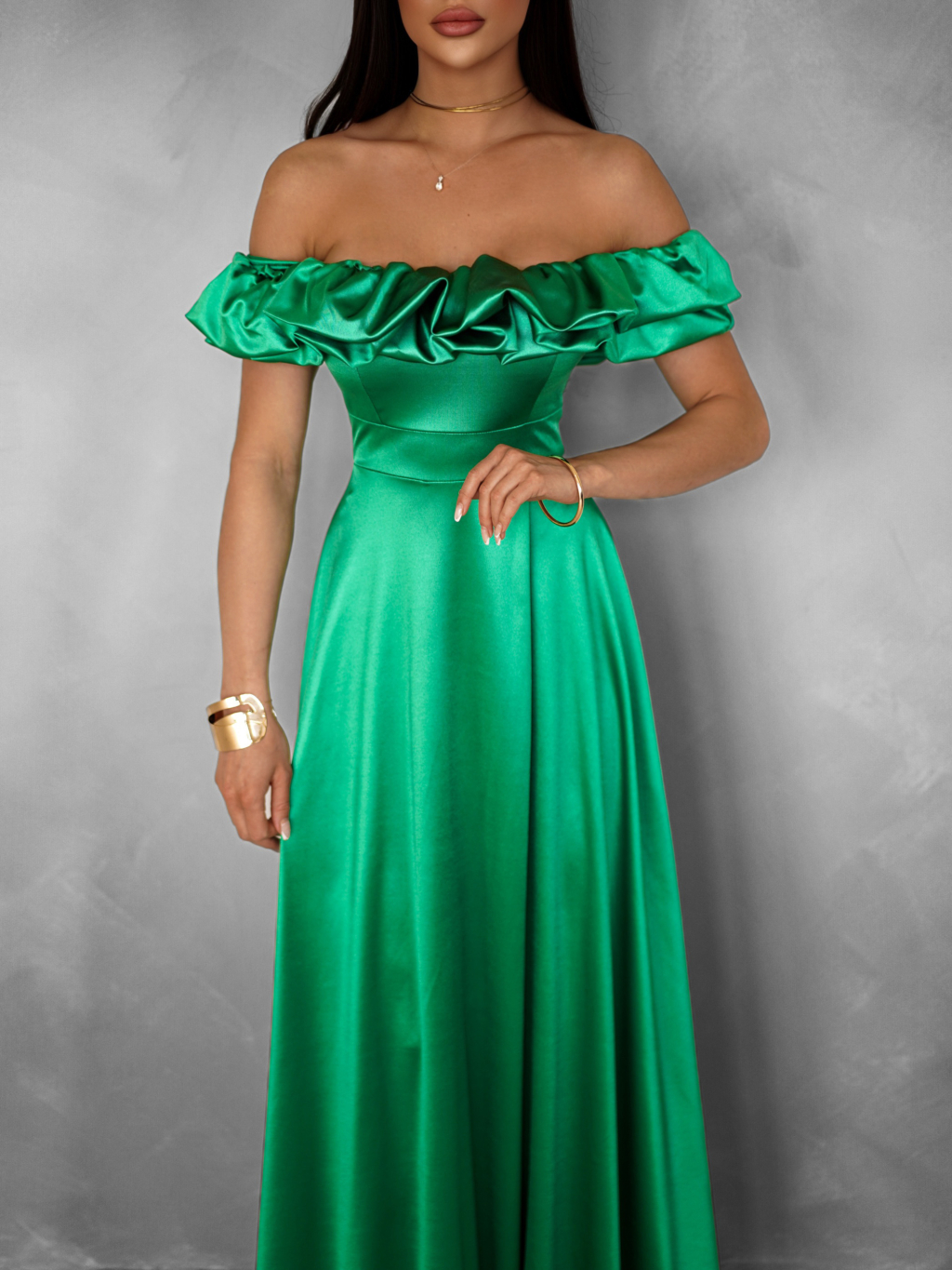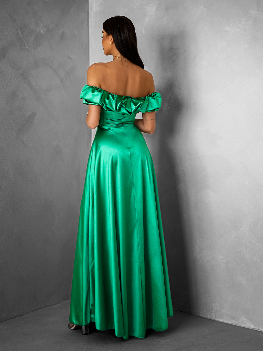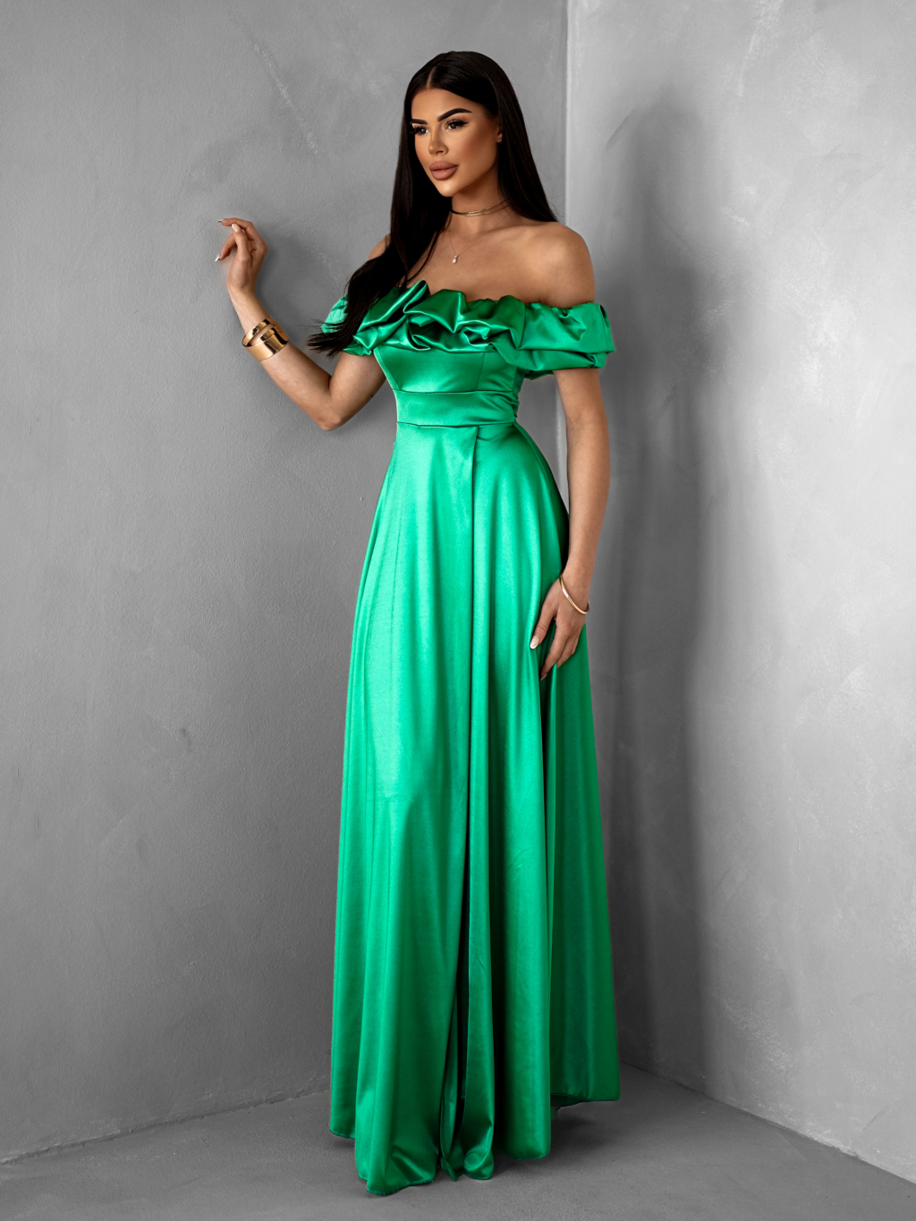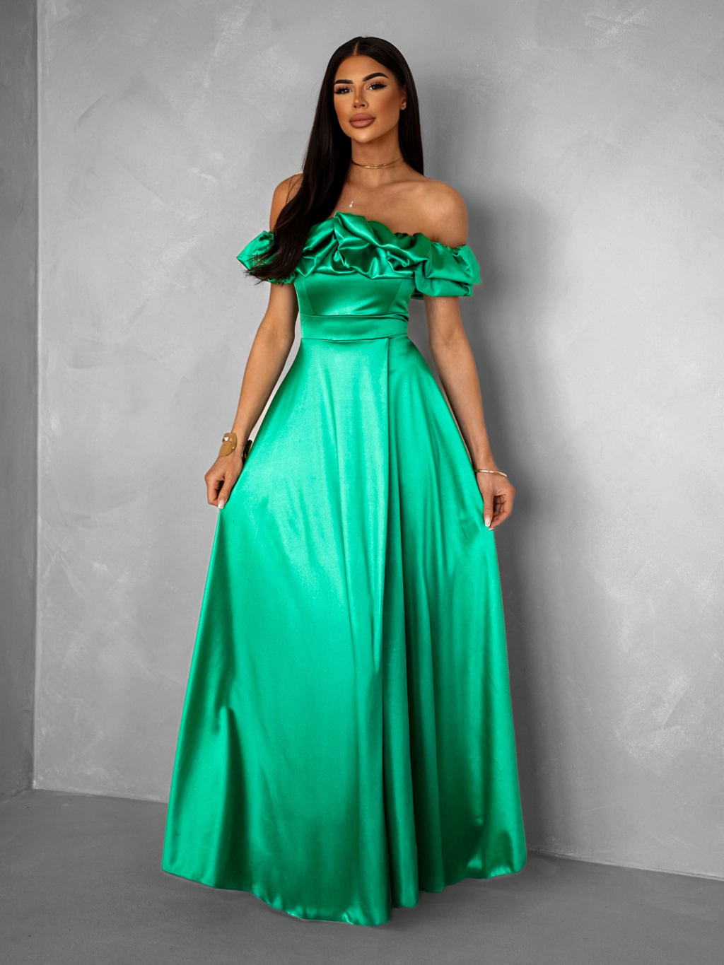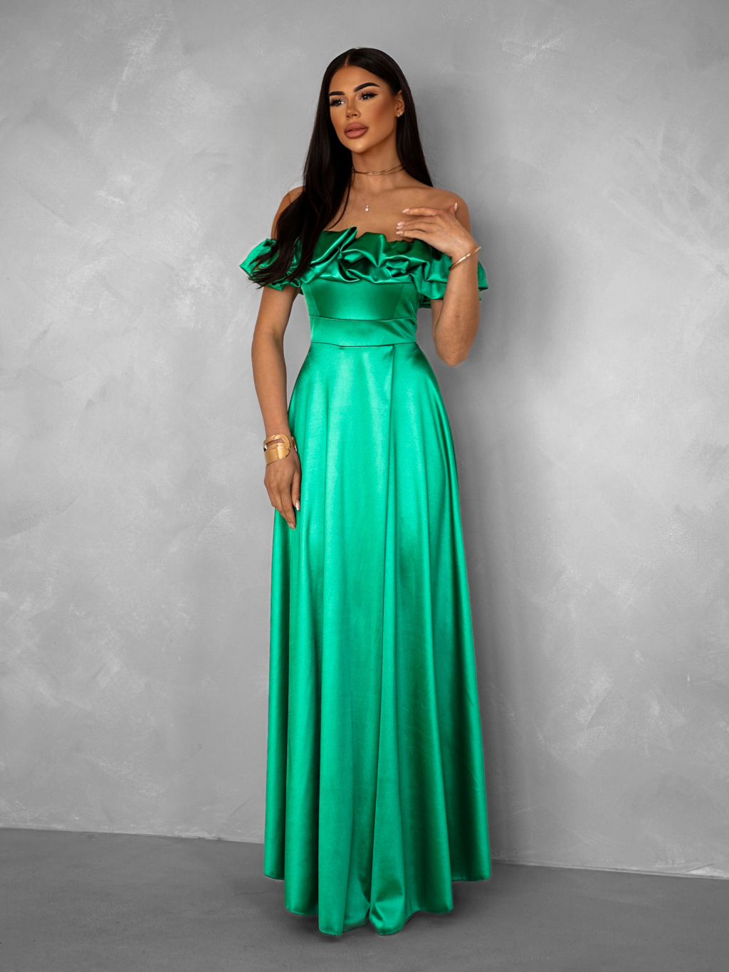Zelené plesové saténové dlouhé šaty EBOLIA bez ramínek