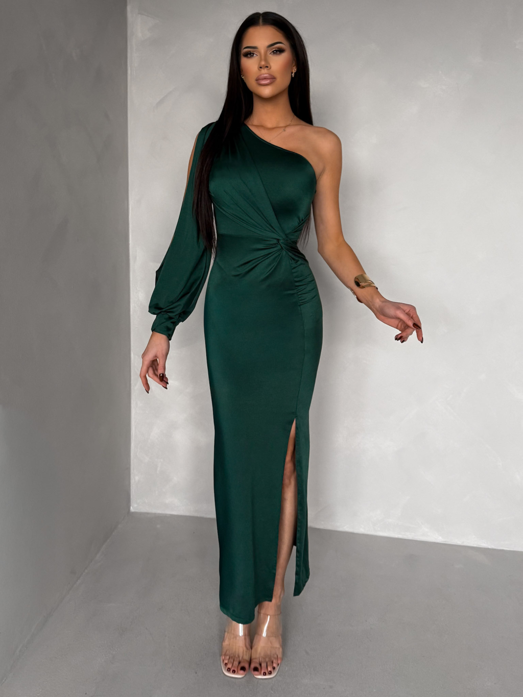 Zelené společenské večerní šaty DUFOUR na jedno rameno