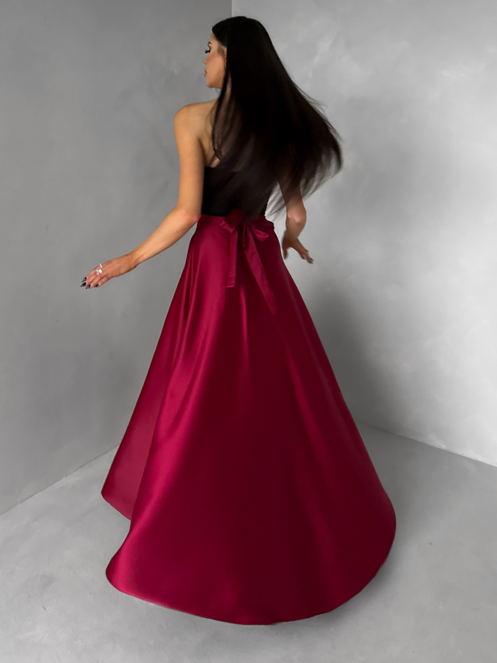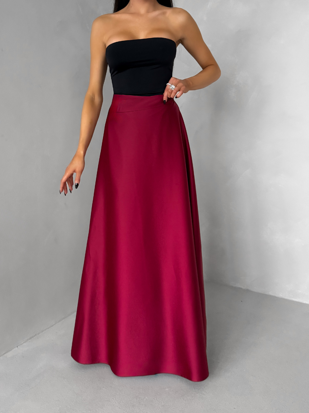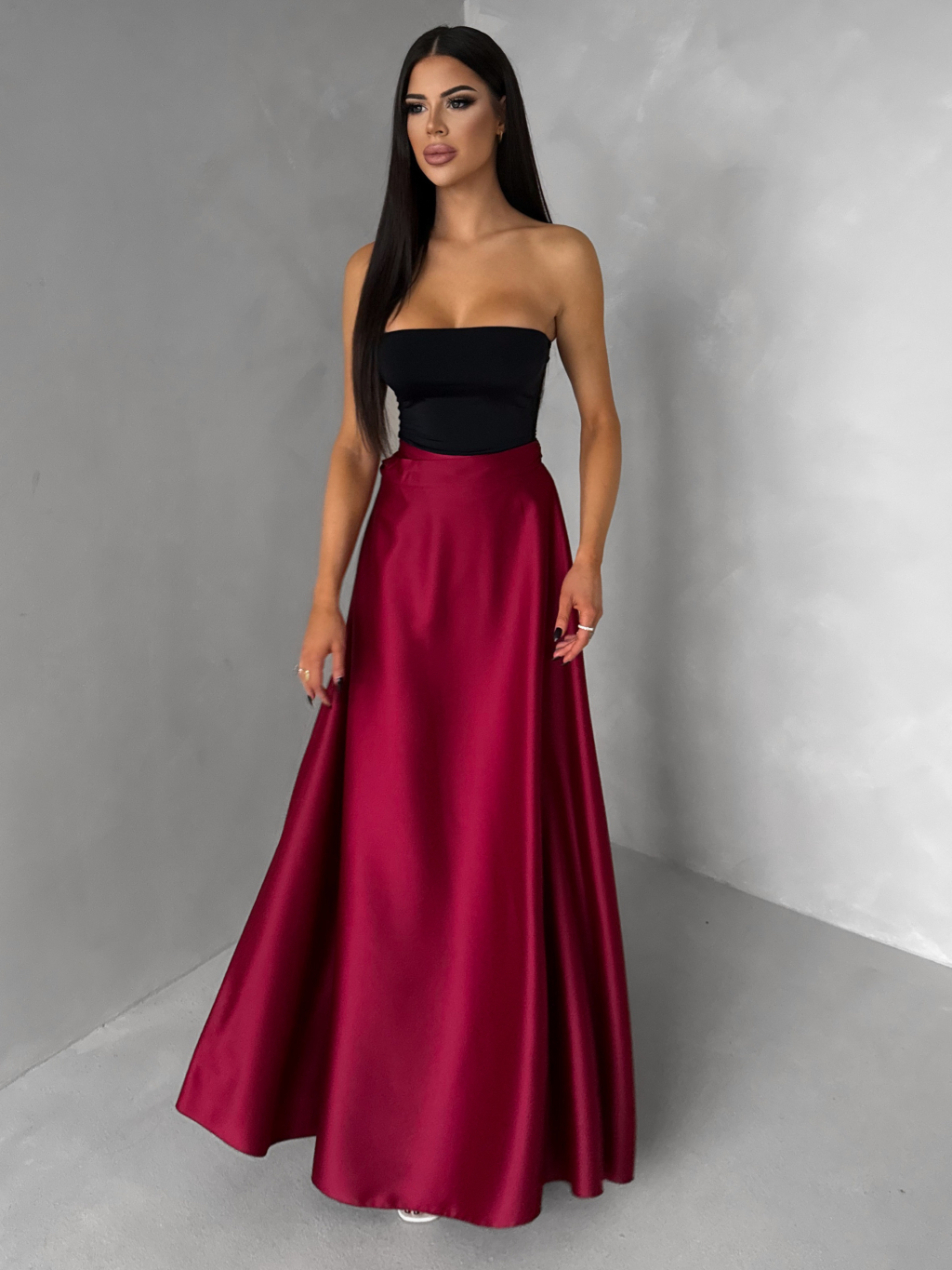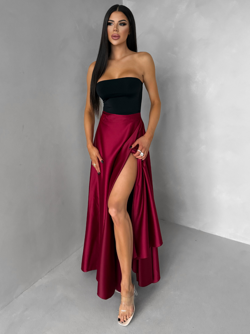 Bordó saténová zavinovací dlouhá sukně DENISSE