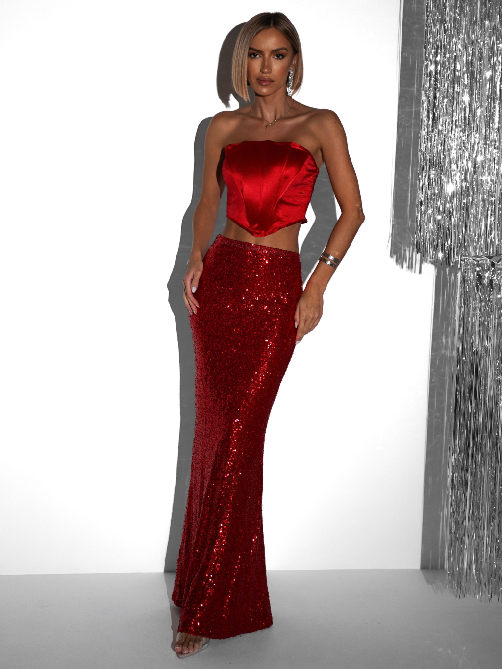 Červená flitrovaná dlouhá sukně ESTRELLA