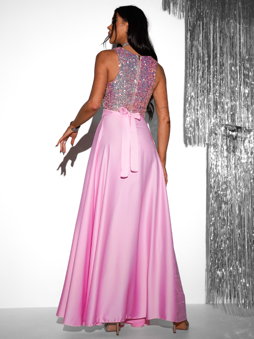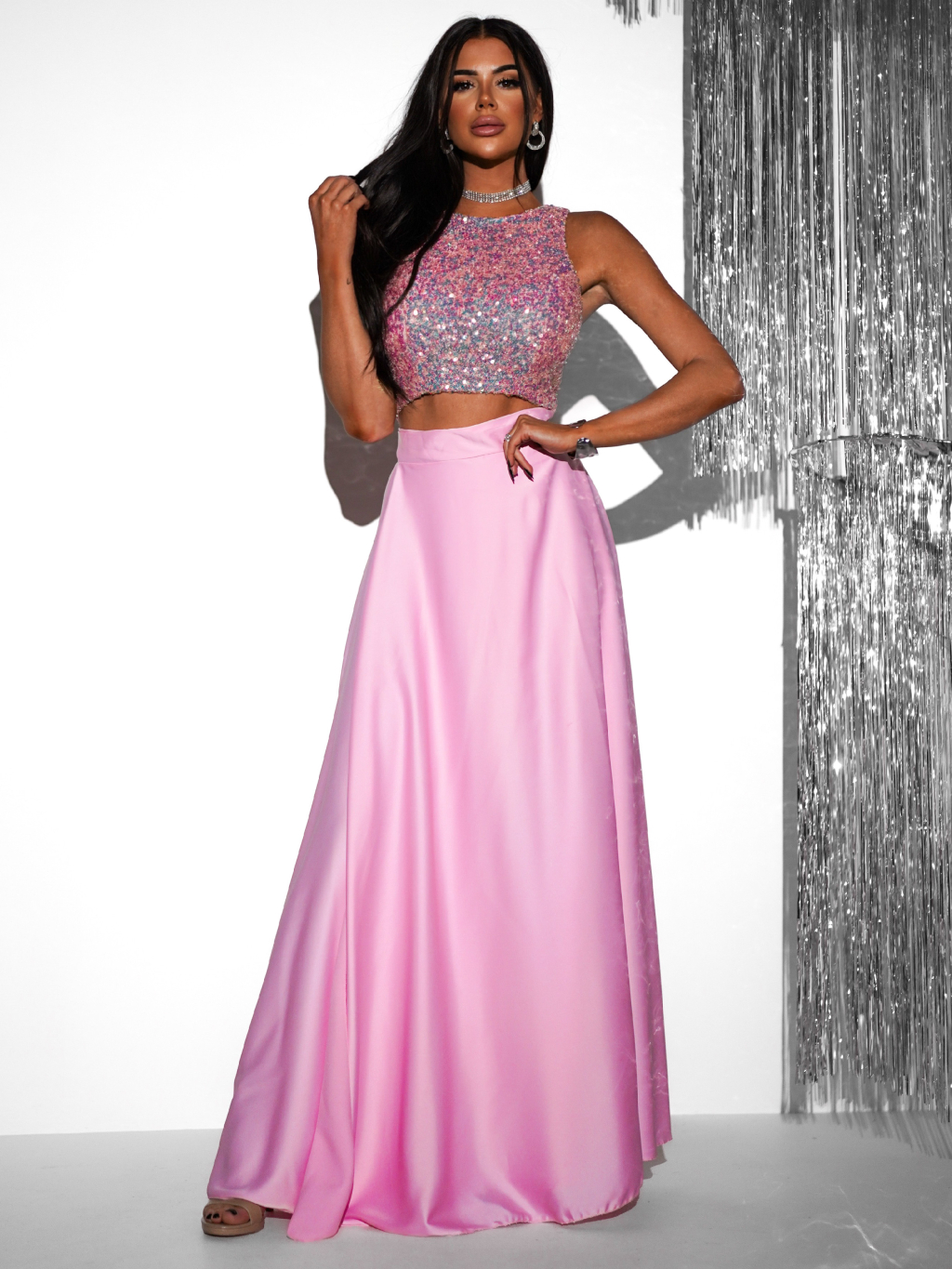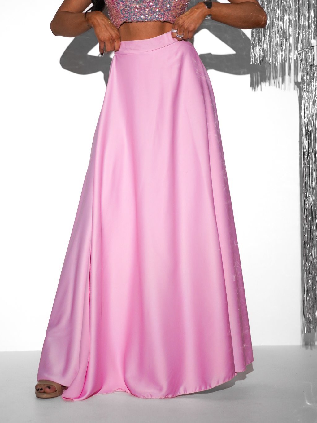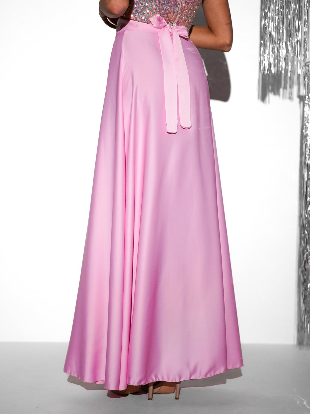 Růžová saténová dlouhá zavinovací sukně DENISSE