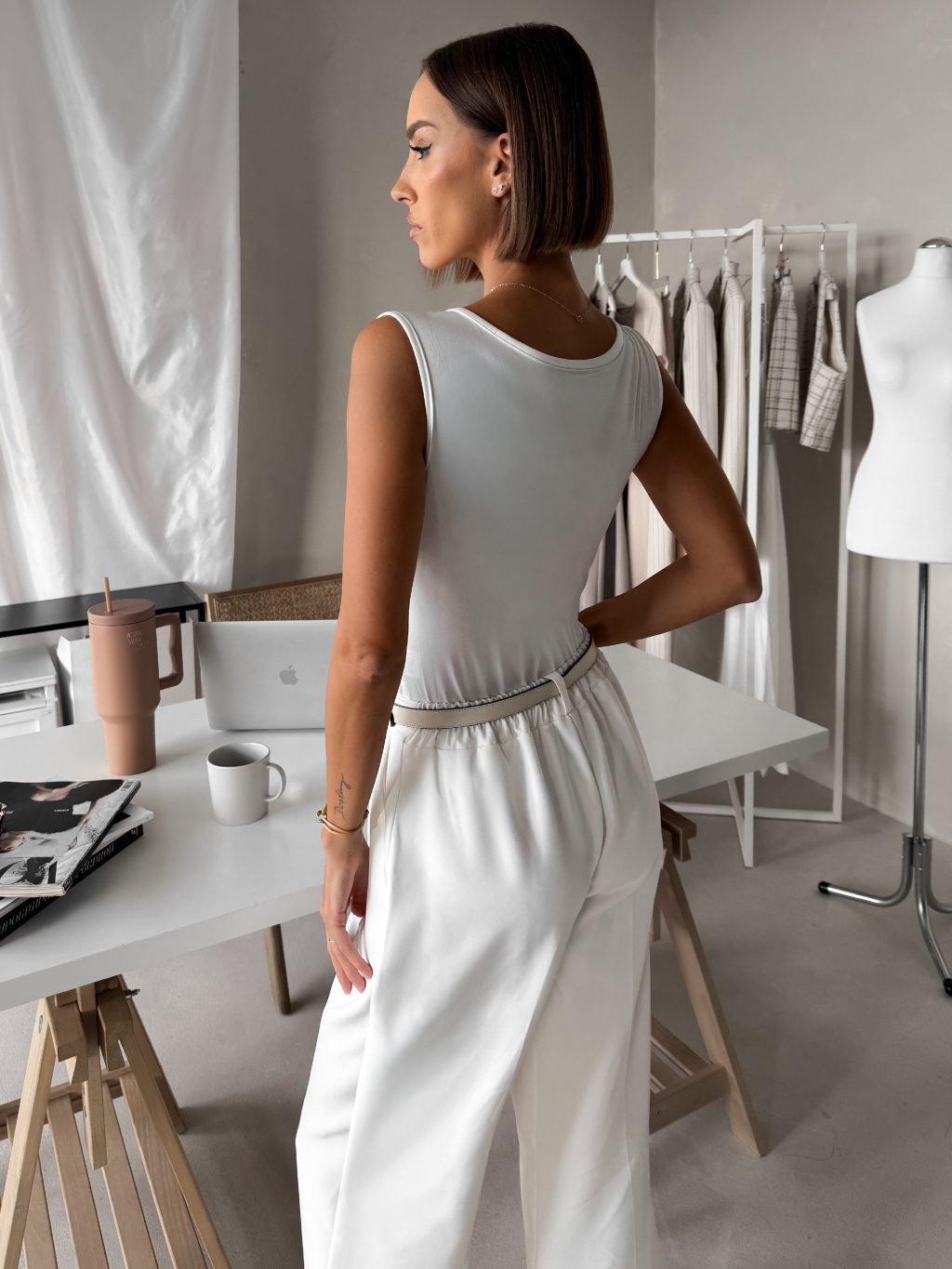 Bílé elegantní body NERTIS s výstřihem