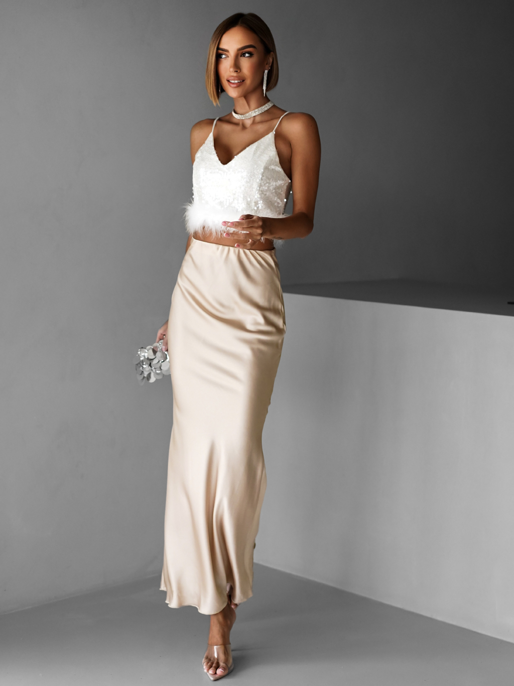 Bílý flitrovaný top ERNIK s peříčky na ramínka