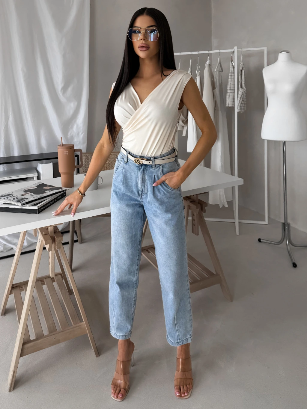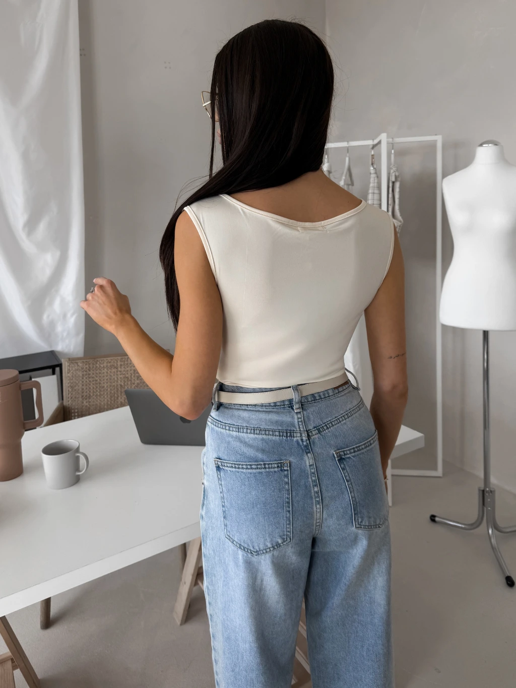 Krémové elegantní body NERTIS s výstřihem