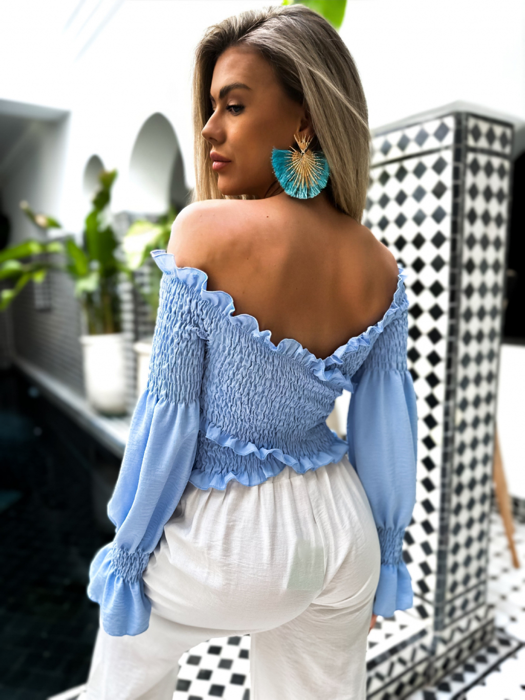 Modrý top ACRID s volánky
