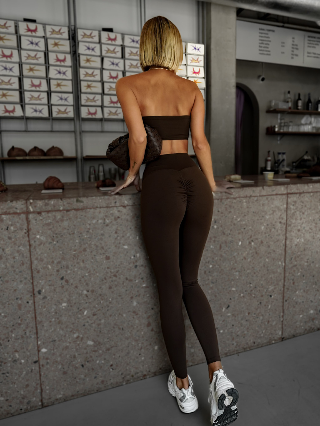 Hnědé push up sportovní legíny VRATAN s řasením