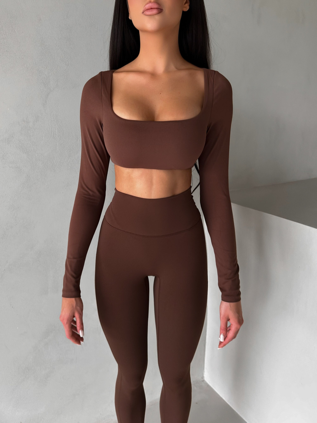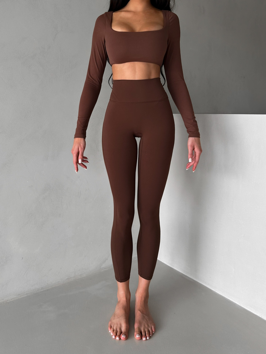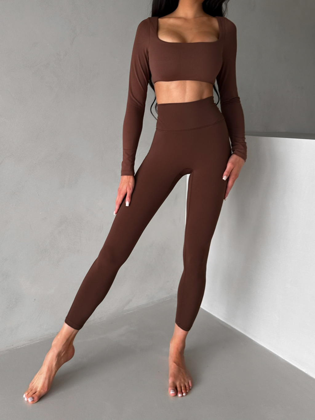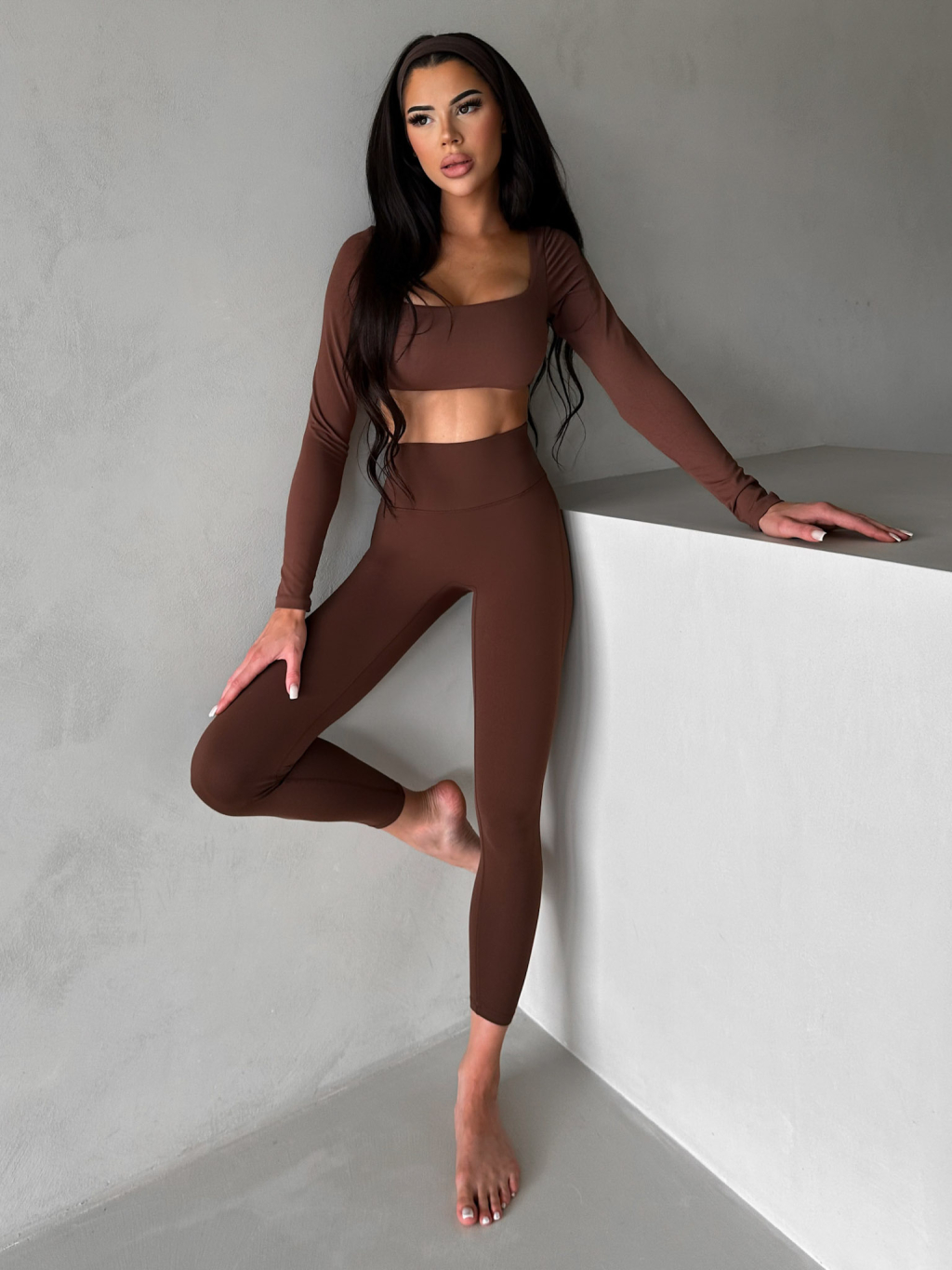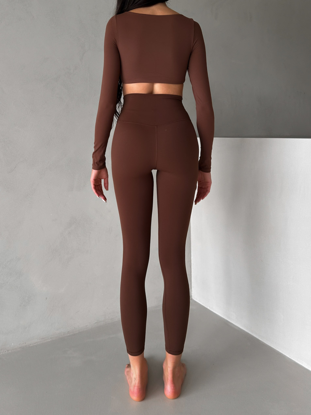 Hnědé sportovní legíny TERNILA s extra vysokým pasem