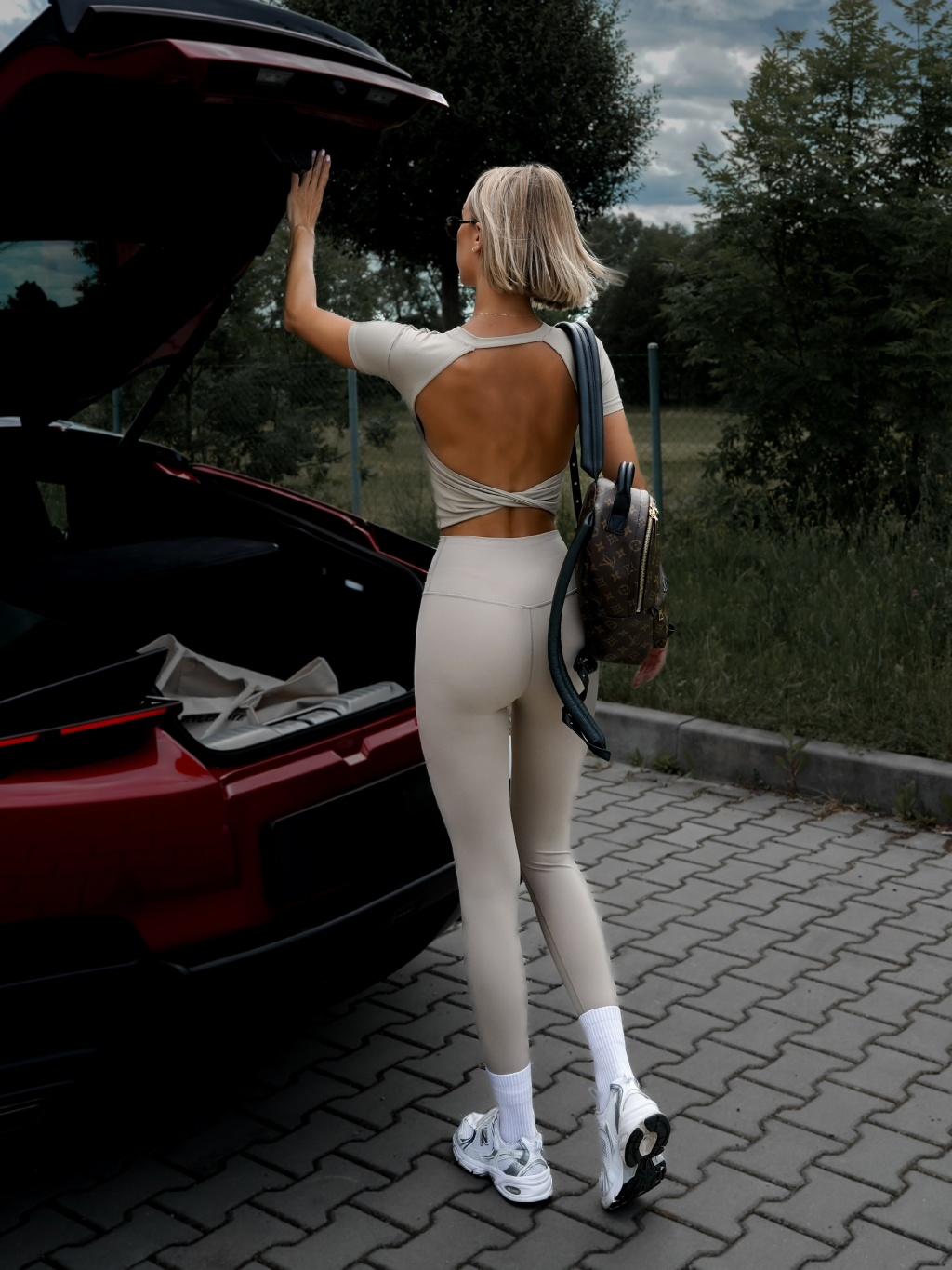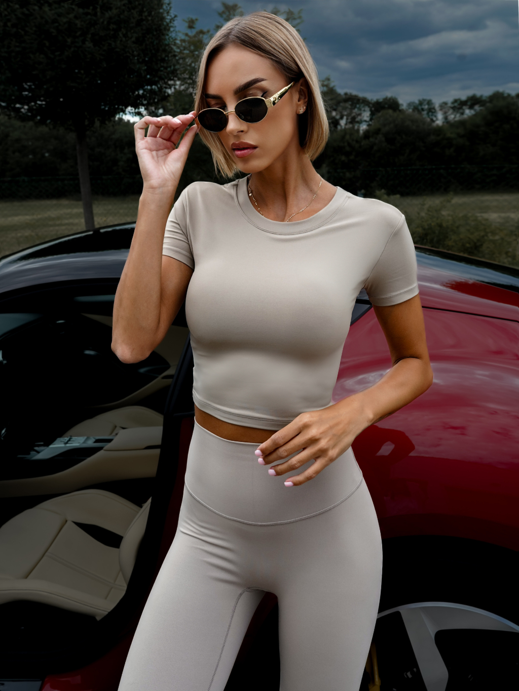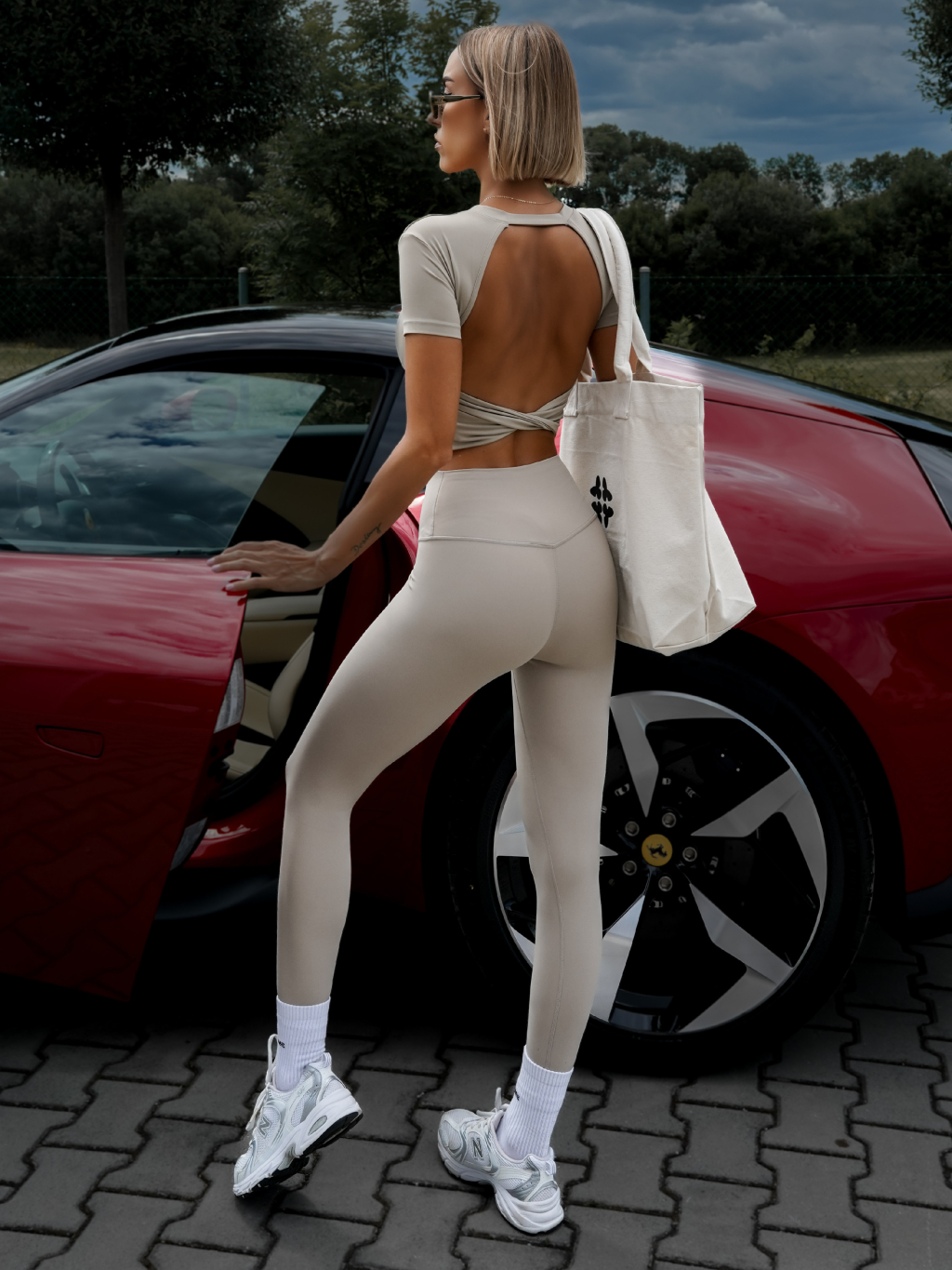 Béžové sportovní tričko BERONY s odhalenými zády