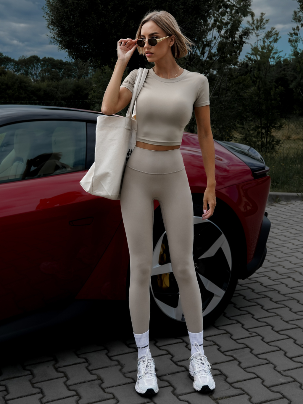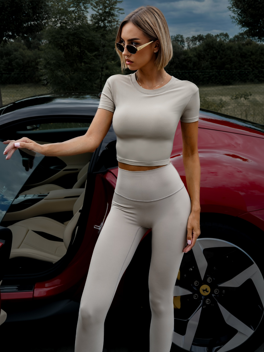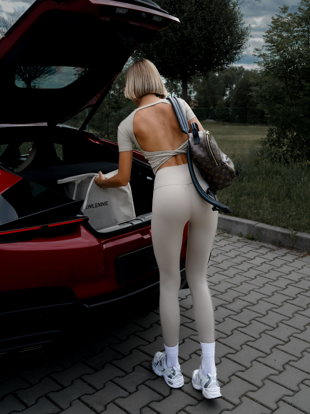 Béžové sportovní tričko BERONY s odhalenými zády
