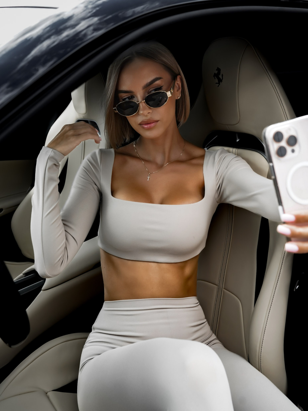 Béžový sportovní top EVORIX s dlouhým rukávem
