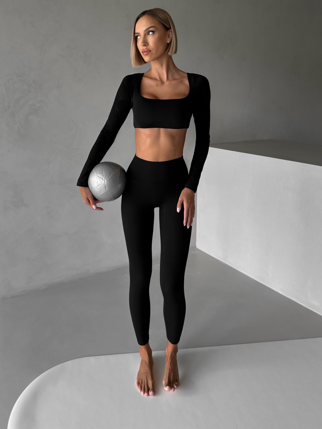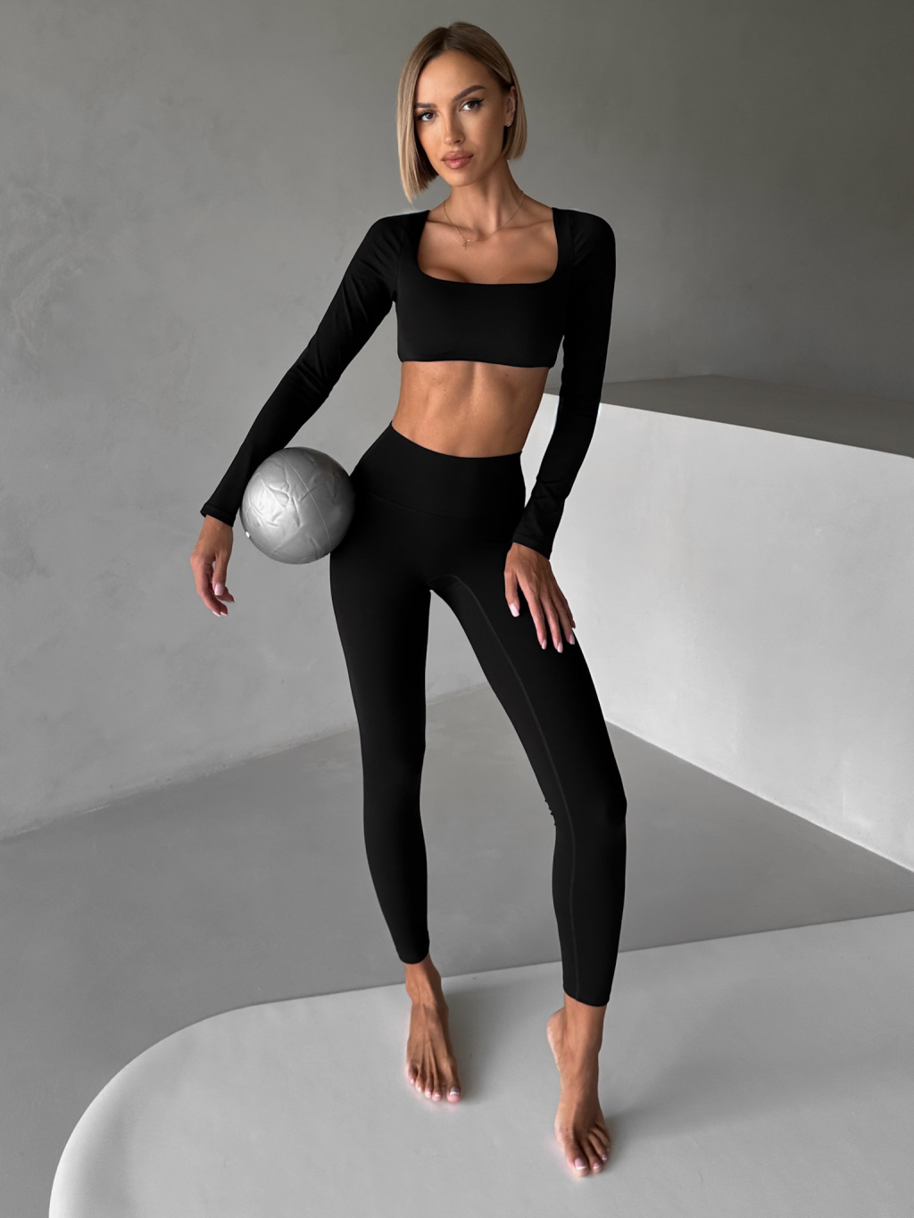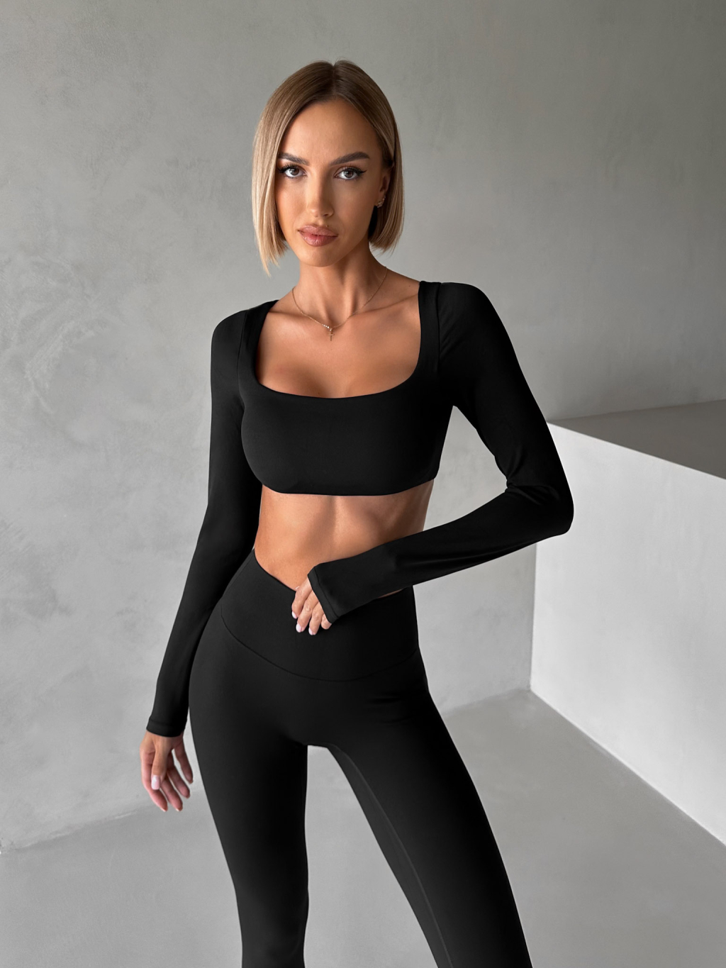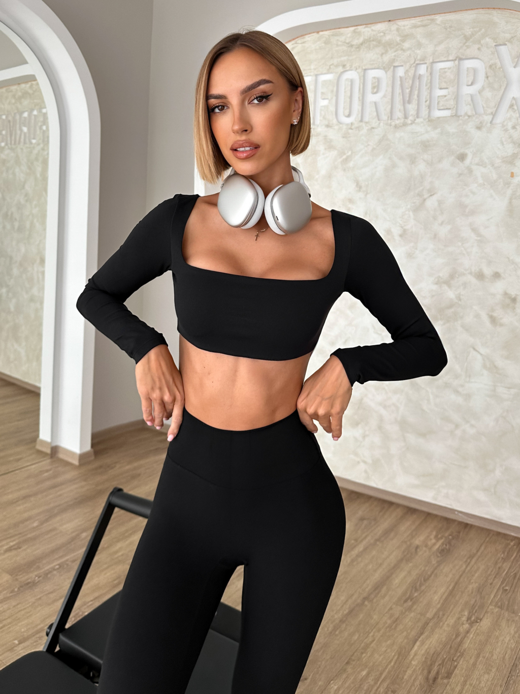 Černý sportovní crop top JIMELA s dlouhým rukávem