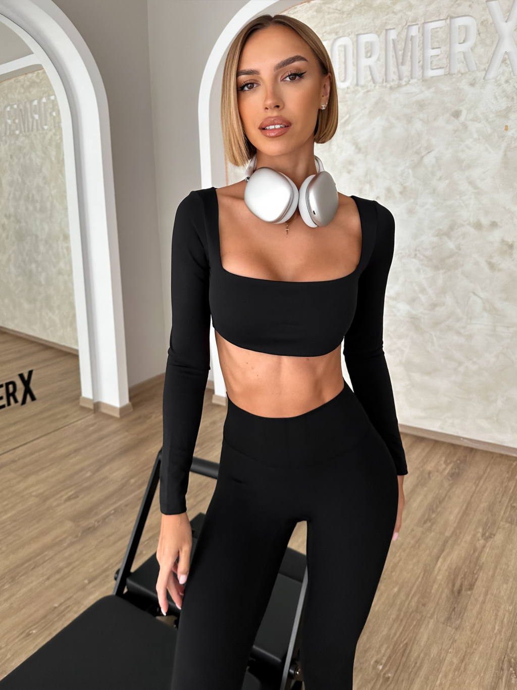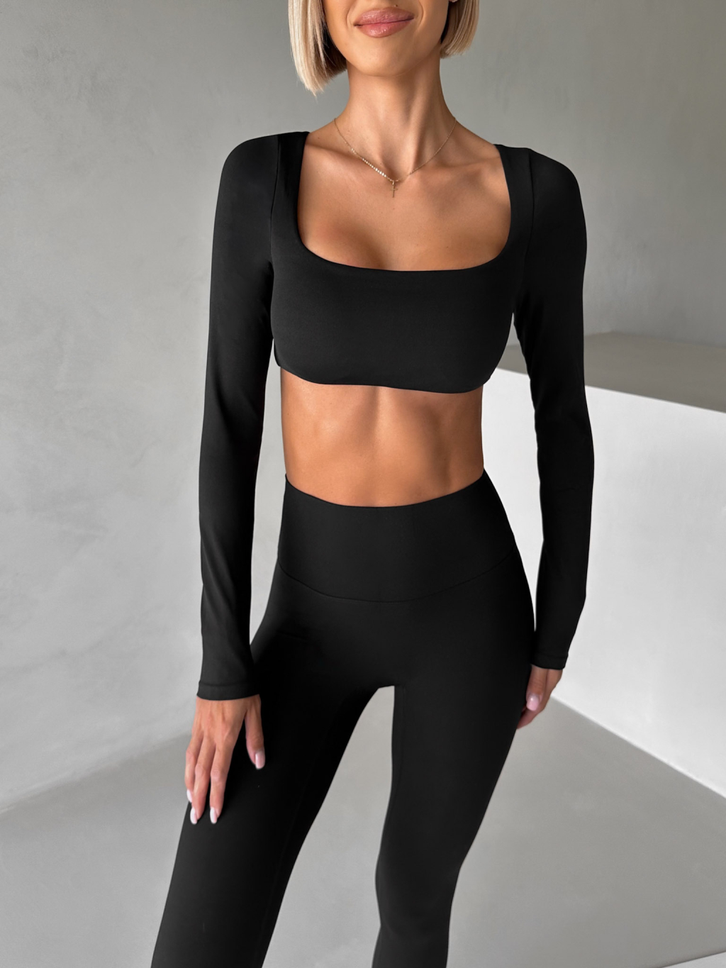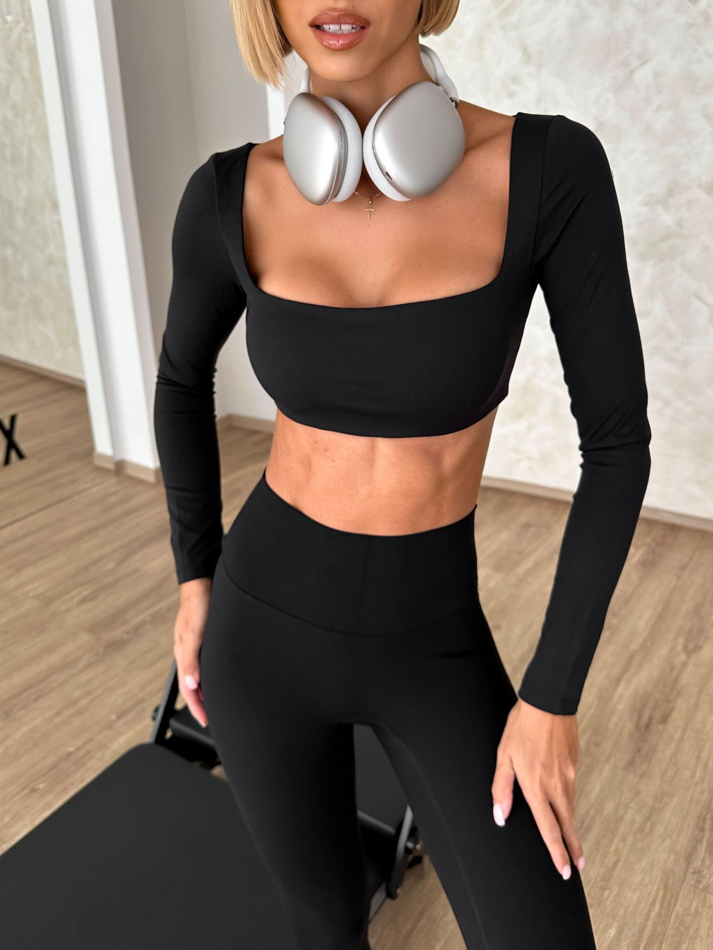 Černý sportovní crop top JIMELA s dlouhým rukávem