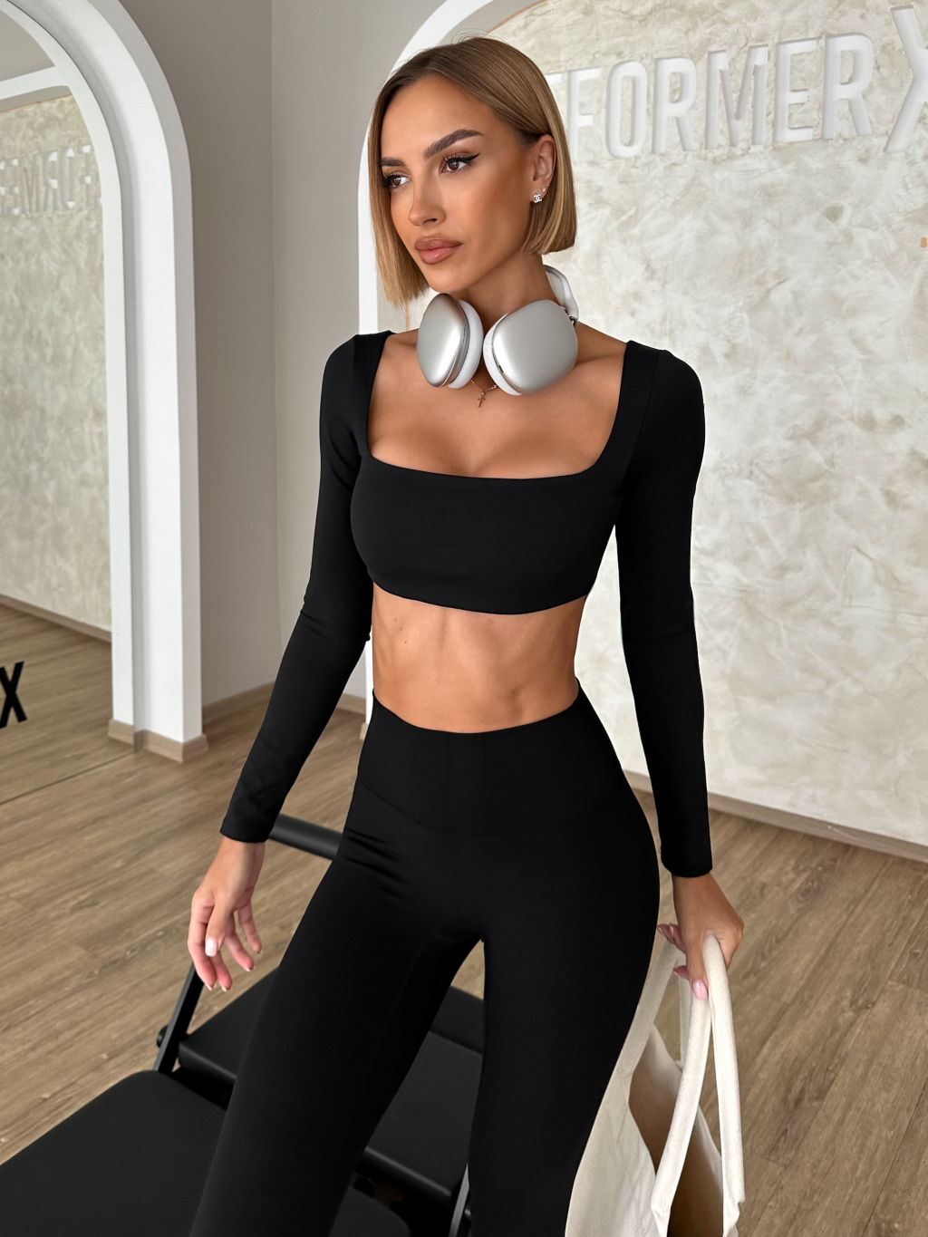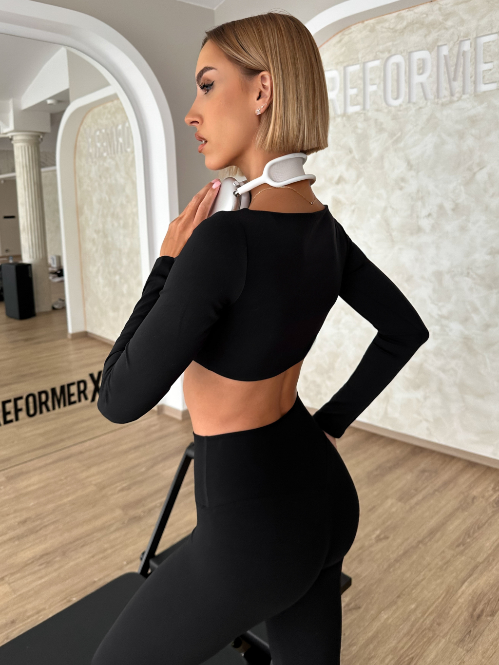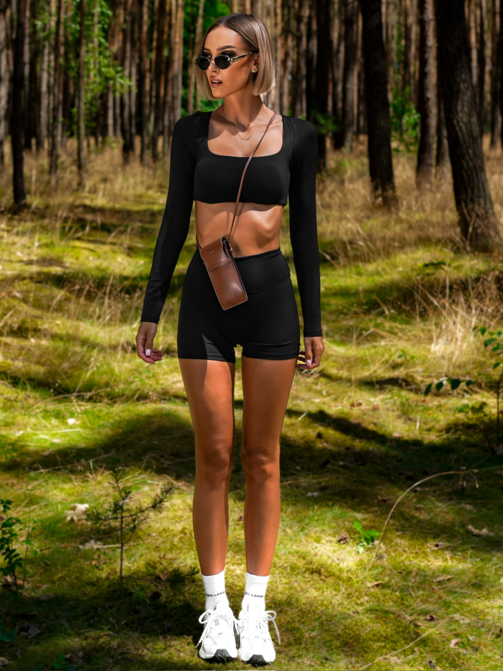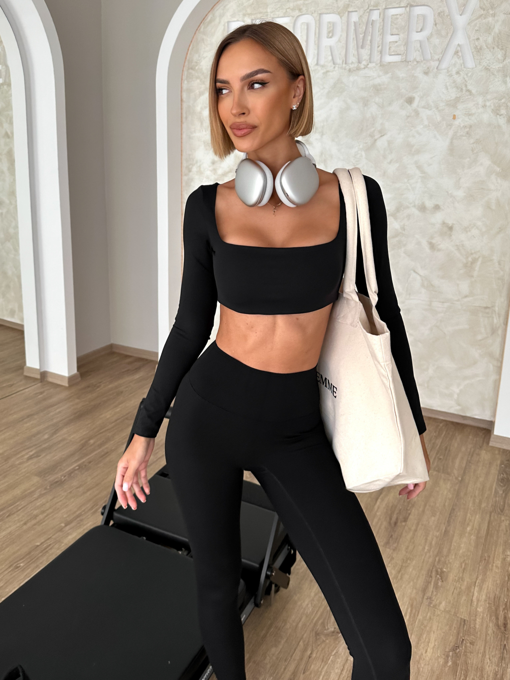 Černý sportovní crop top JIMELA s dlouhým rukávem