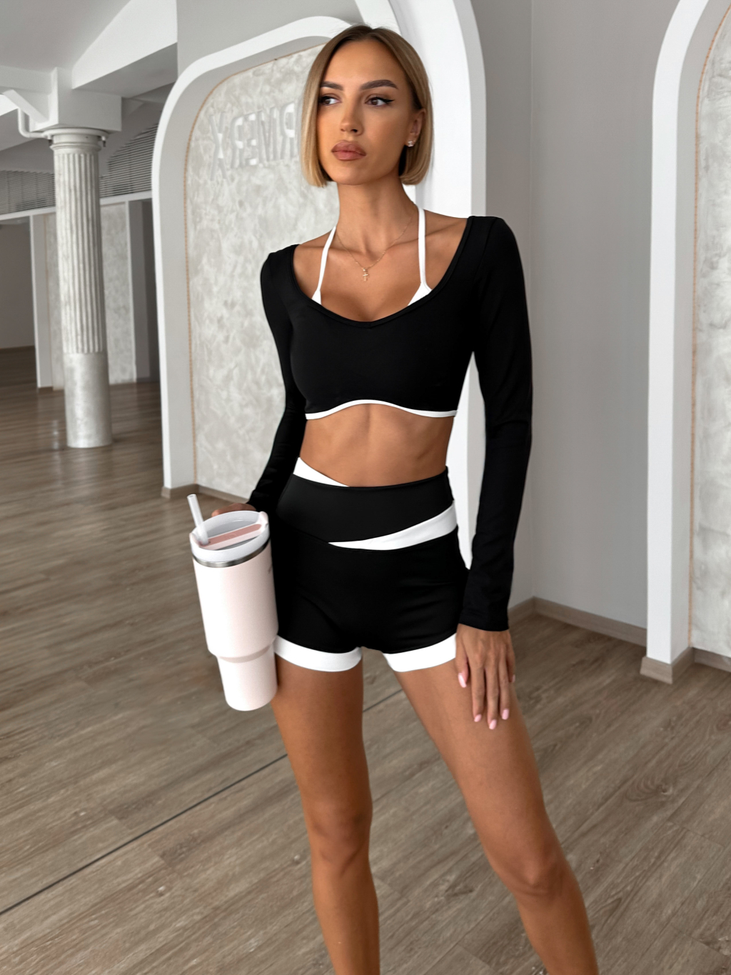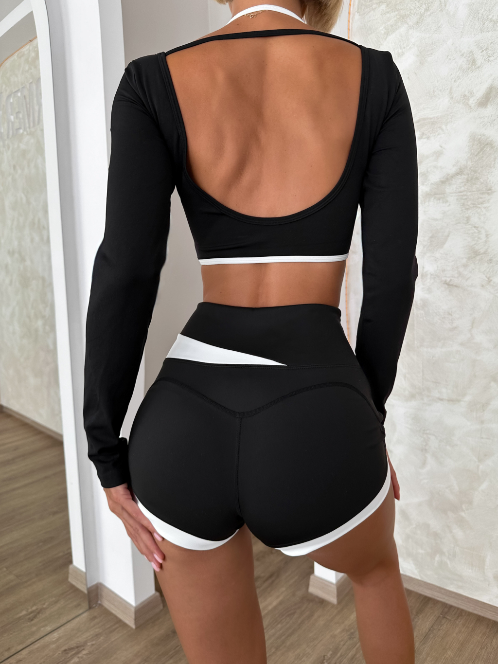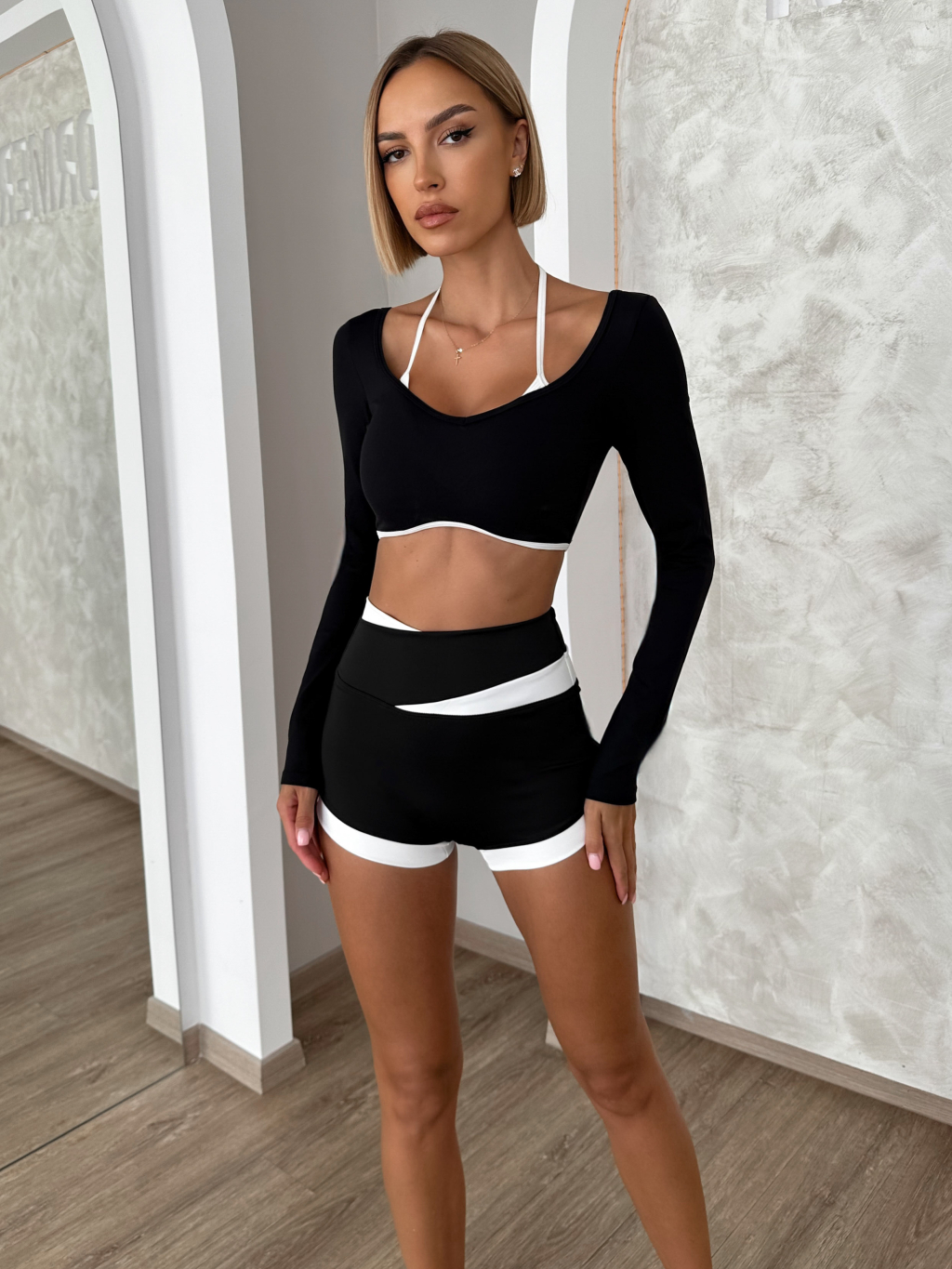 Černý sportovní jóga top RONELY s dlouhým rukávem