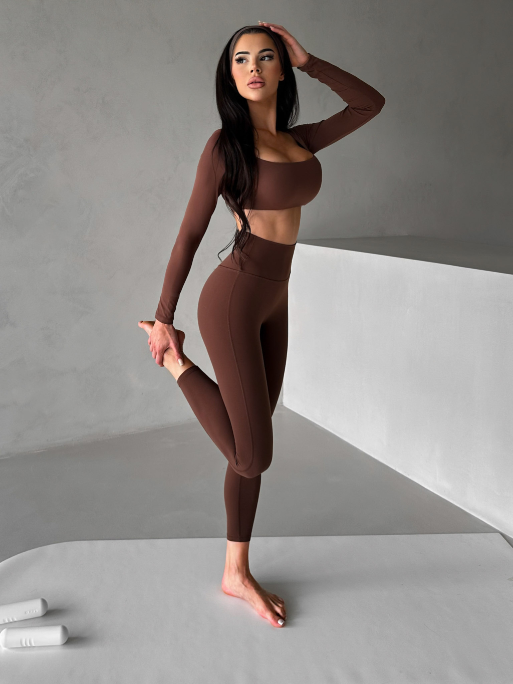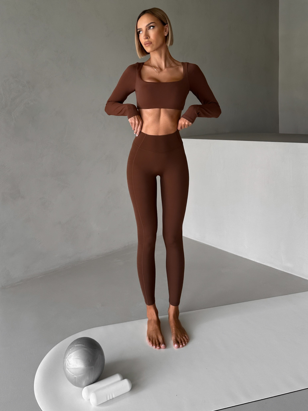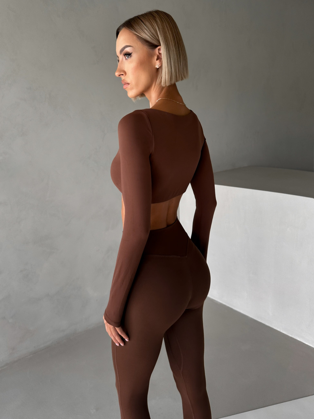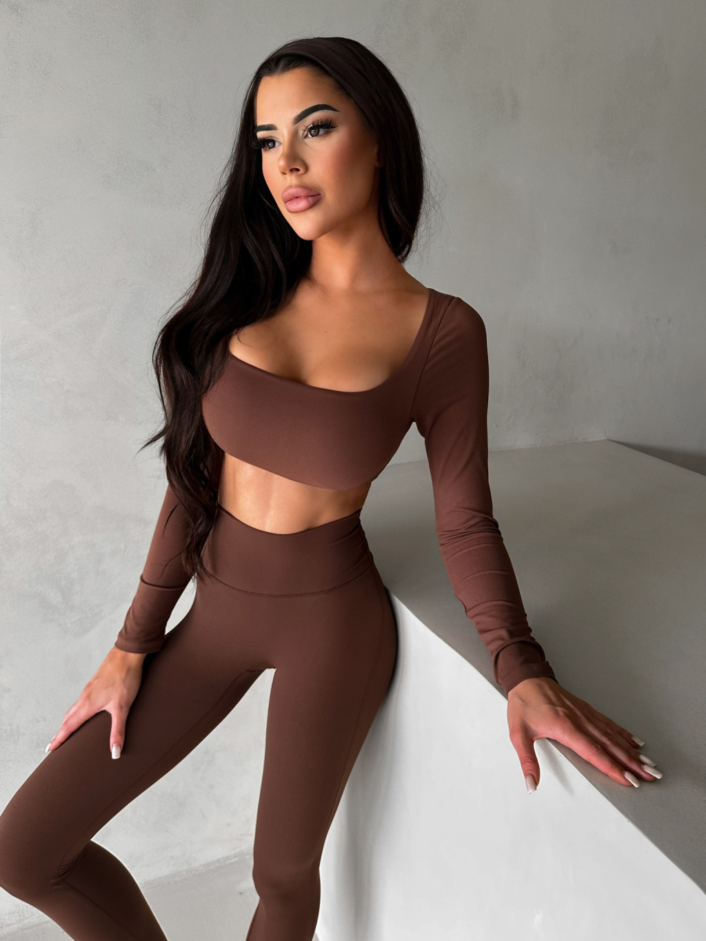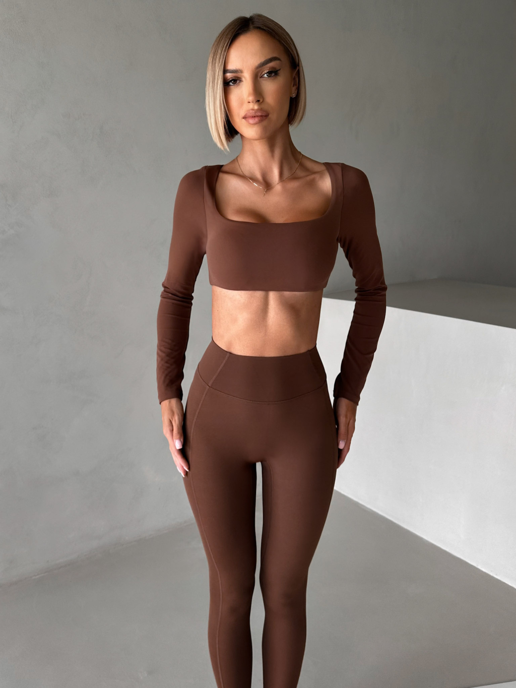 Hnědý jóga krátký top JIMELA s dlouhým rukávem