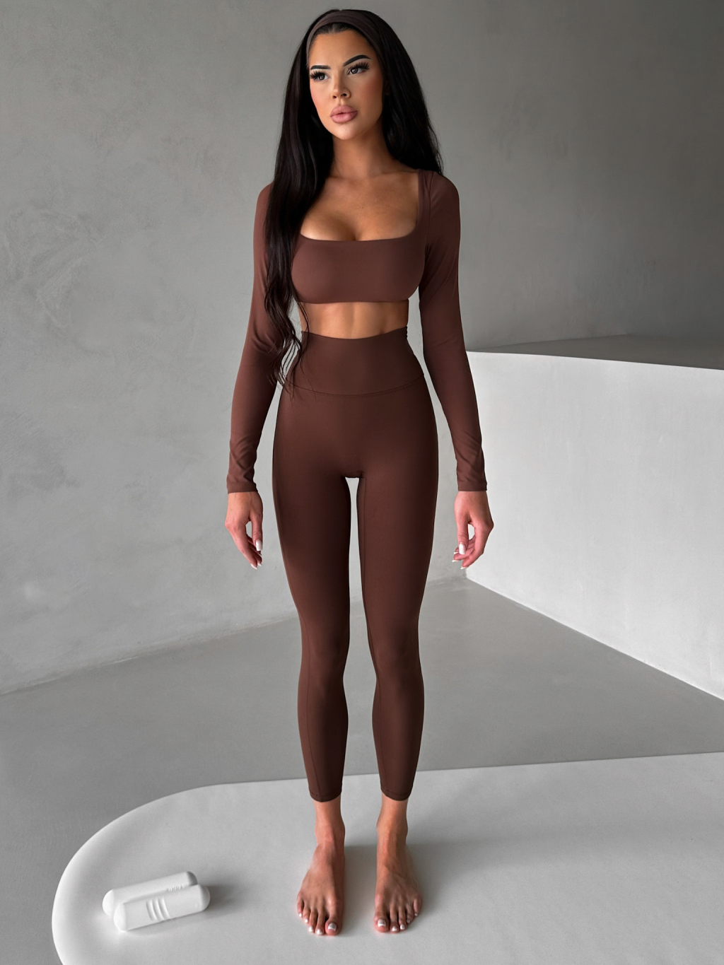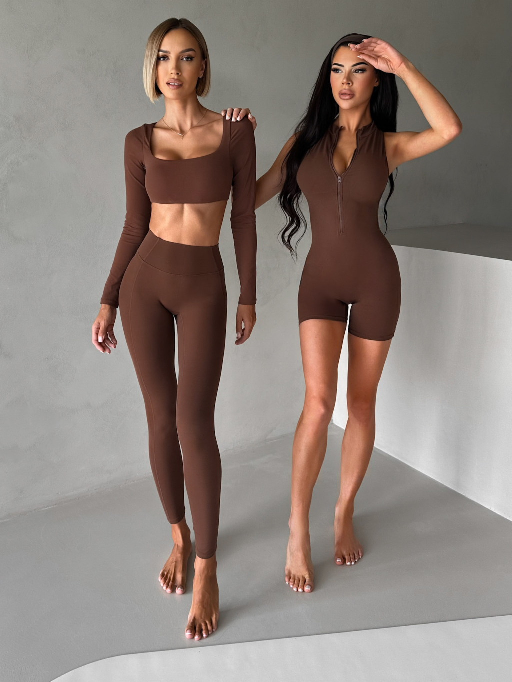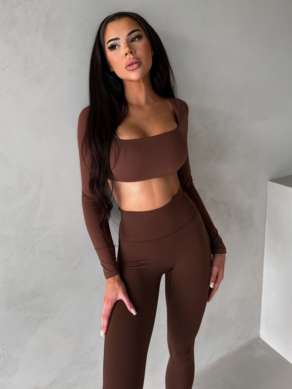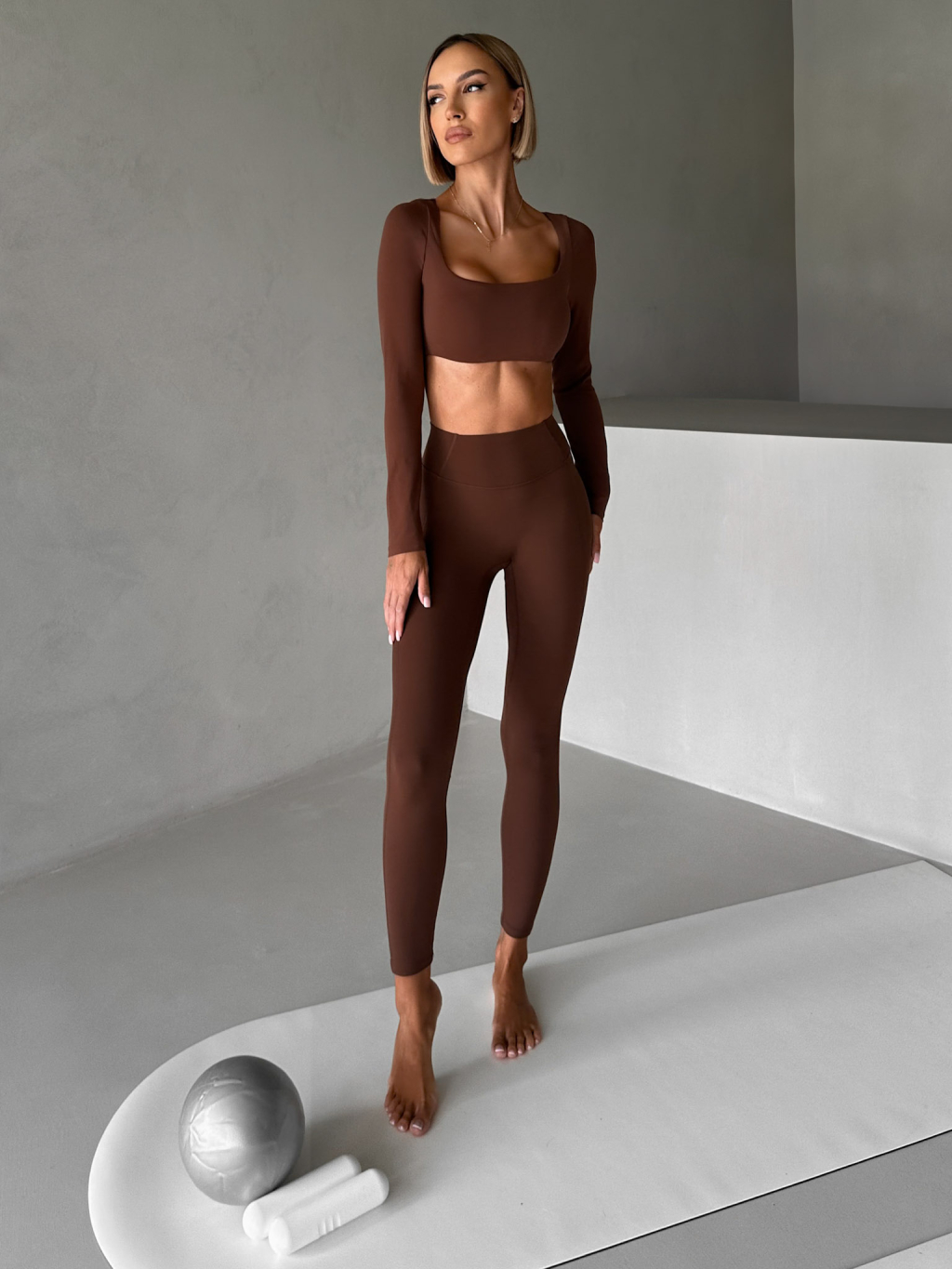 Hnědý jóga krátký top JIMELA s dlouhým rukávem