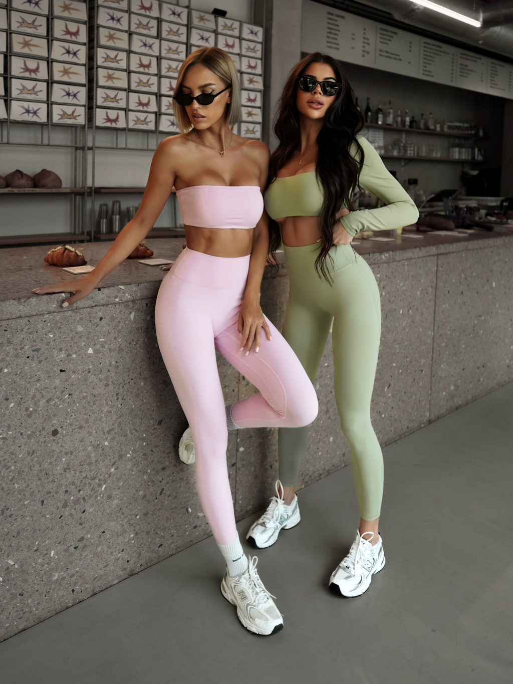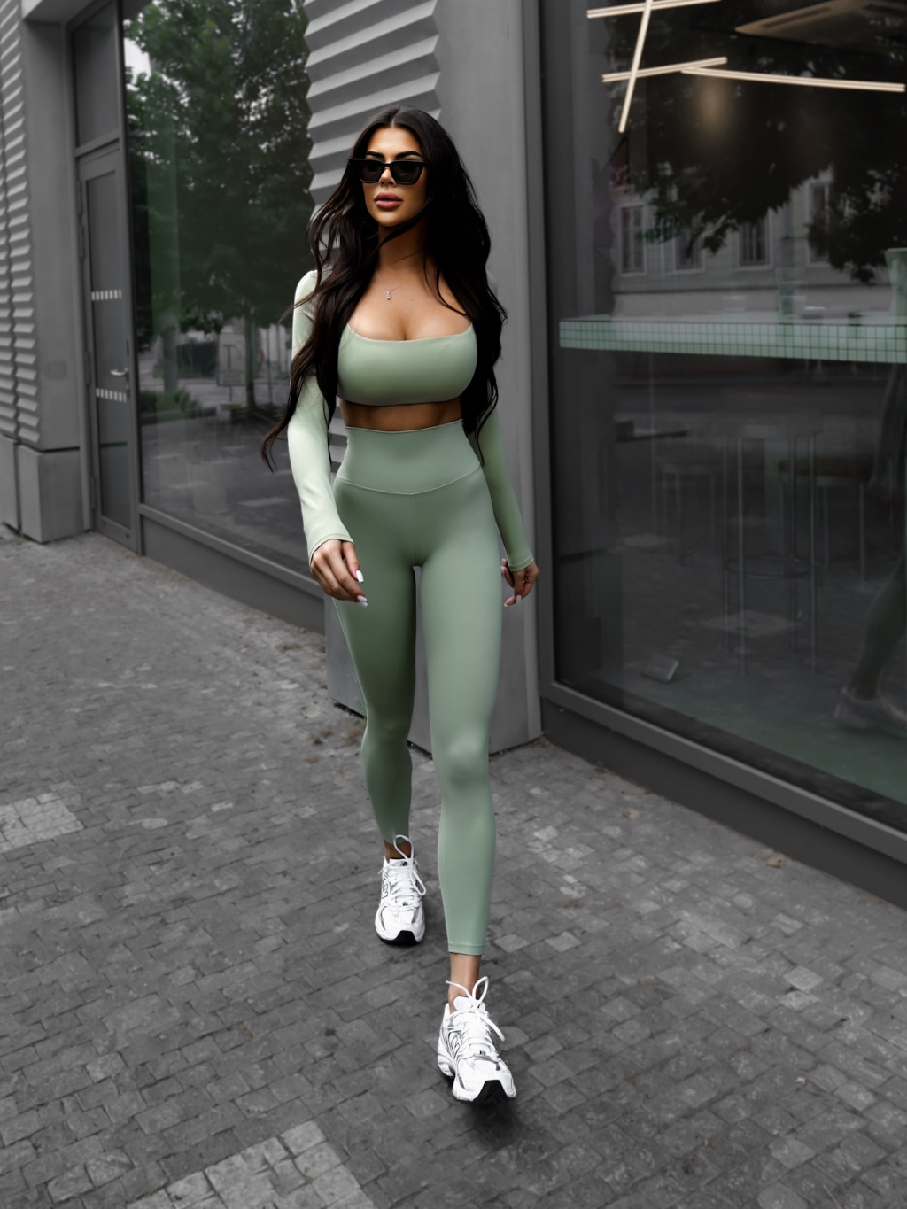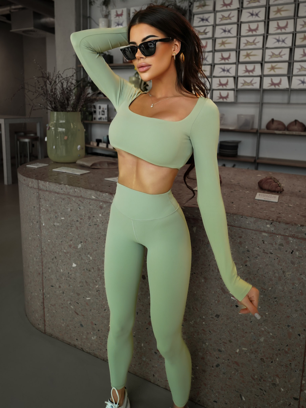 Pistáciový sportovní top JIMELA s dlouhým rukávem