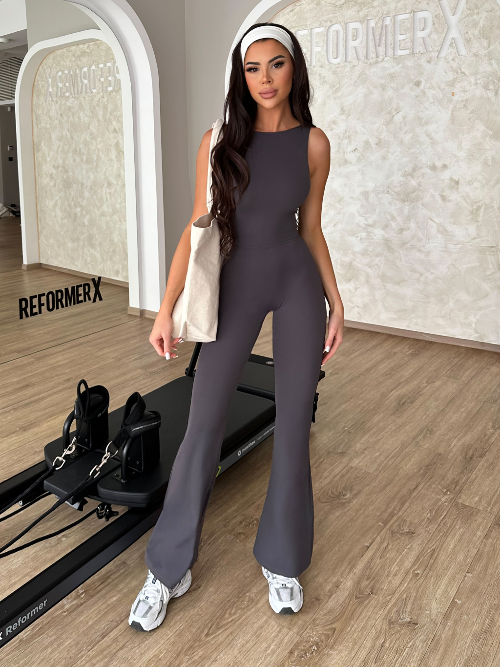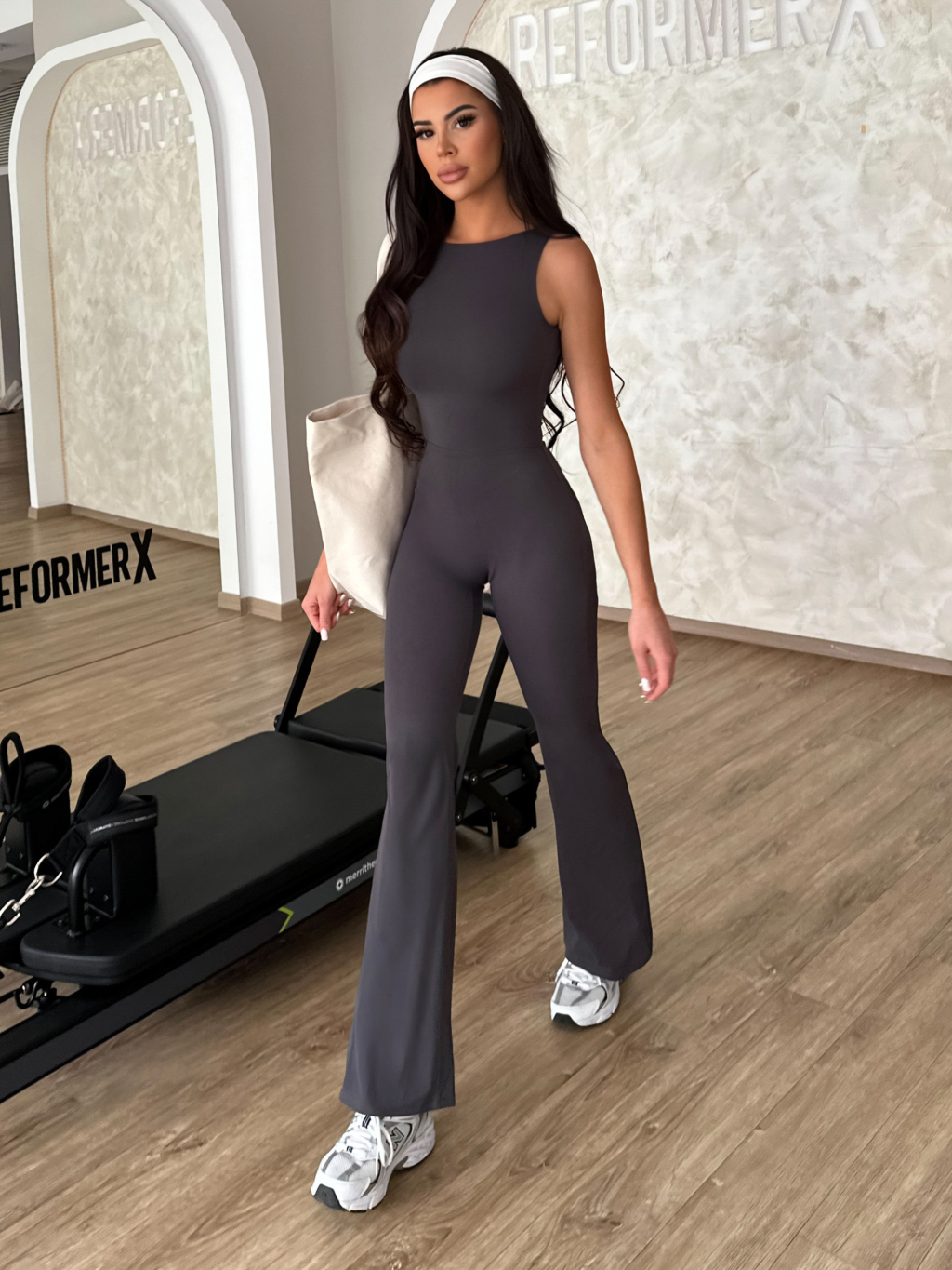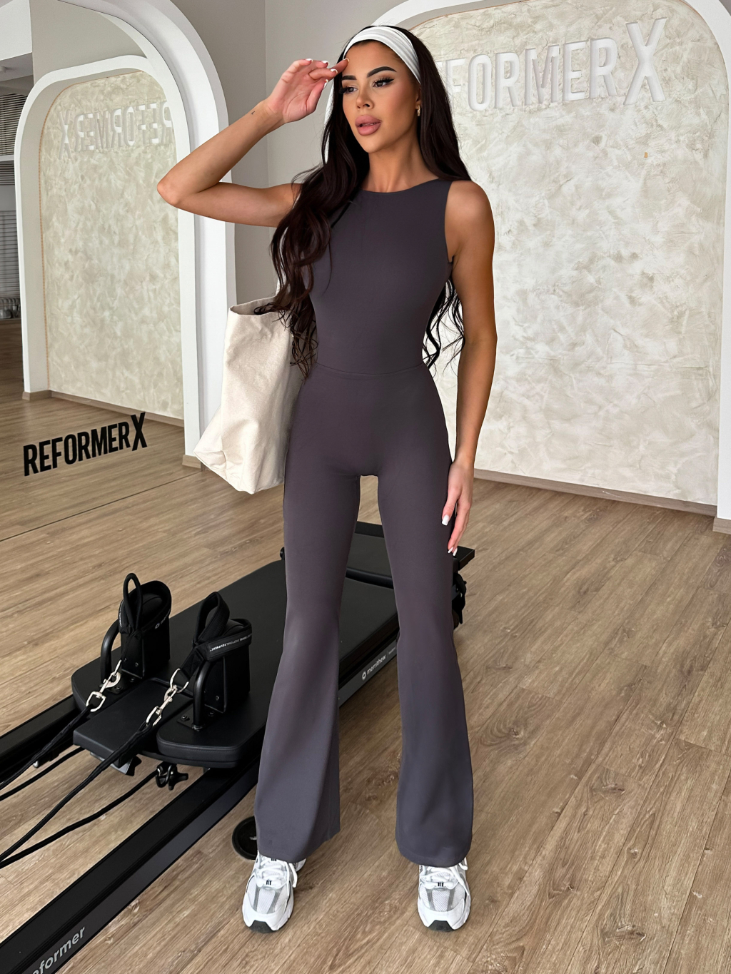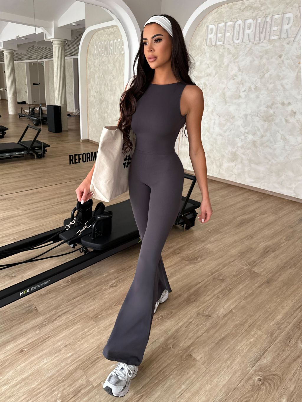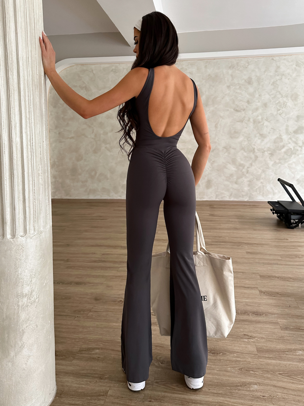 Šedý tvarující push up sportovní overal ROVIKA