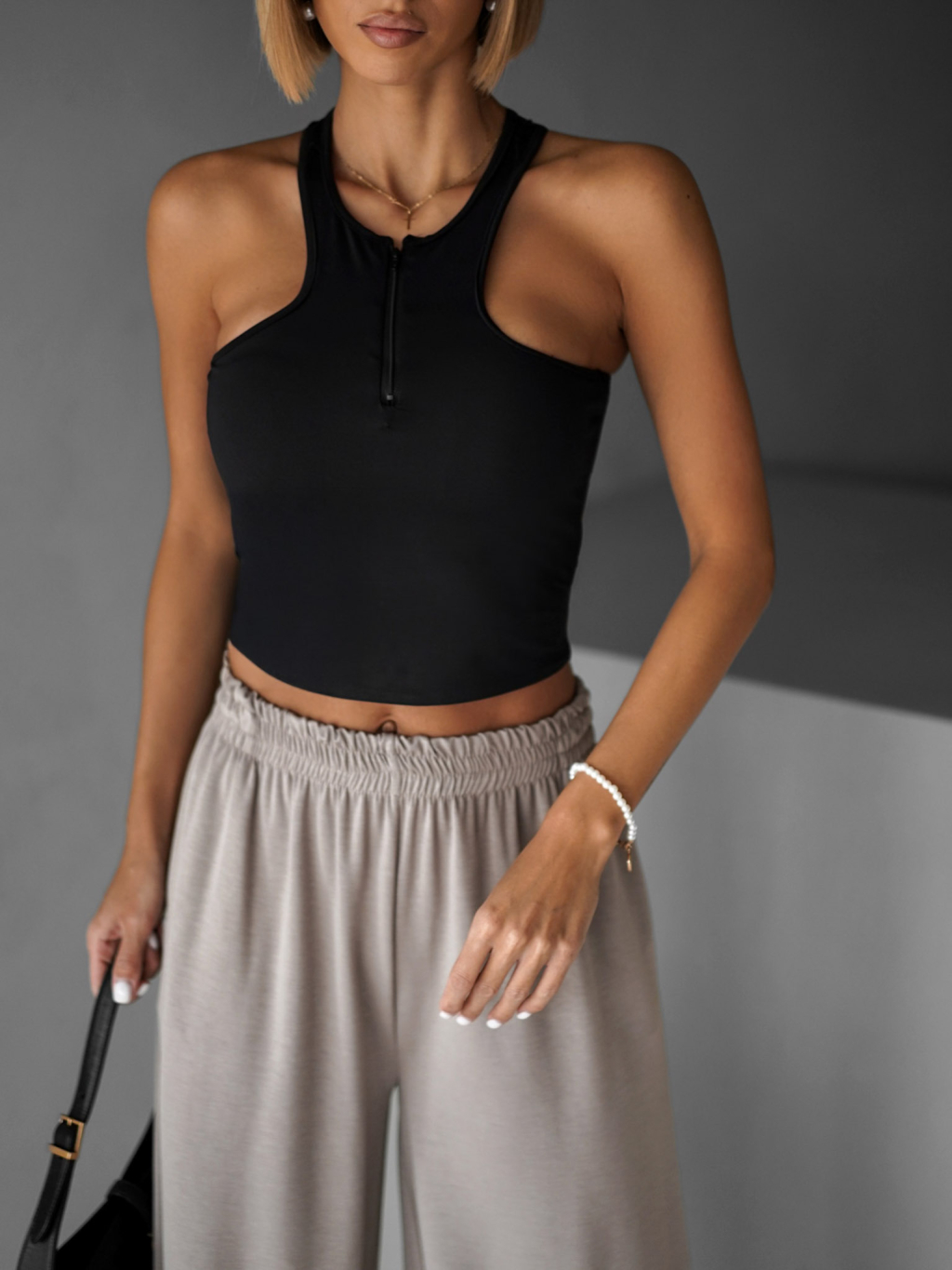 Černý sportovní crop top ALADIN na zip