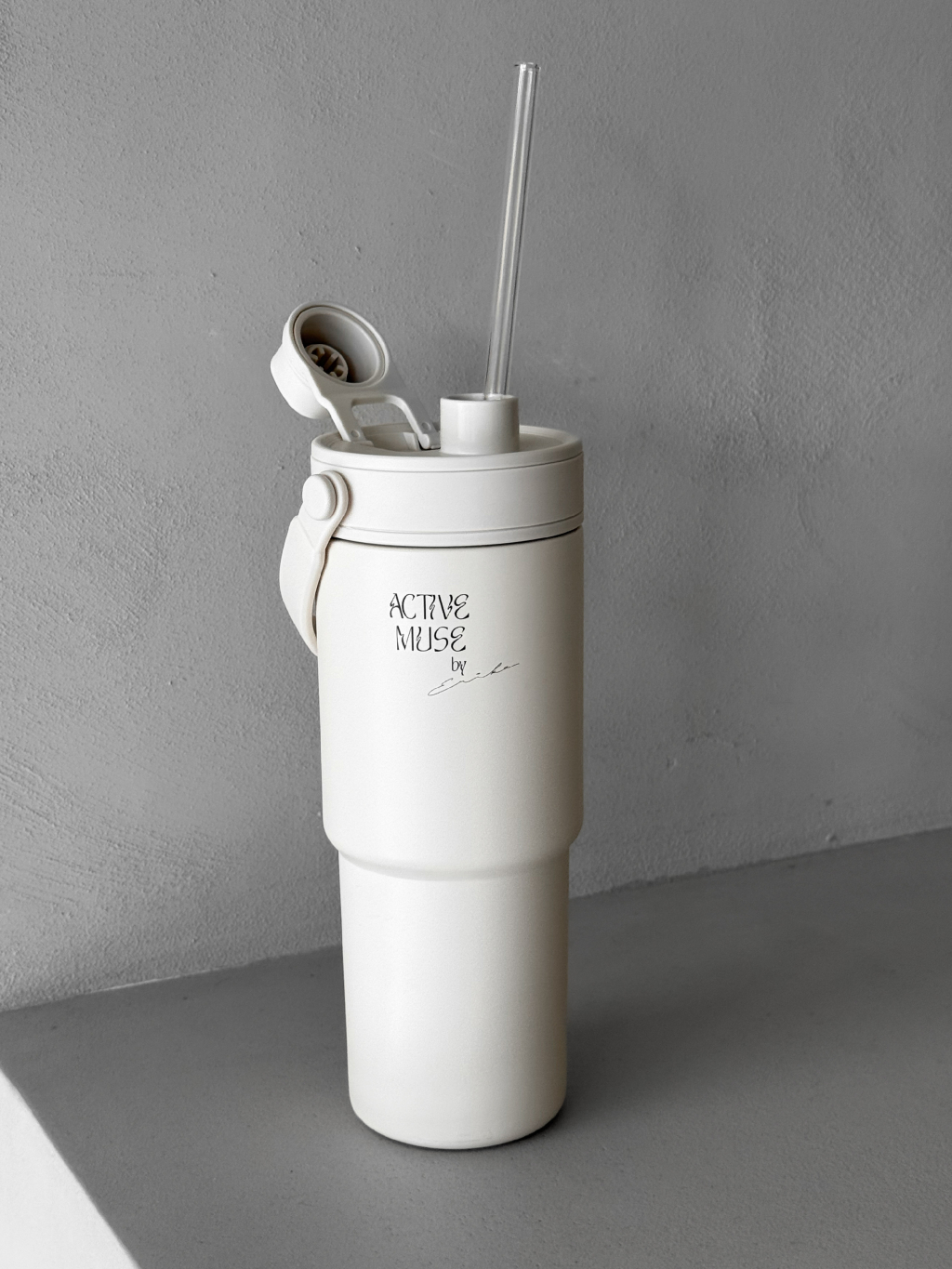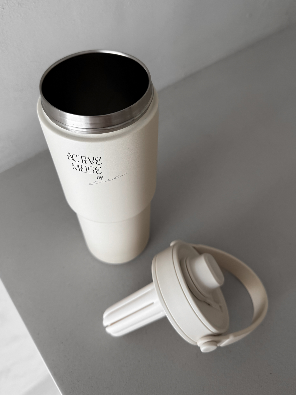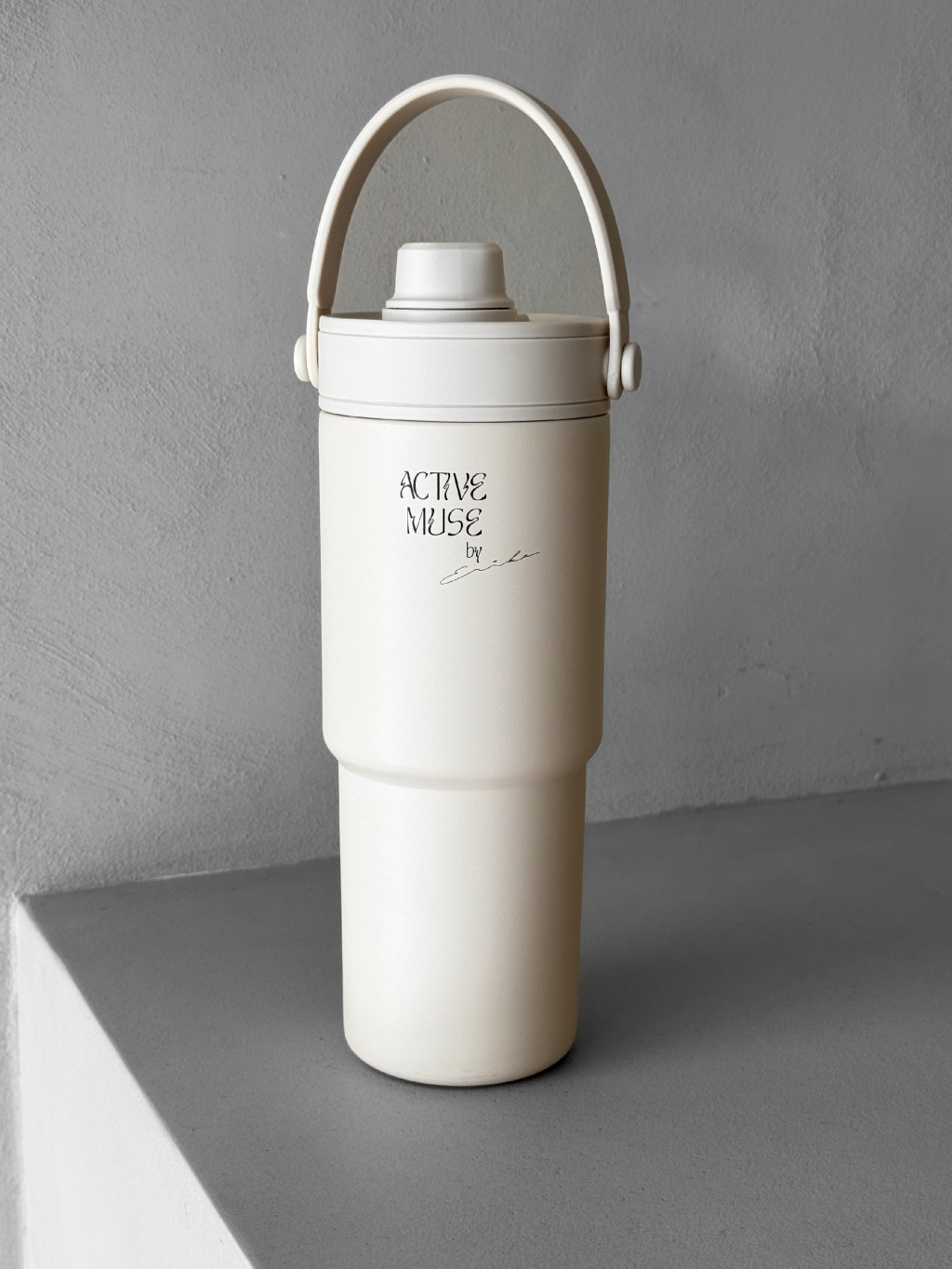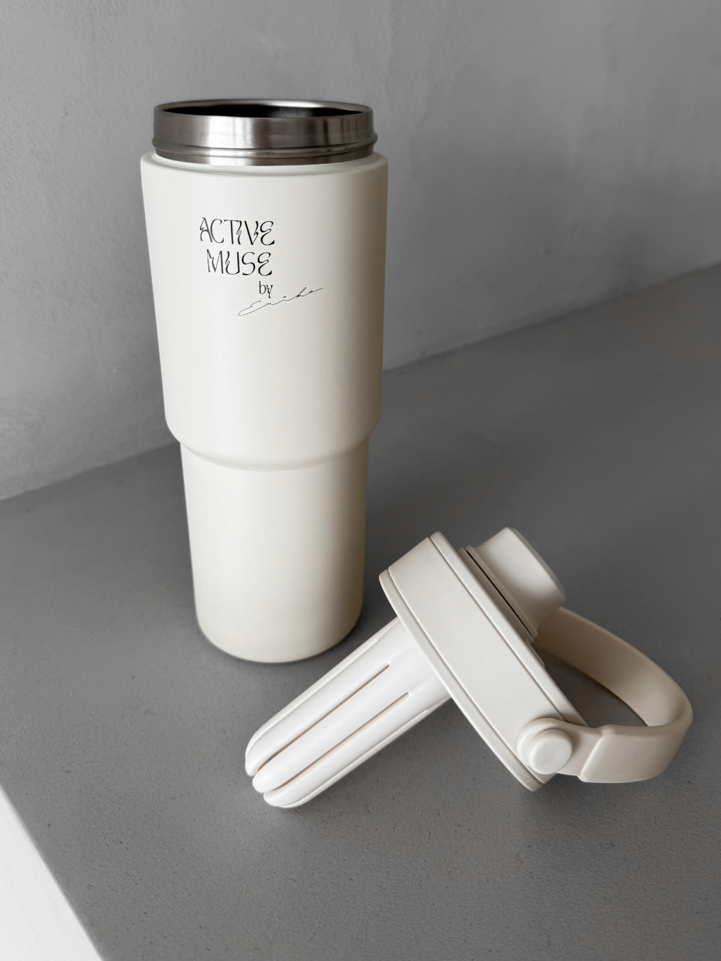 Lehká, odolná a dokonale těsnící termoska s brčkem a praktickým ouškem. Díky bezpečnému víčku nevyteče ani kapka, takže ji můžeš bez obav přenášet i v tašce. Udrží nápoj studený nebo teplý i více jak 10 hodin. Matný povrch v elegantní krémové barvě ladí s celou kolekcí ACTIVE MUSE a dodává lahvi čistý, sportovní vzhled.