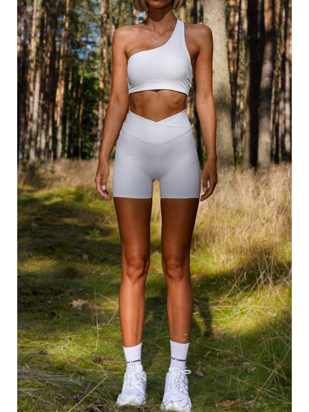Bílé sportovní push up žebrované kraťasy PEROLA