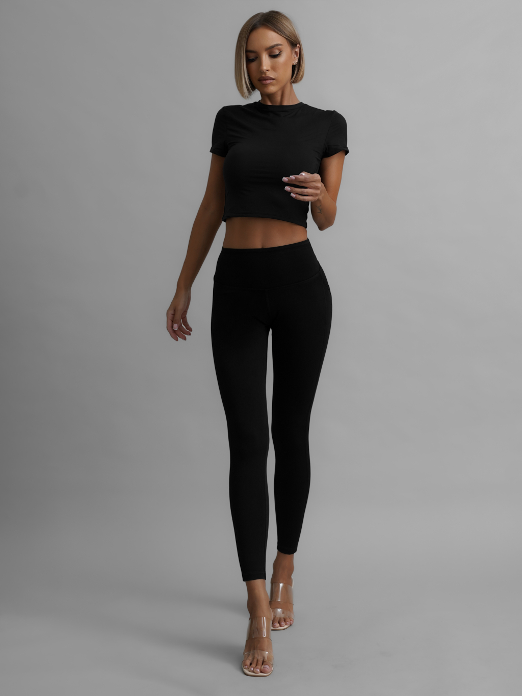 Černé tvarující push up legíny AWARYT s kapsami
