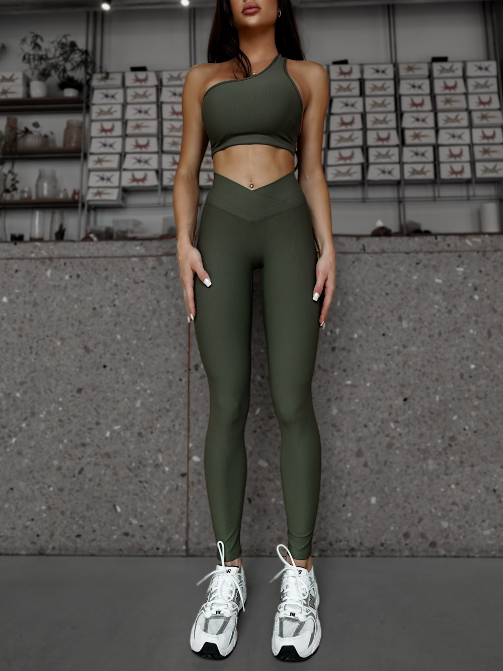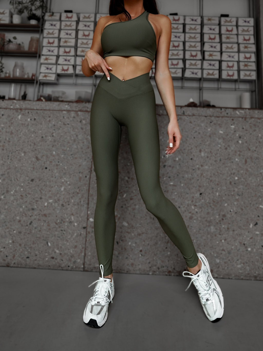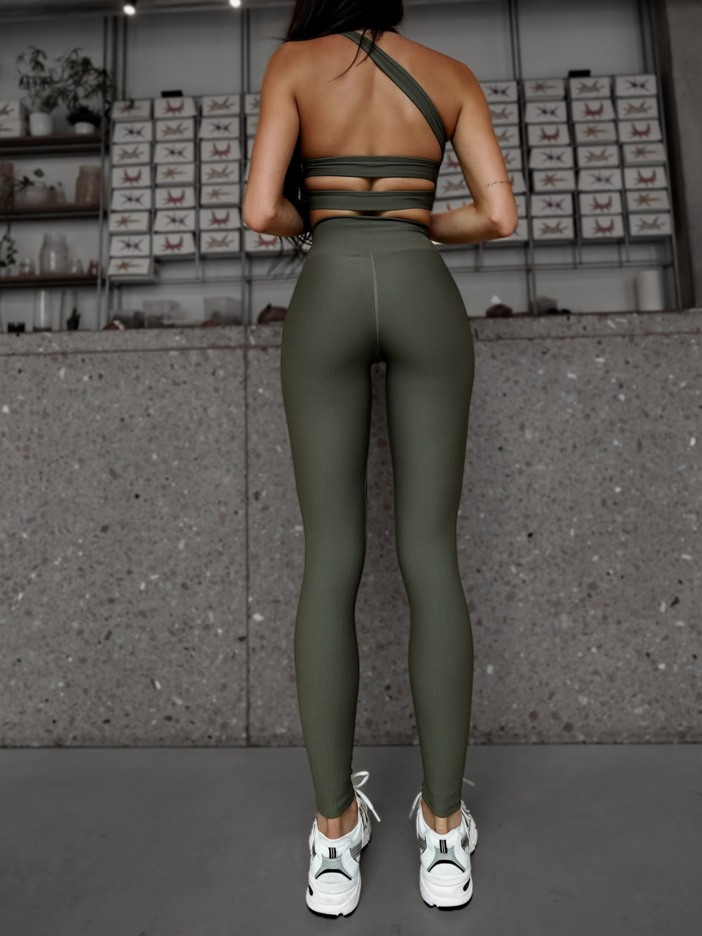 Khaki sportovní dlouhé žebrované legíny TONKA