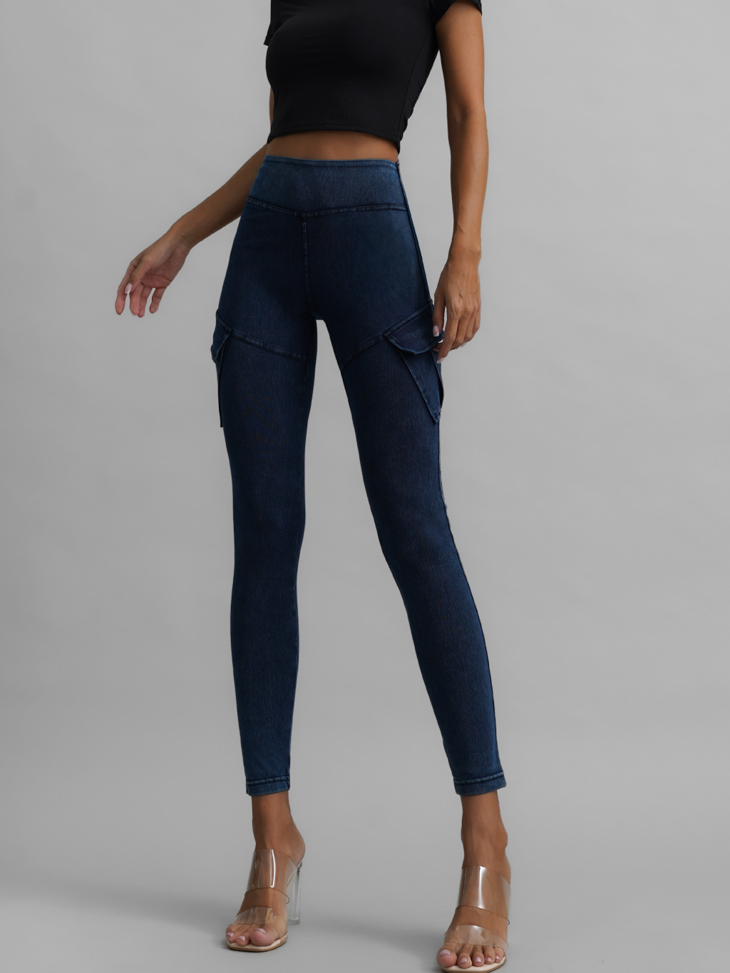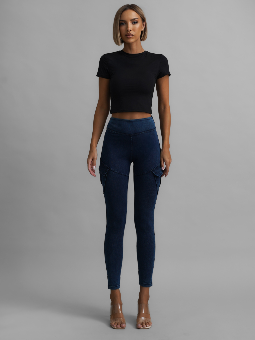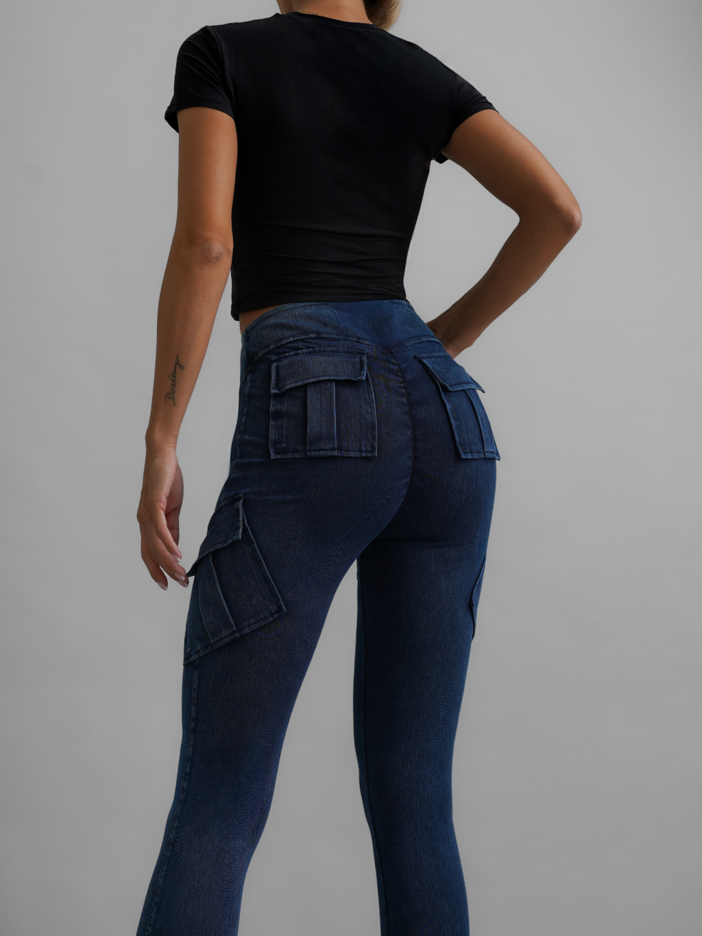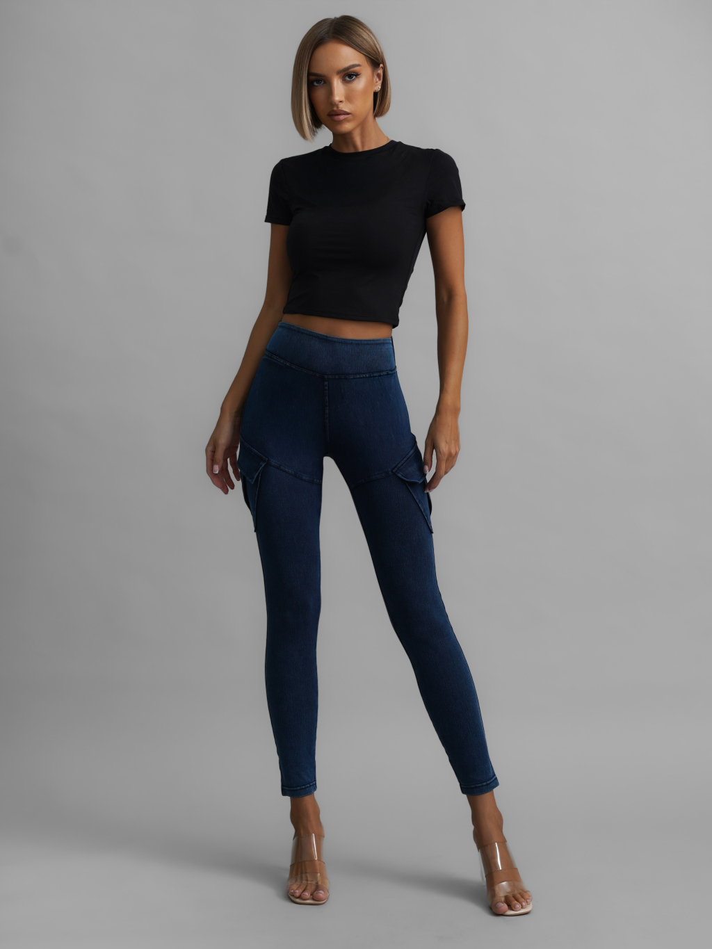 Modré tvarující legíny ERONEL s push-up efektem a kapsami