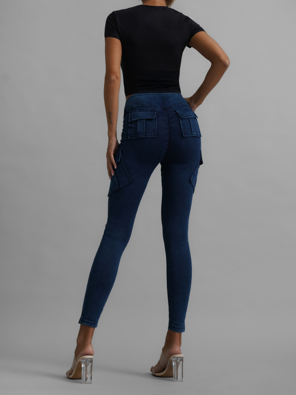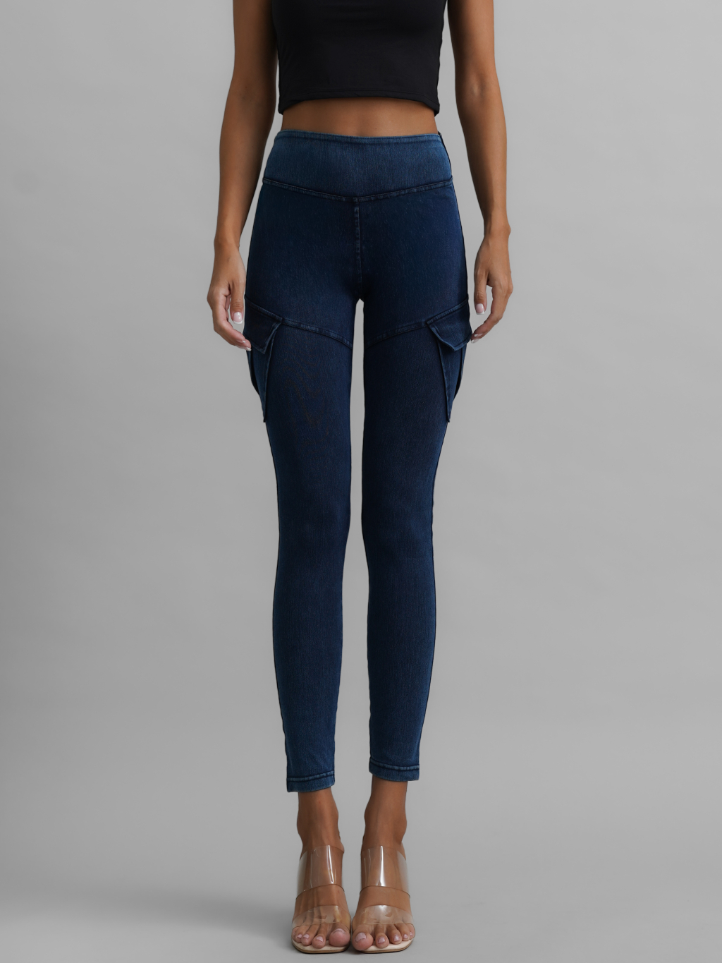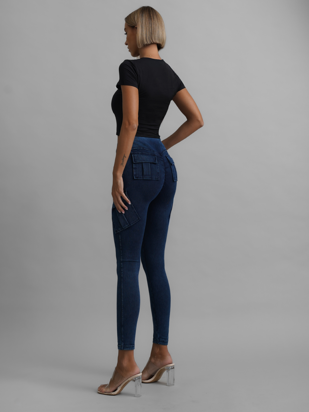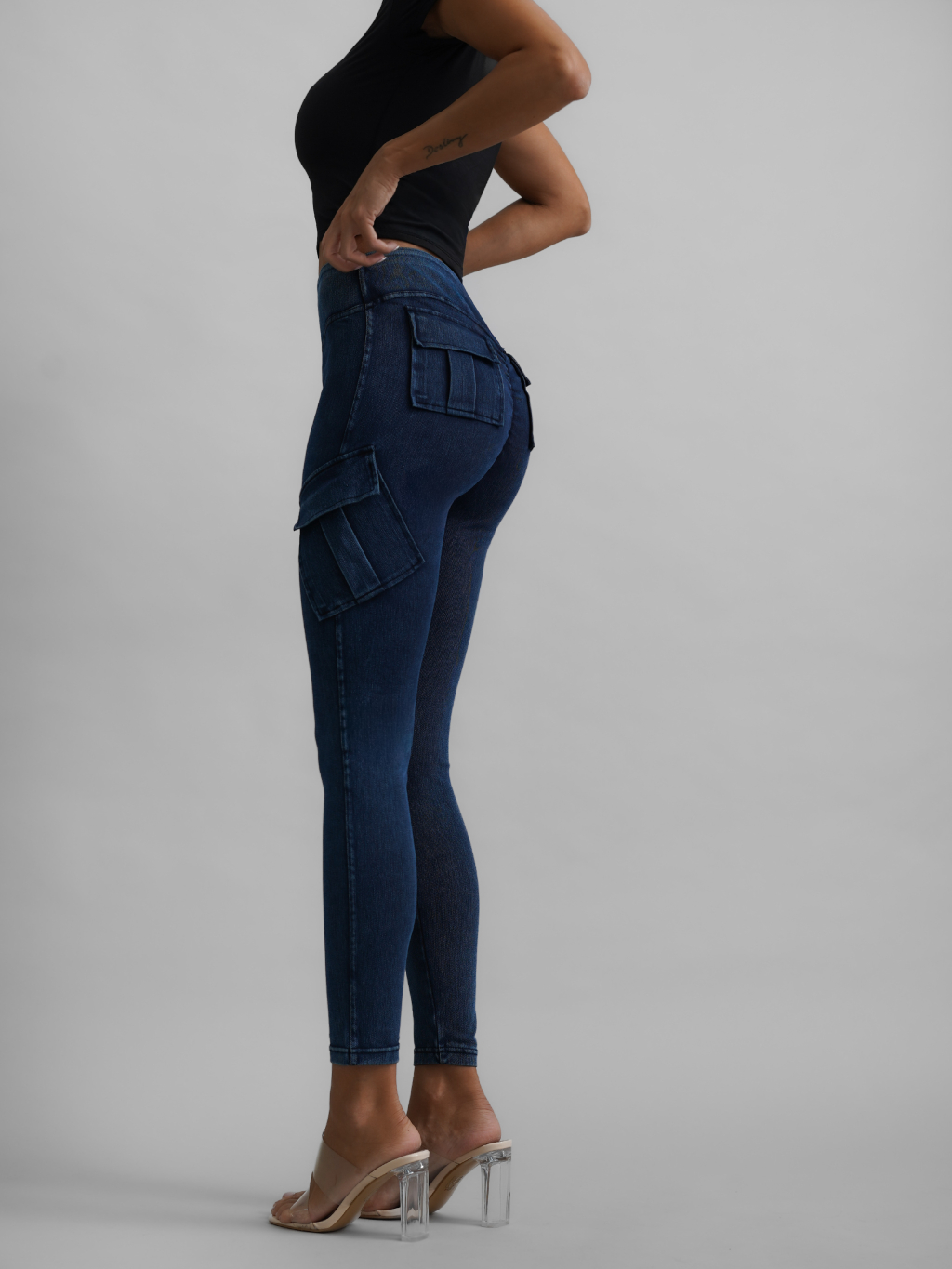 Modré tvarující legíny ERONEL s push-up efektem a kapsami