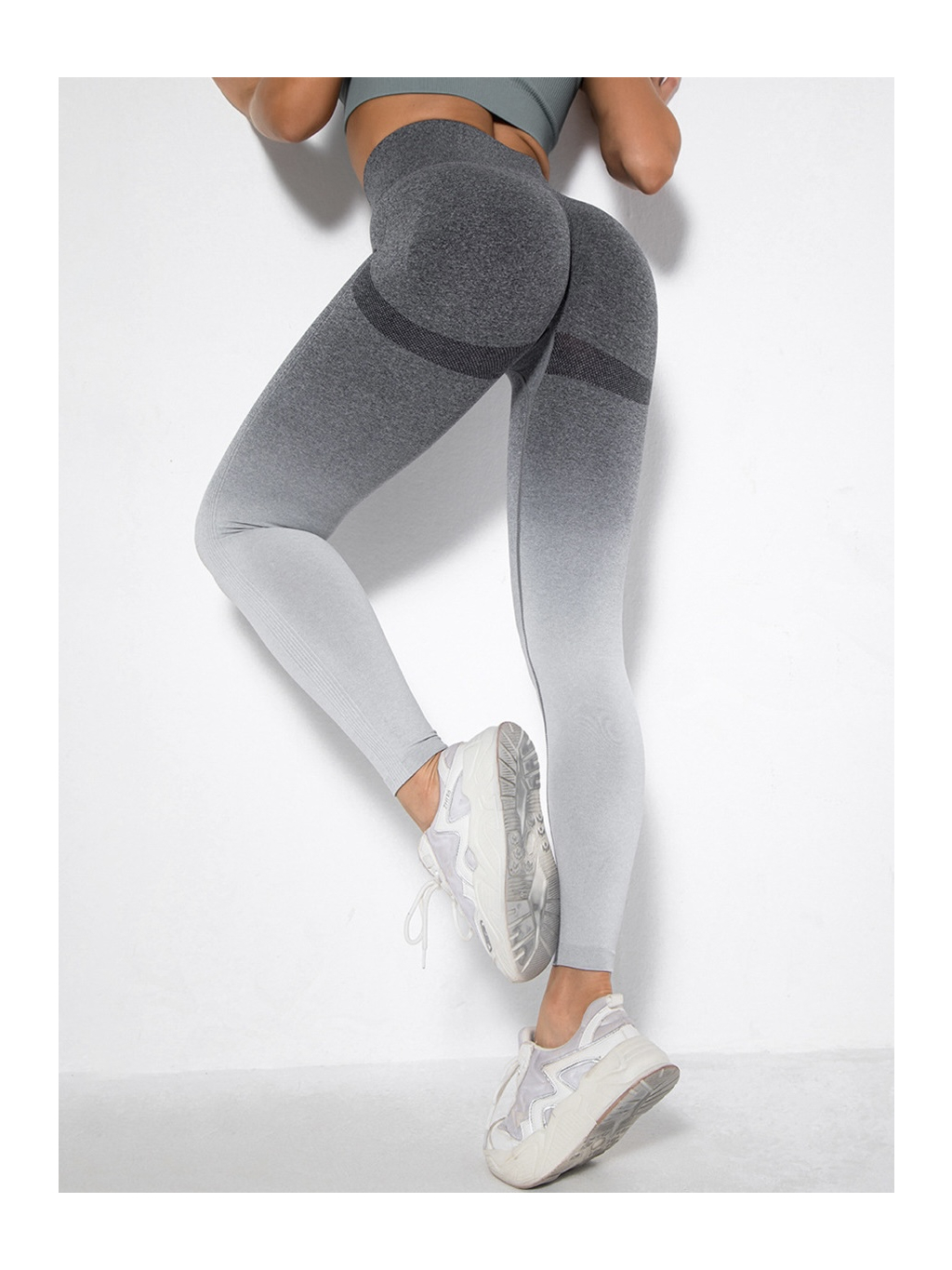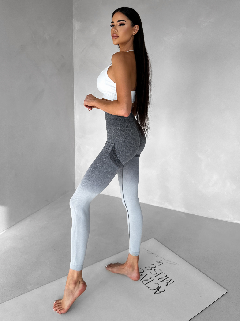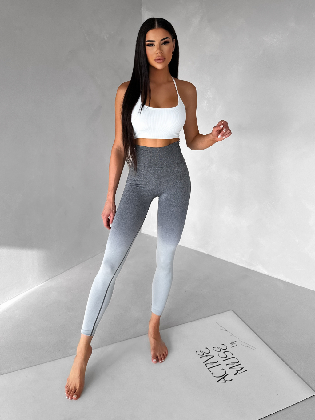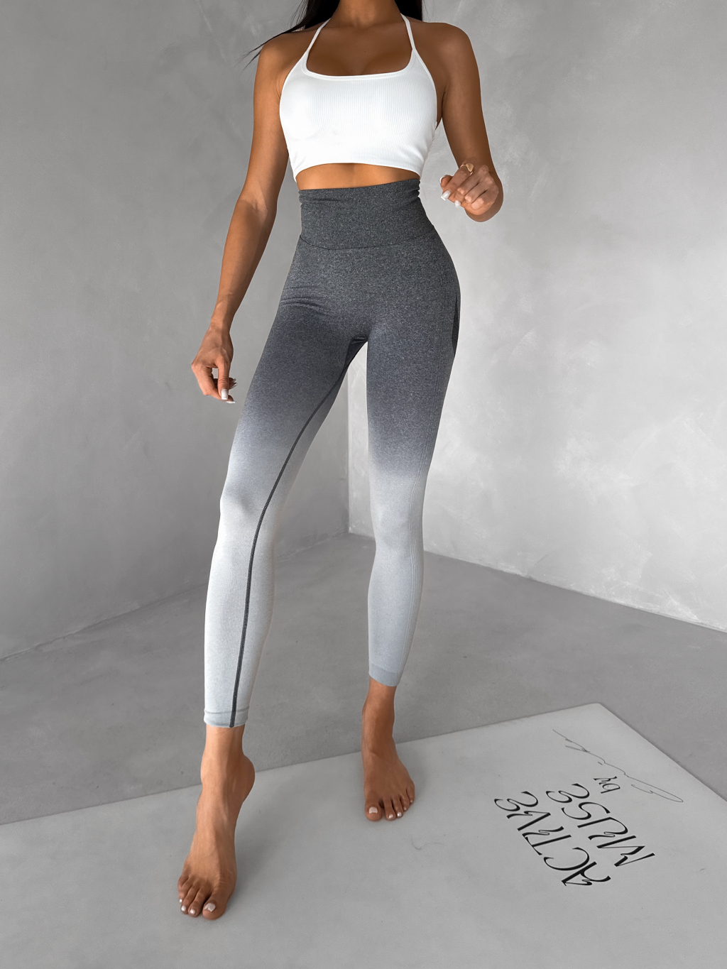 Šedé sportovní ombré legíny HIVANE s vysokým pasem