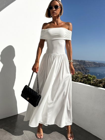 Bílé dlouhé šaty DURIAN s holými rameny