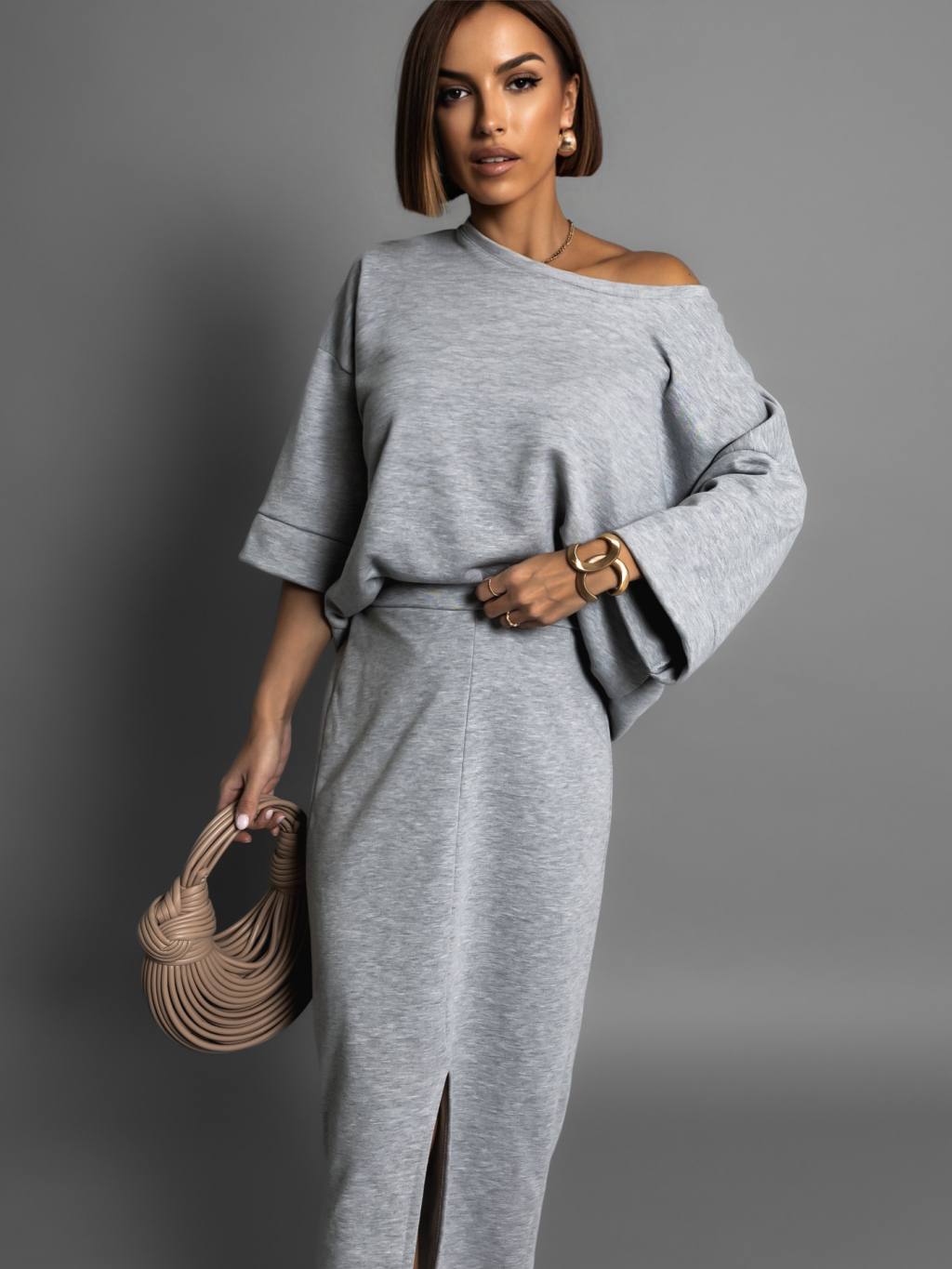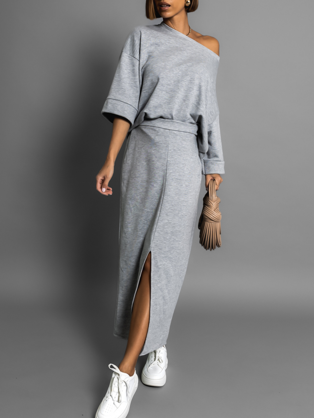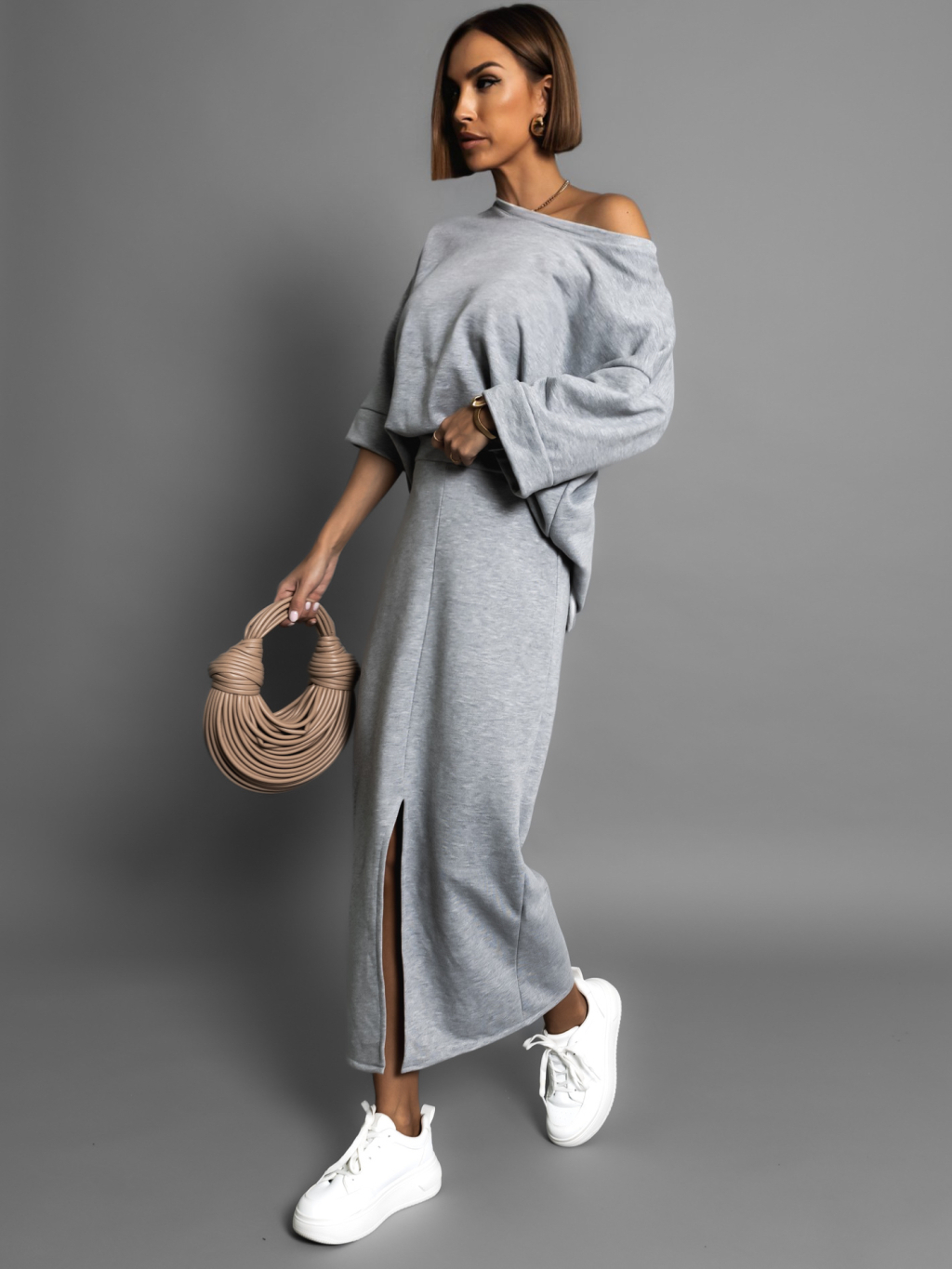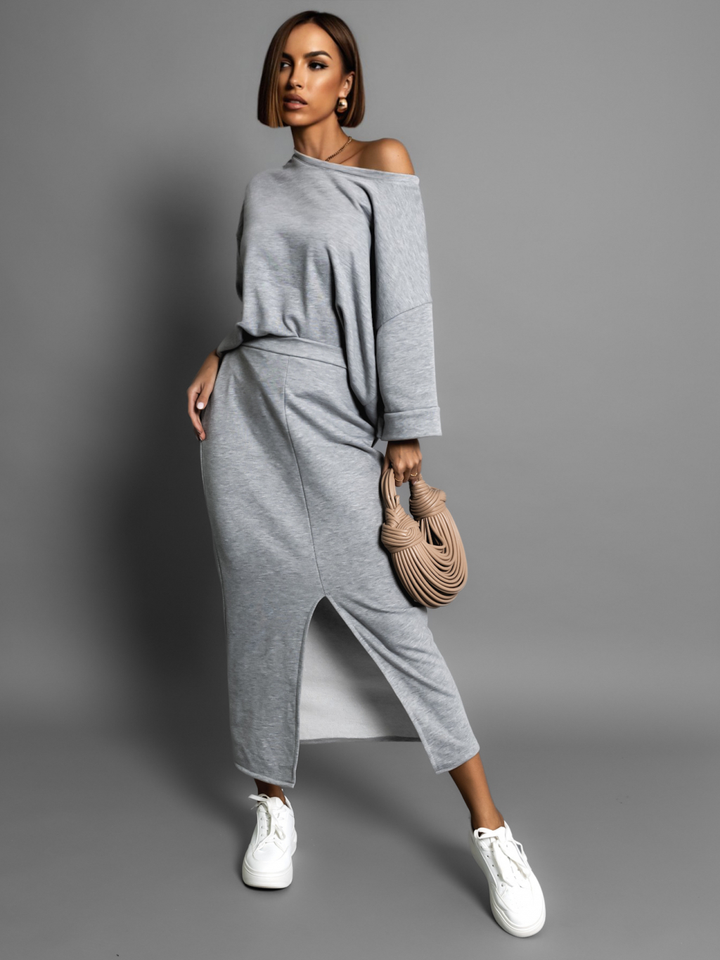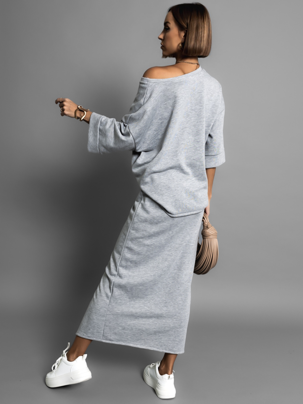 Šedý bavlněný teplákový komplet ROKASEL