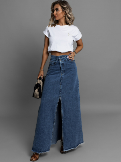 Modrá džínová dlouhá sukně JANDRIS s rozparkem