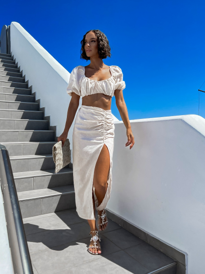Béžový 100% lněný komplet FEMFUEL se sukní