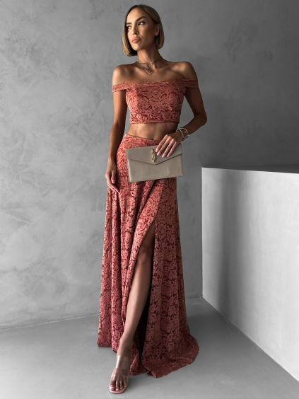 Béžová dlouhá elegantní sukně LEWIN s krajkou